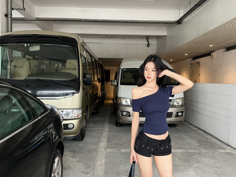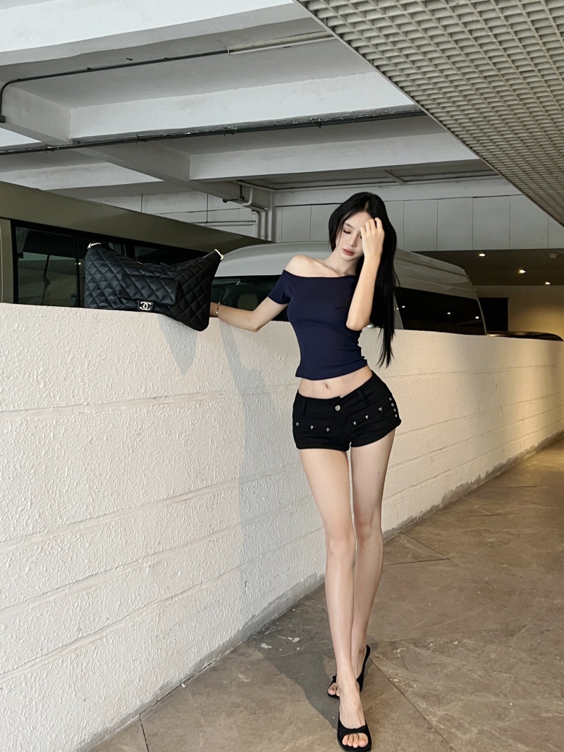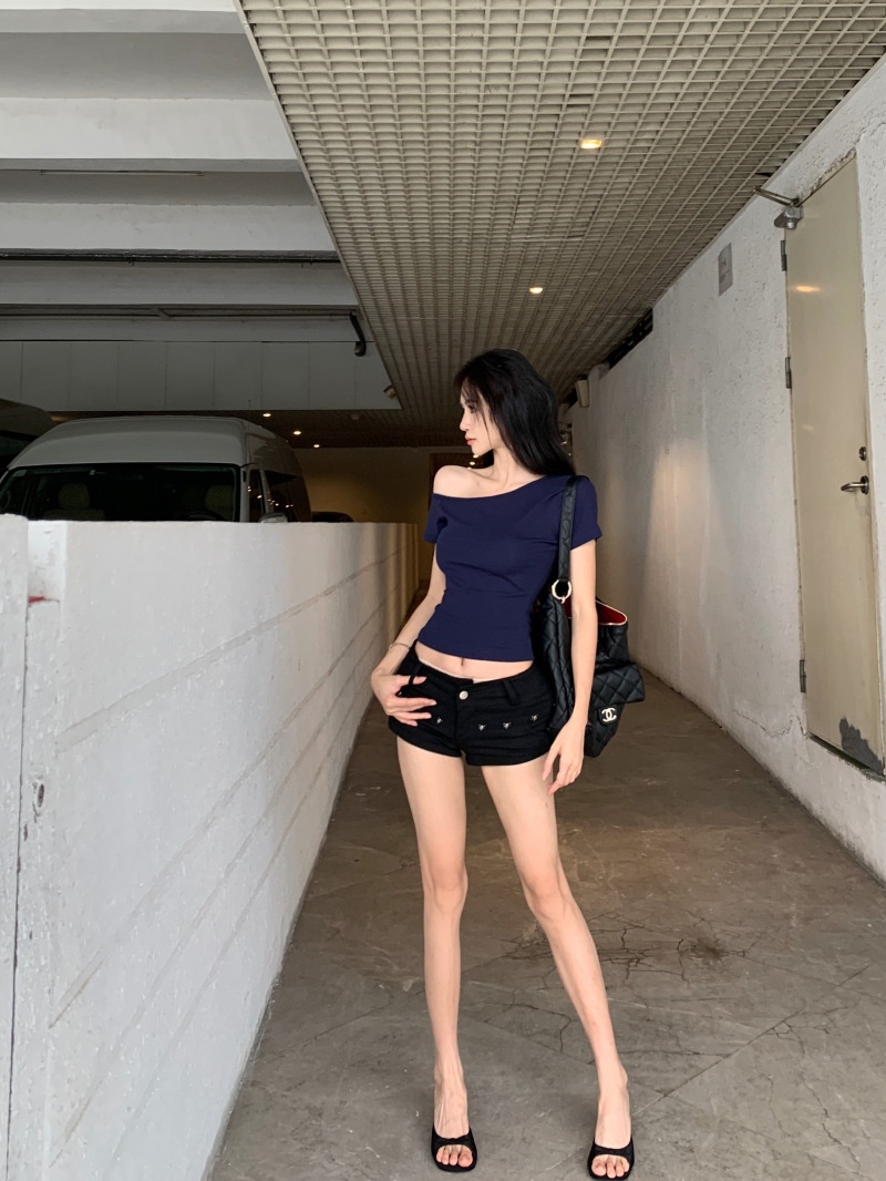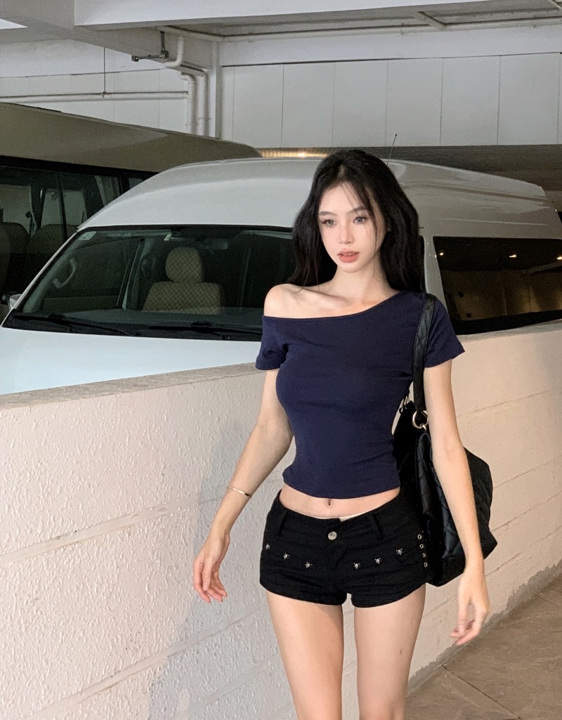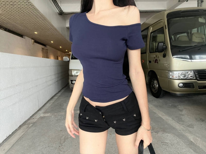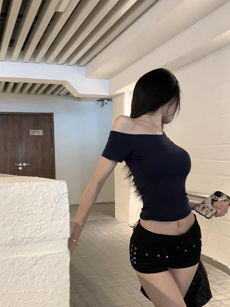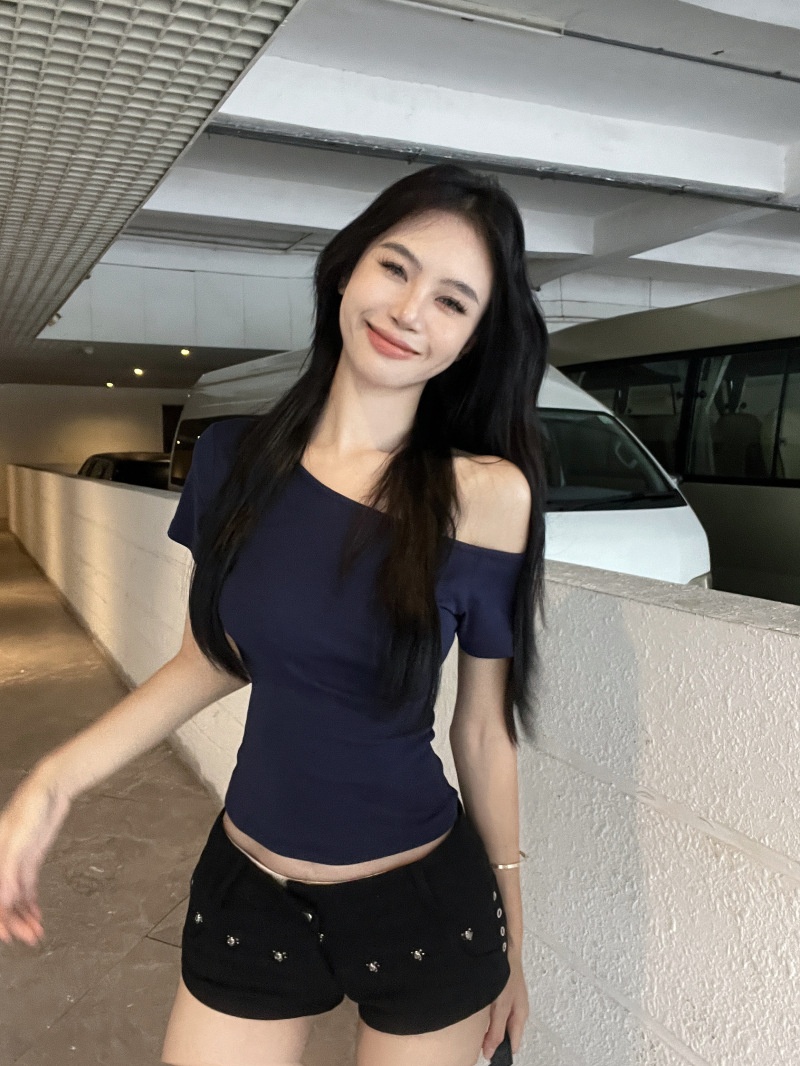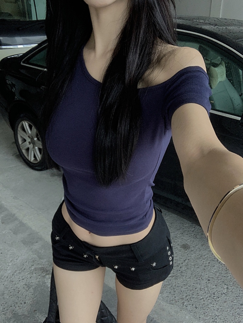 纯欲斜露肩短袖T恤女2025夏季新款短款露脐修身百搭学生上衣ins潮