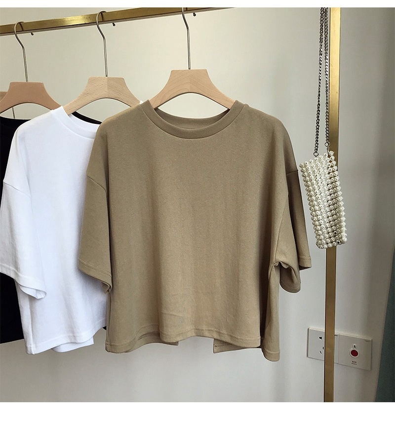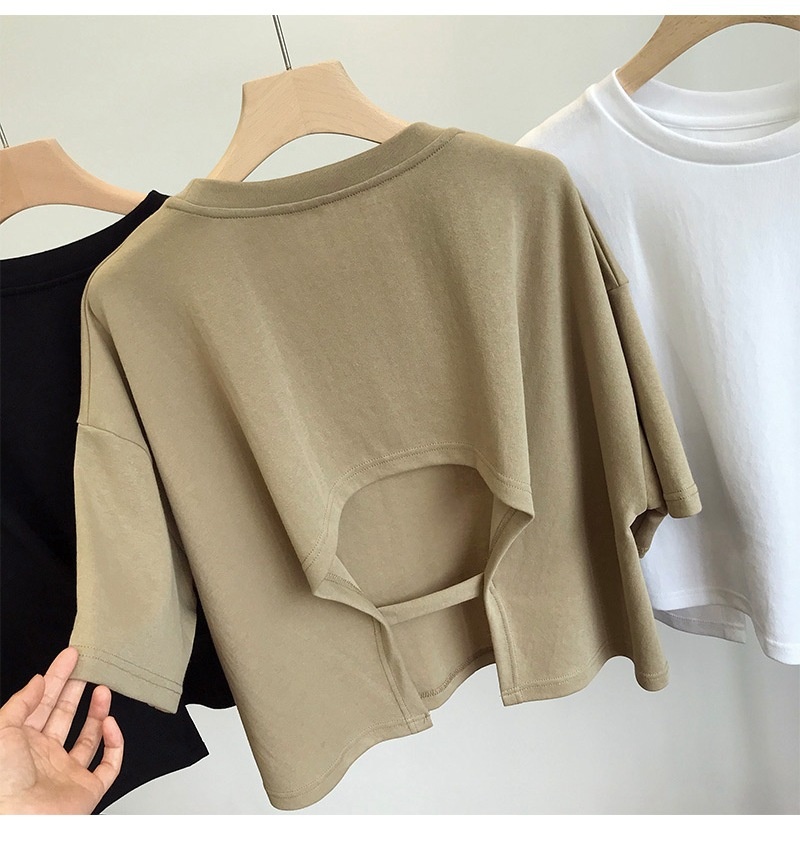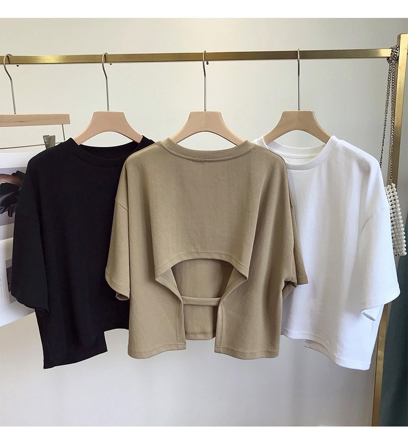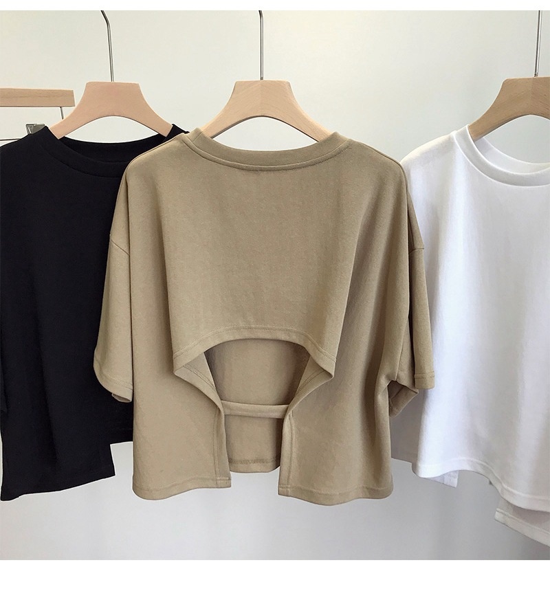 露背短款T恤甜辣风韩版2022夏季新款圆领宽松辣妹上衣女潮