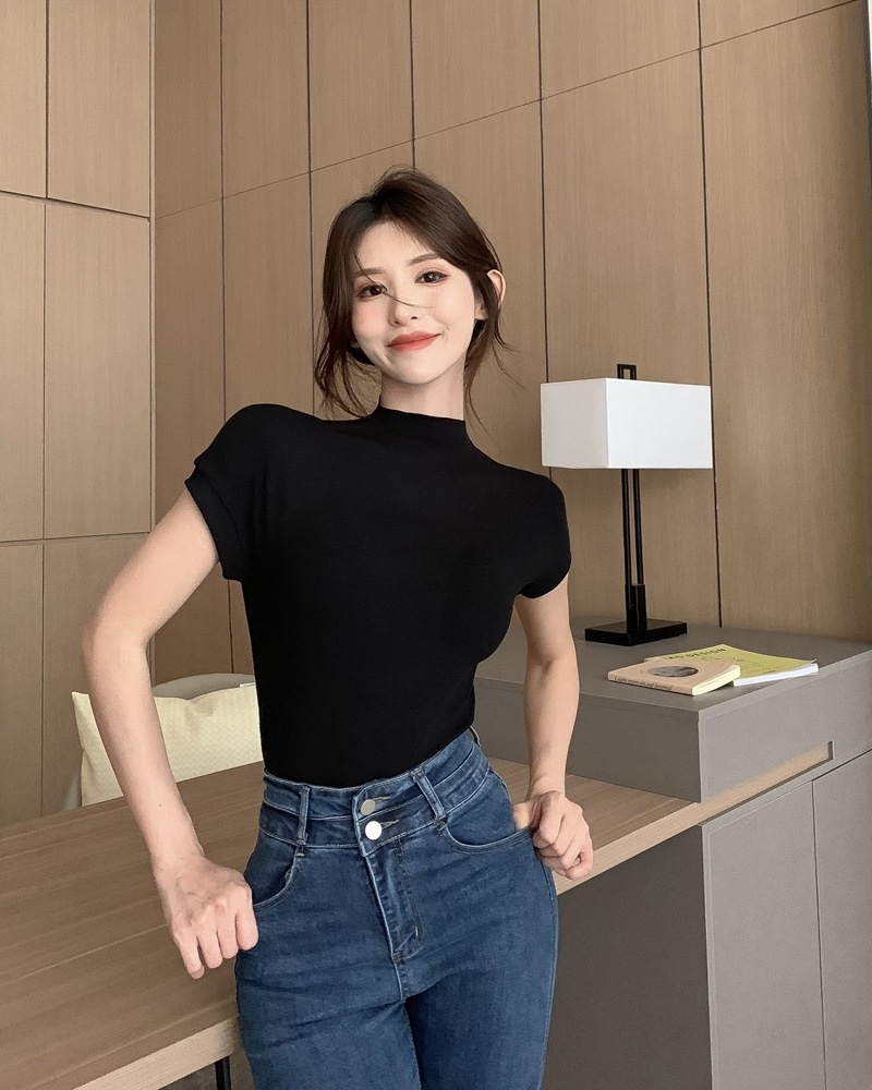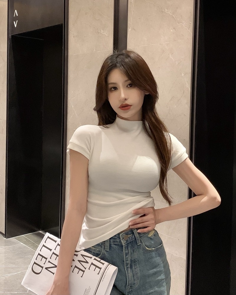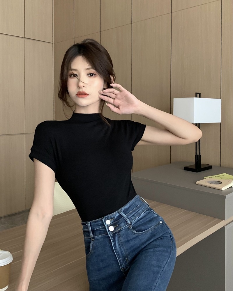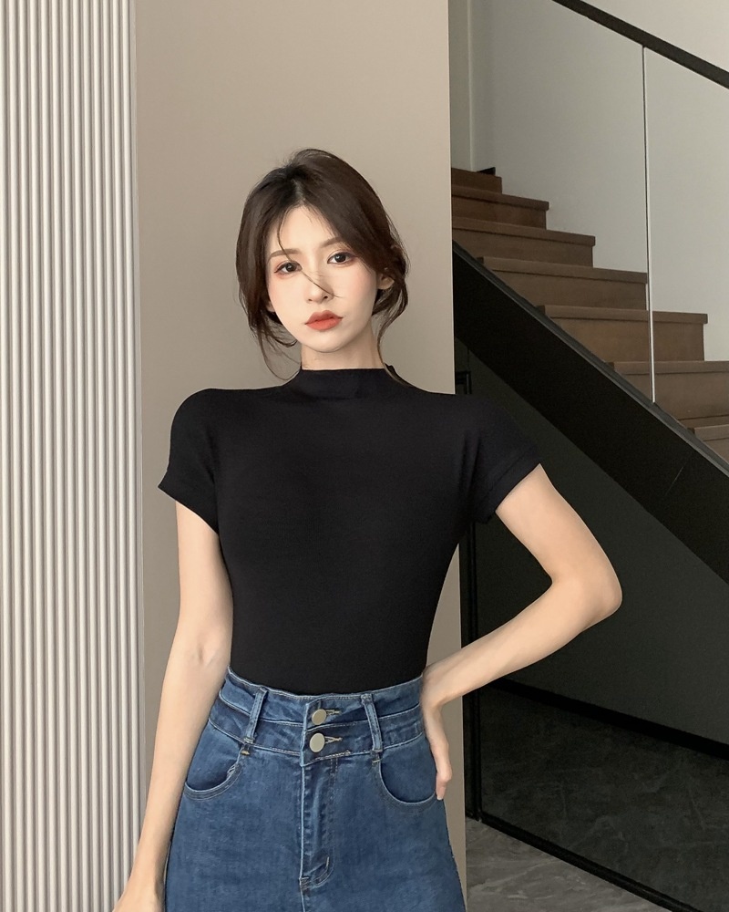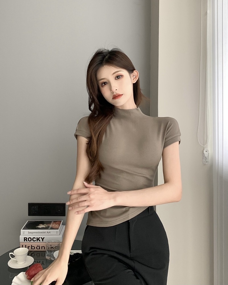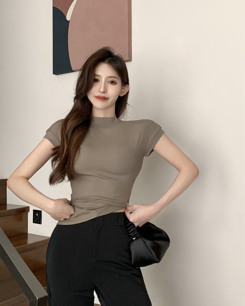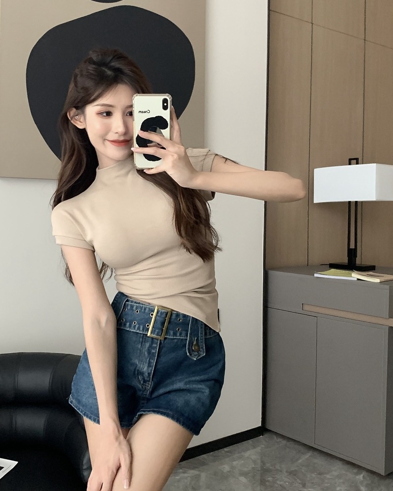 纯欲风半高领短袖T恤女2025夏季修身显瘦打底衫内搭学生上衣ins潮
