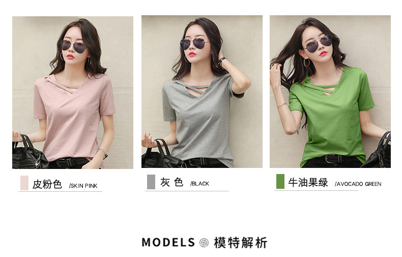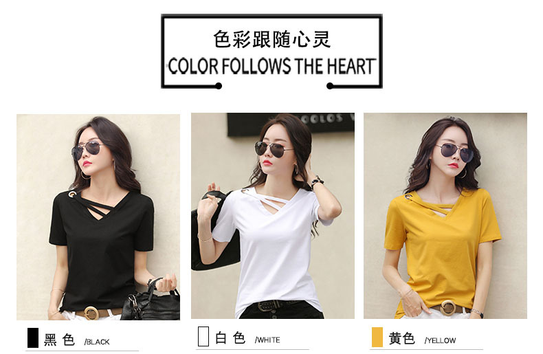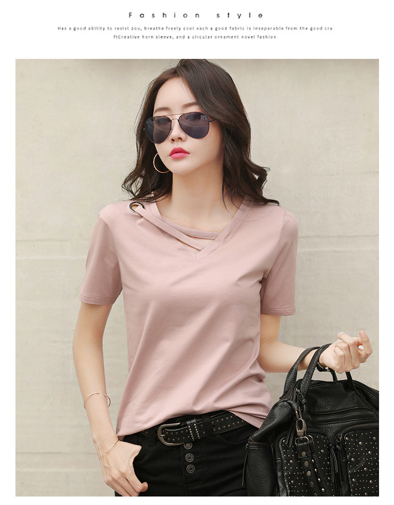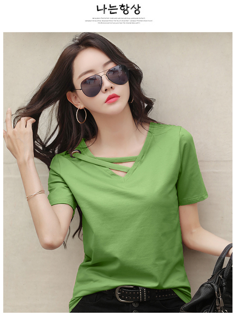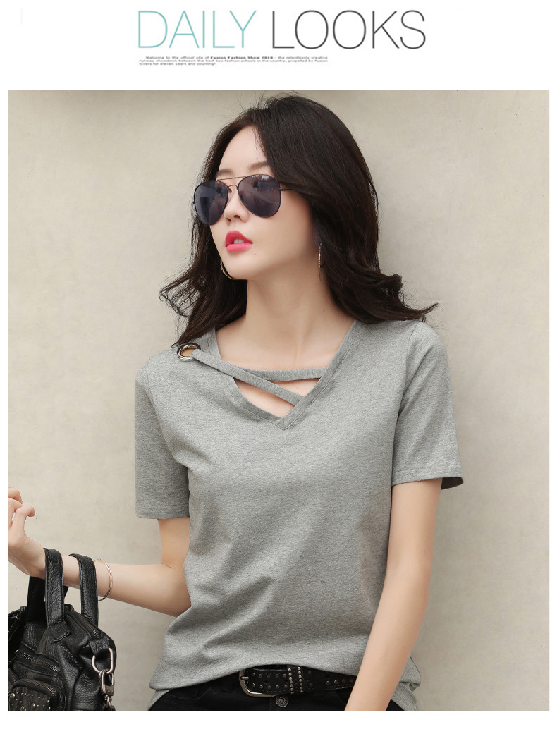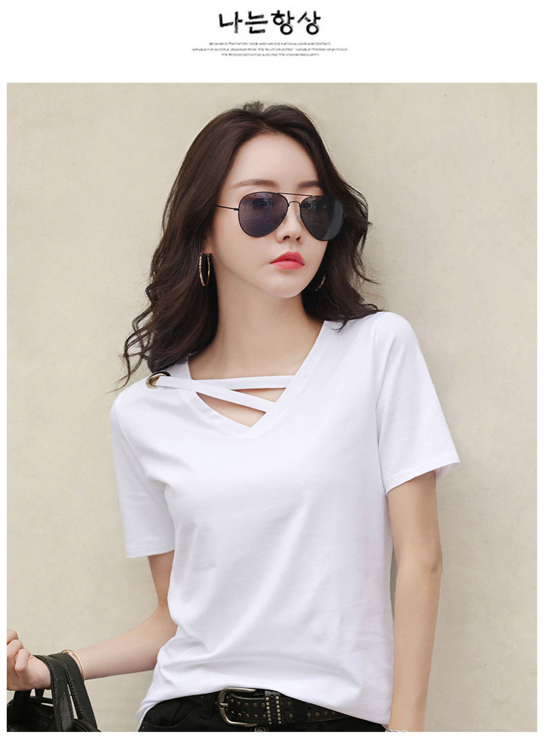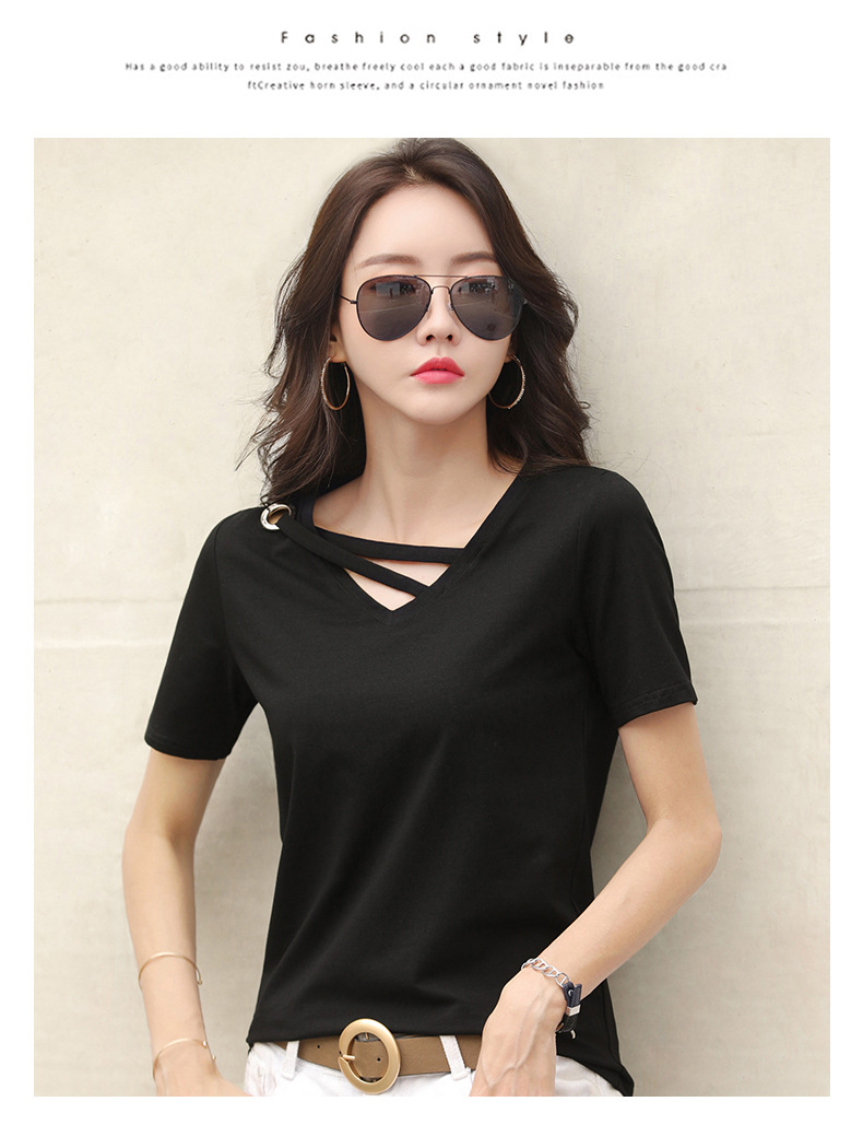 短袖女2025新款夏季白色t恤女V领宽松韩版黑色上衣休闲ins体恤潮