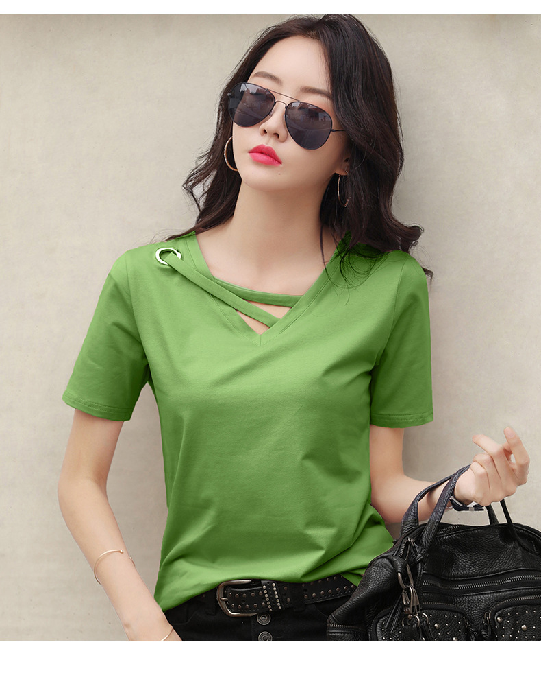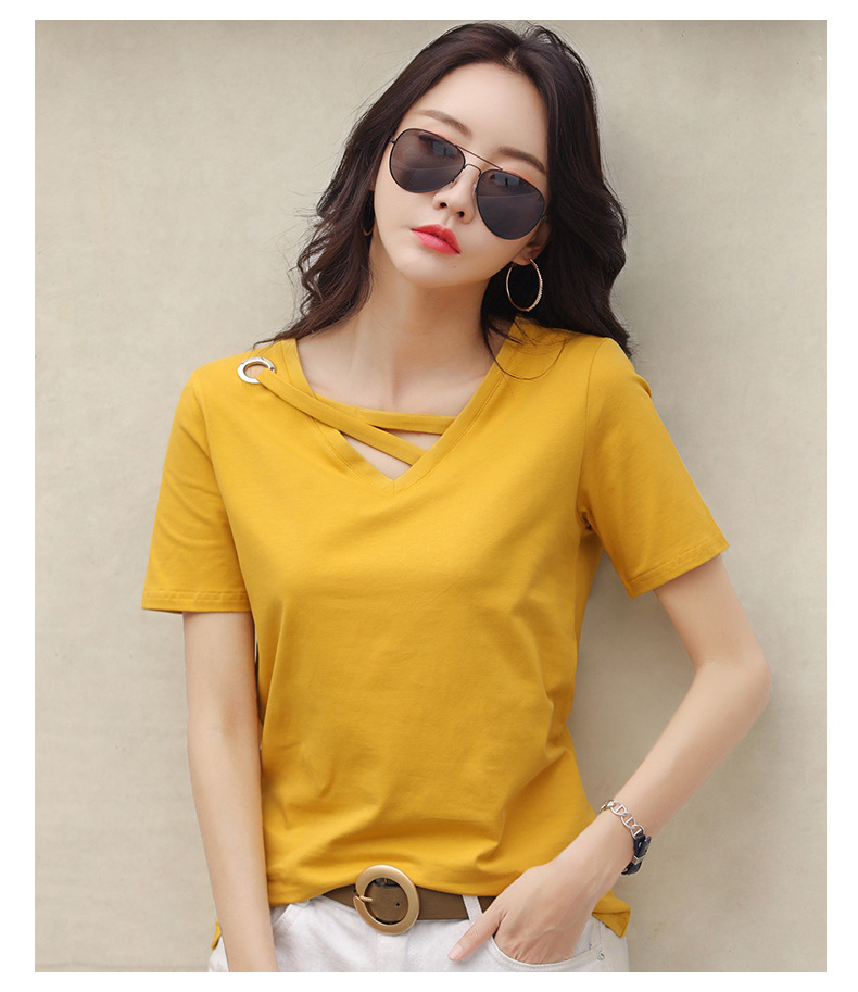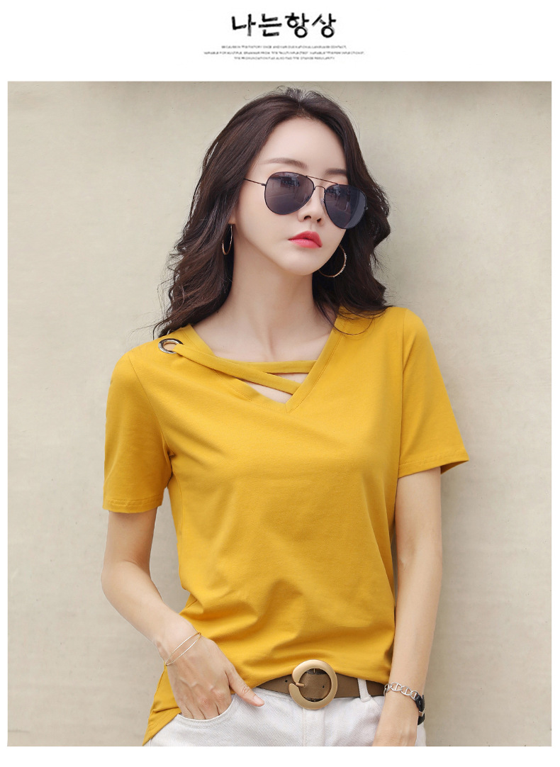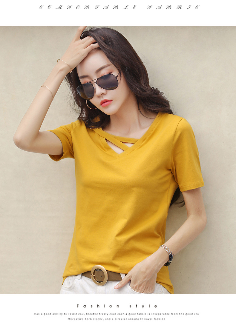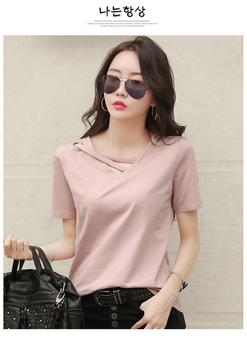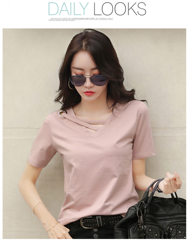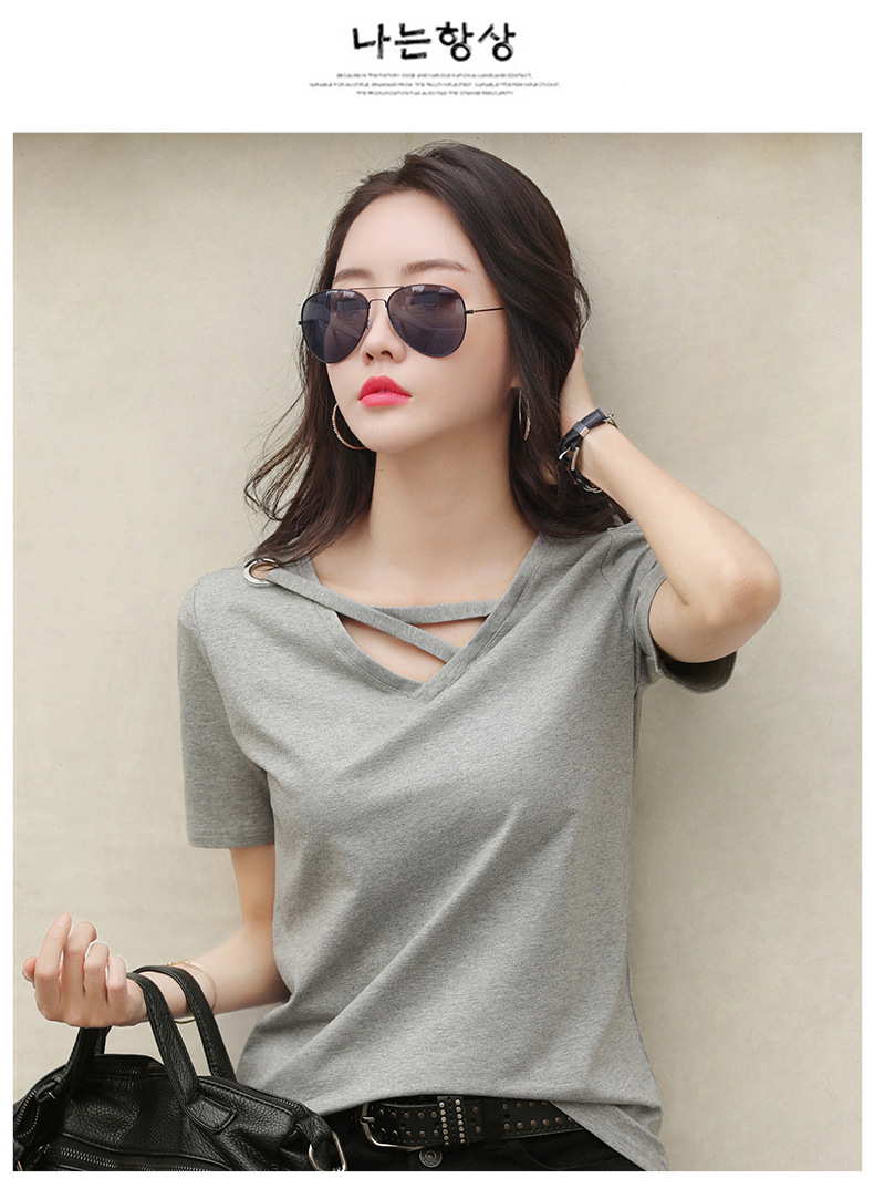 短袖女2025新款夏季白色t恤女V领宽松韩版黑色上衣休闲ins体恤潮