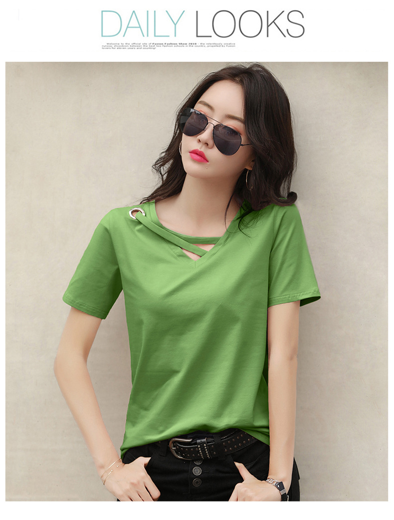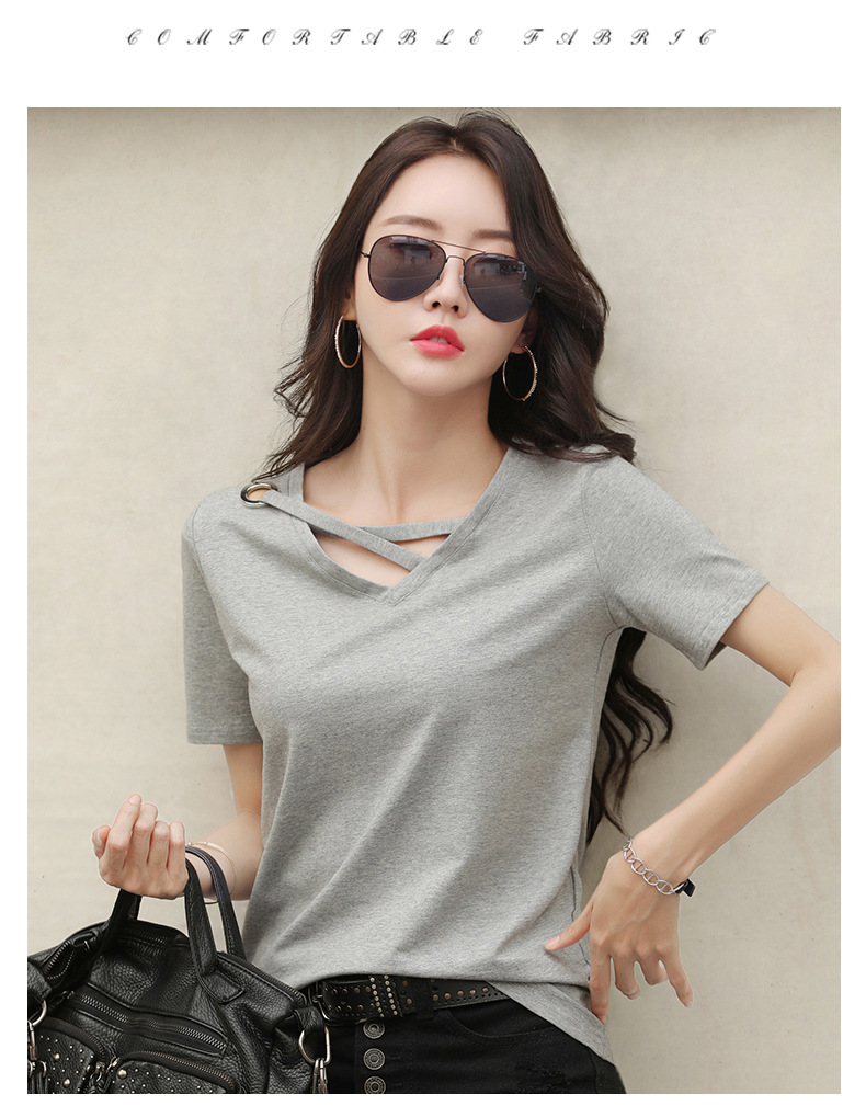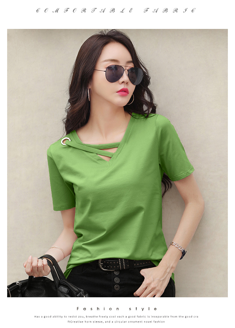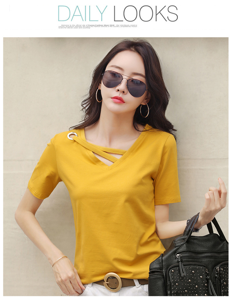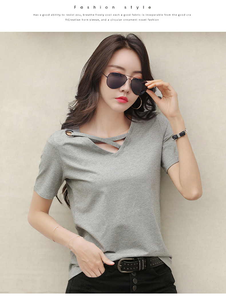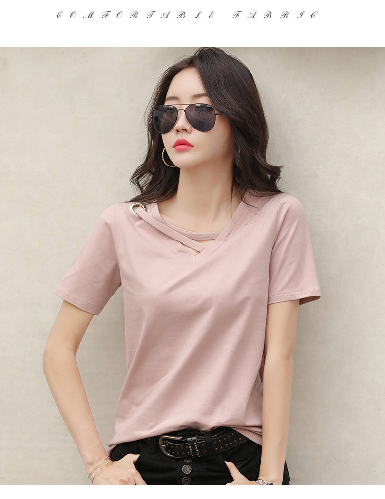 短袖女2025新款夏季白色t恤女V领宽松韩版黑色上衣休闲ins体恤潮