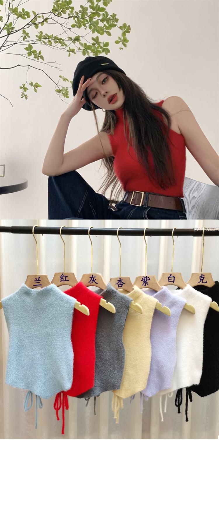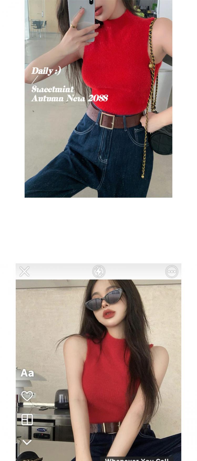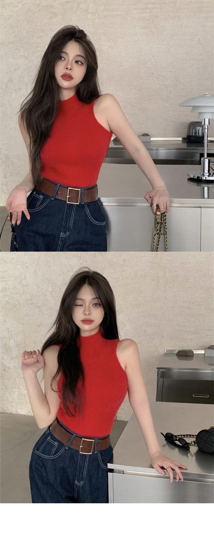 毛绒绒半高领吊带背心女春夏新款辣妹无袖短款内搭上衣针织打底衫