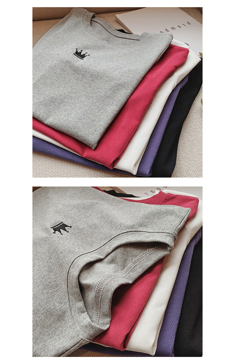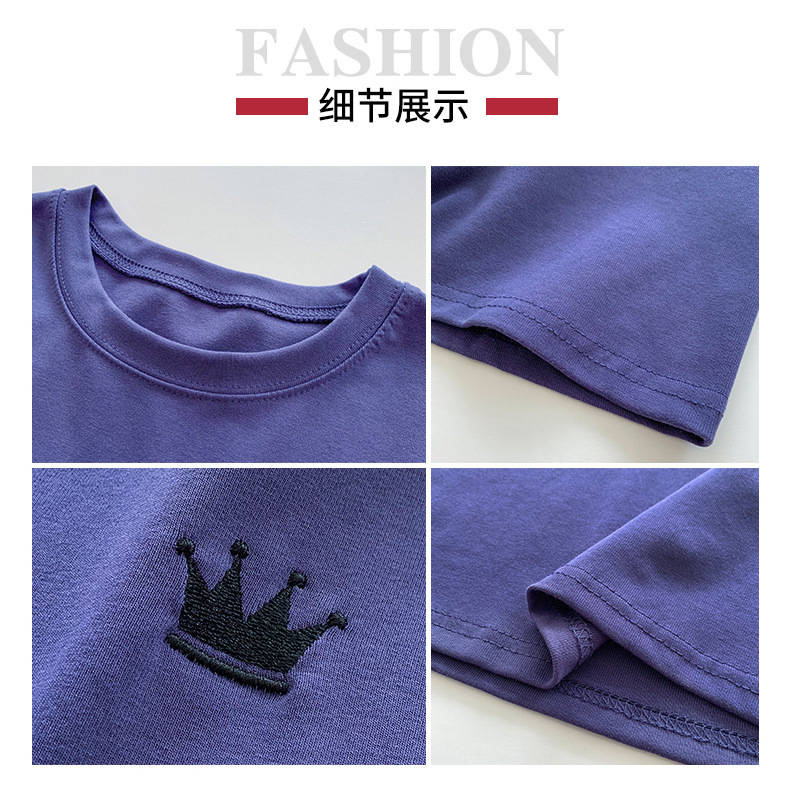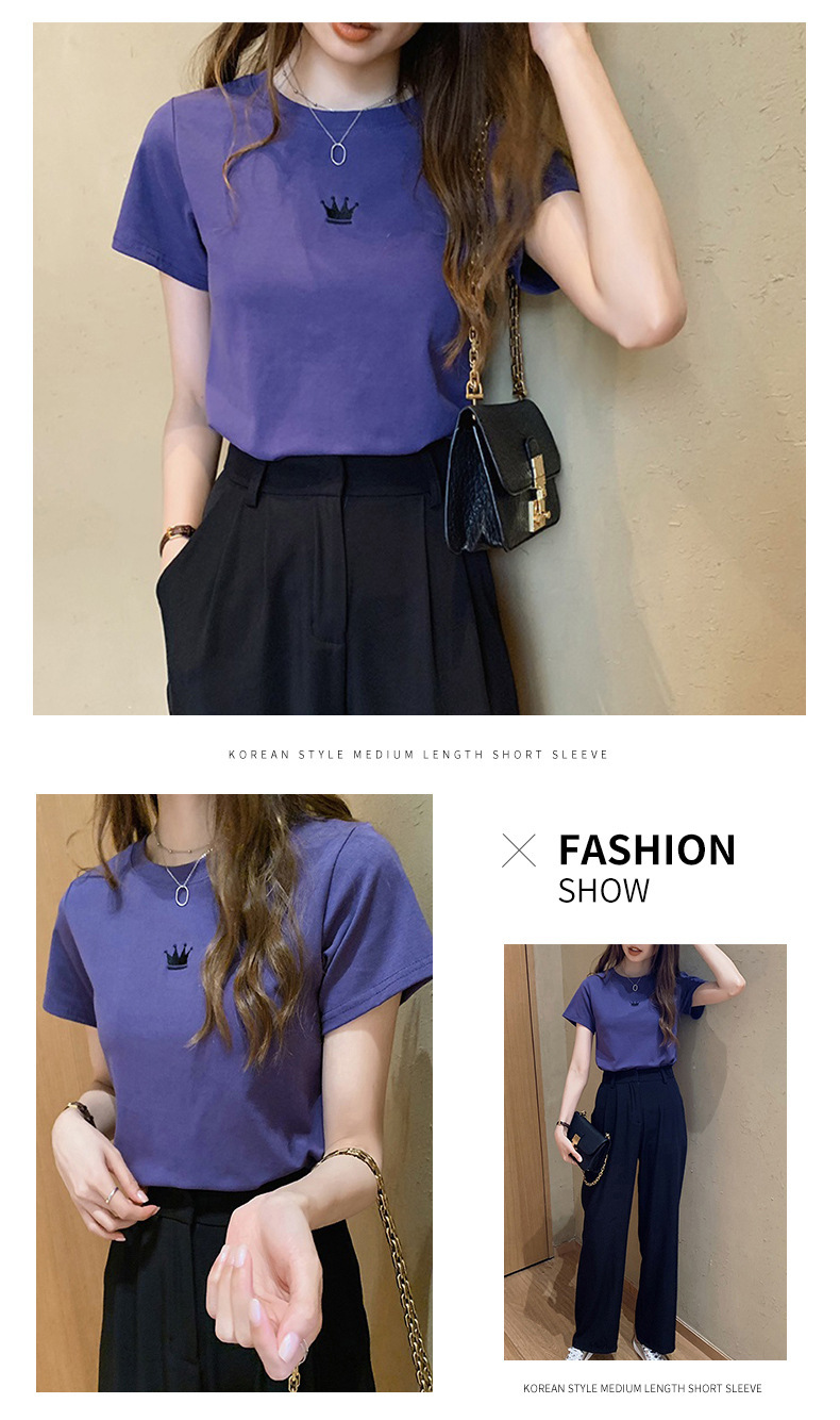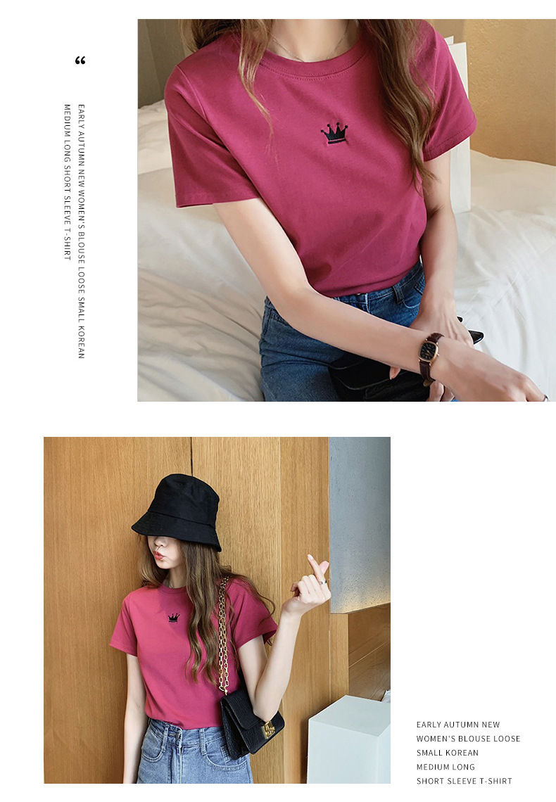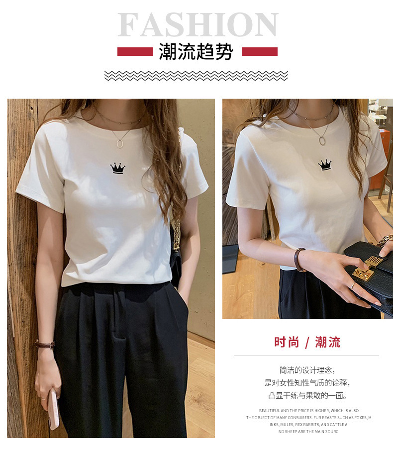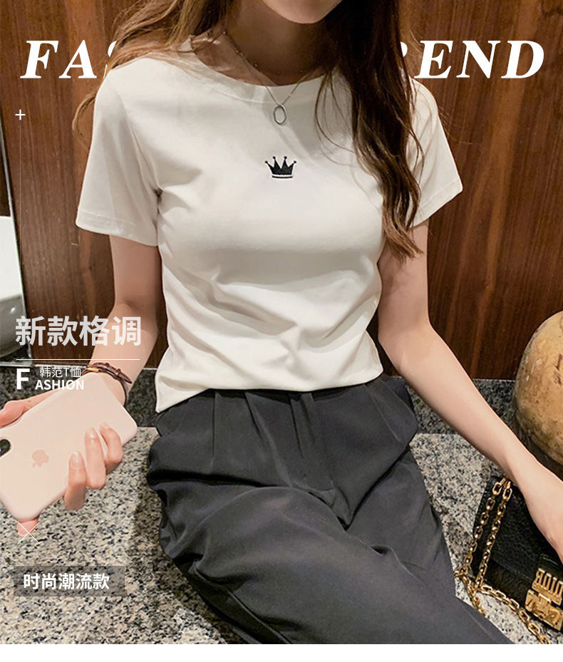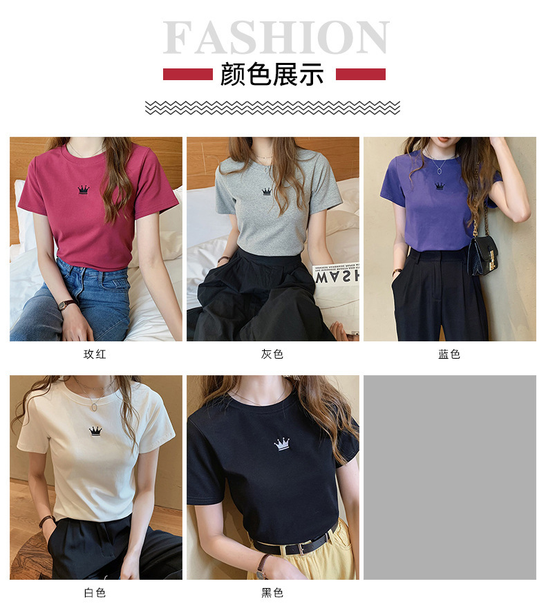 2025夏季新款修身刺绣圆领短袖T恤女装学生女士打底上衣一件代发