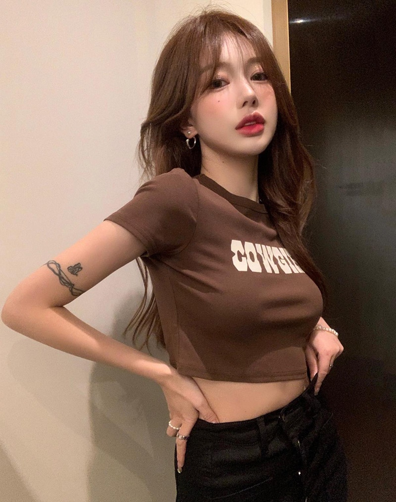 美式复古辣妹短袖t恤女2025年夏季修身显瘦高腰露脐短款上衣ins潮
