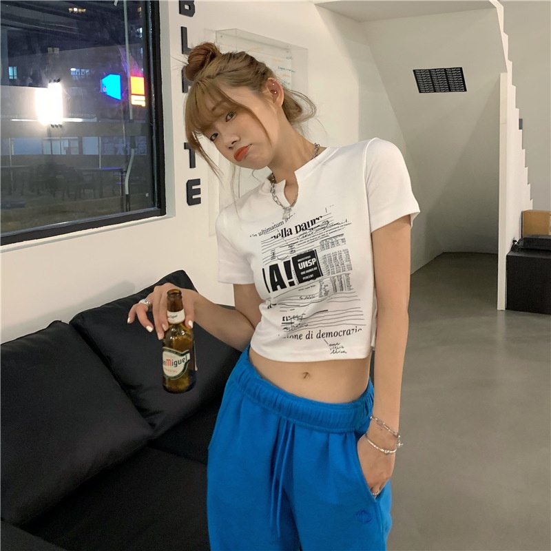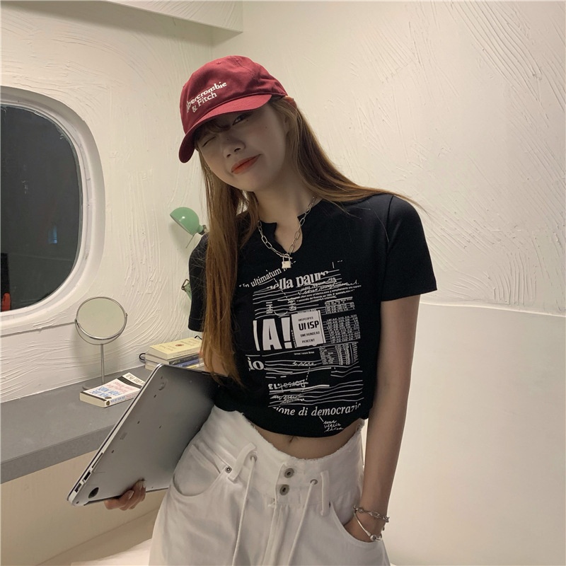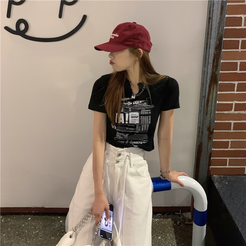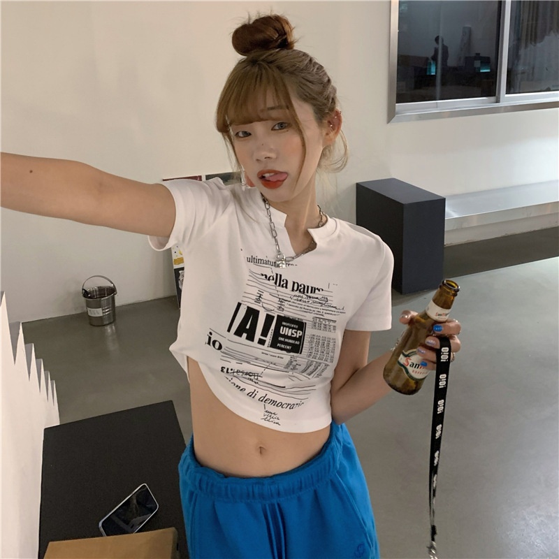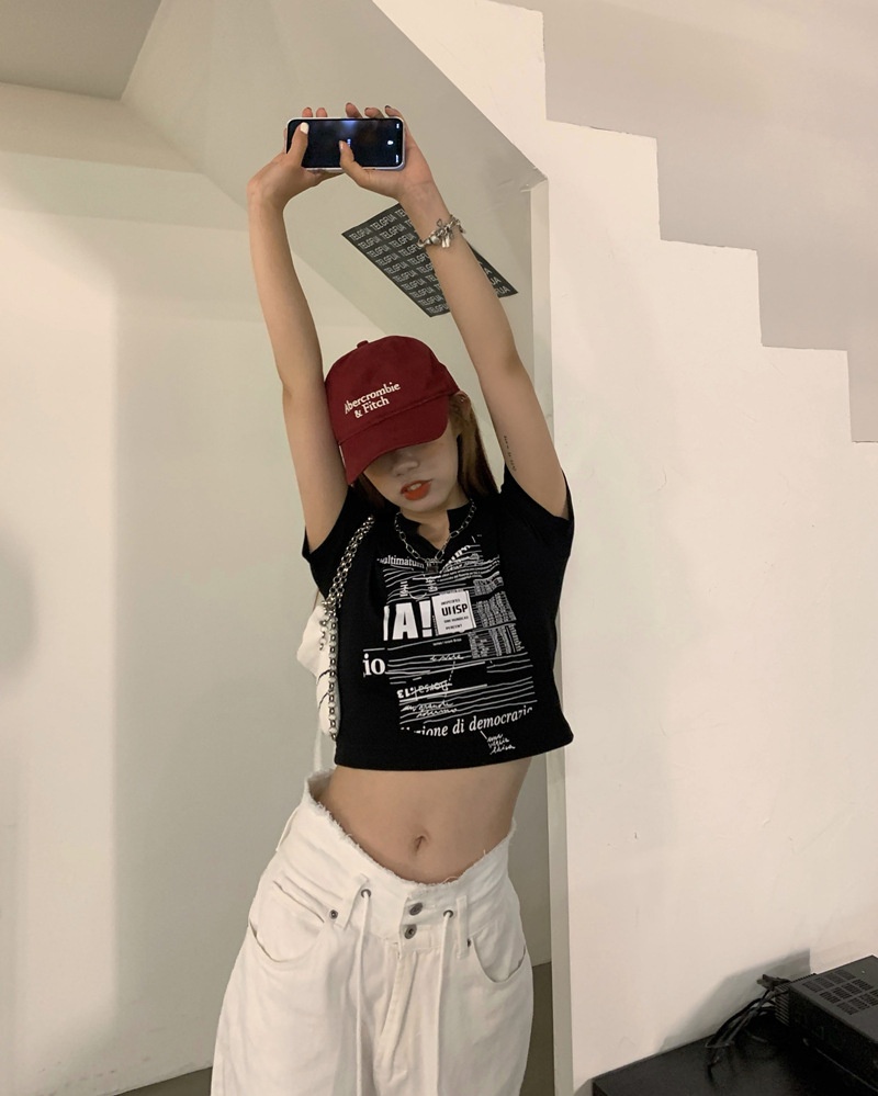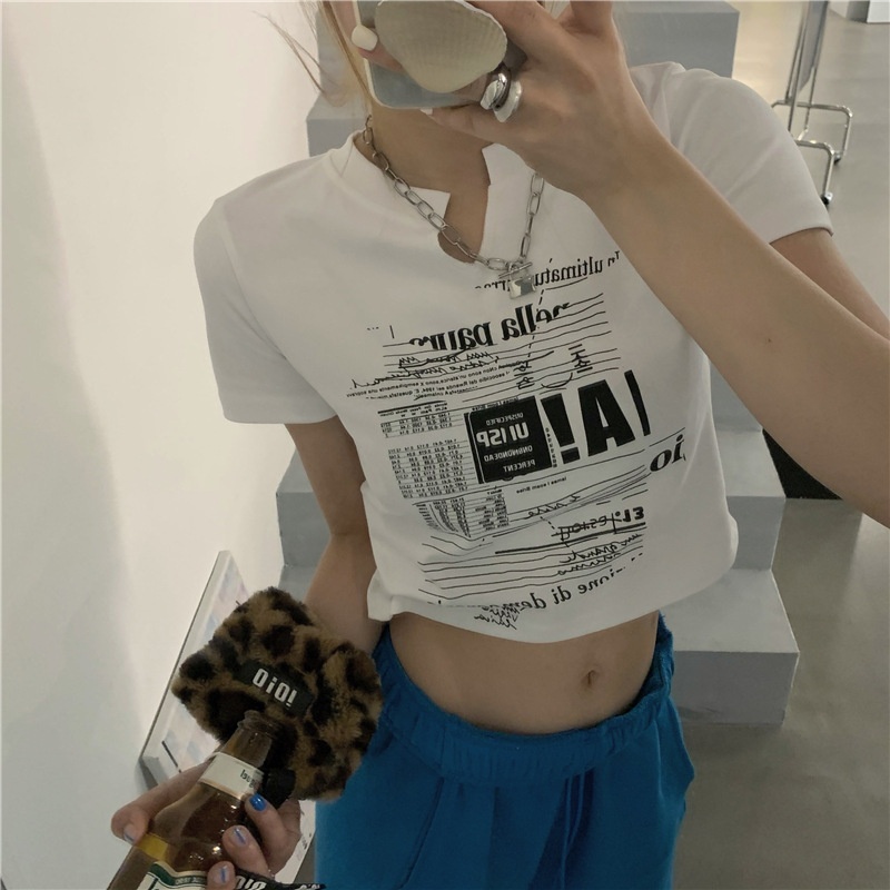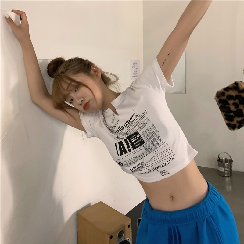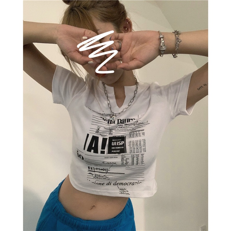 白色V领短袖T恤女2025夏季新款韩版修身短款辣妹露脐学生上衣ins