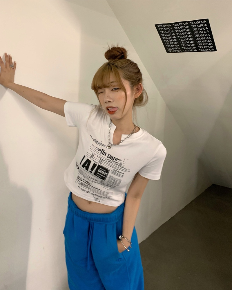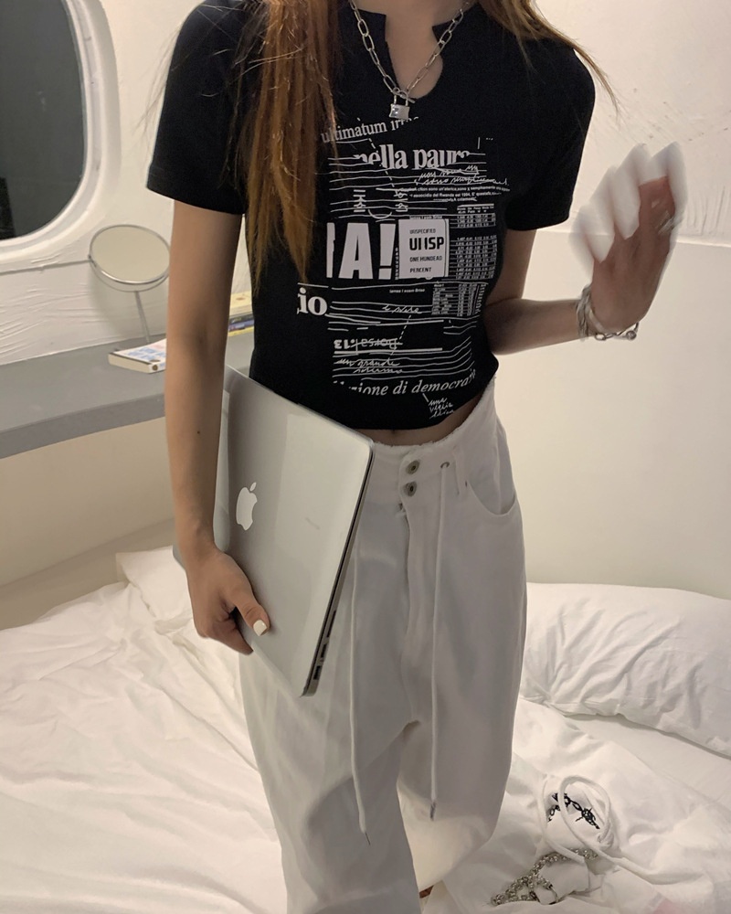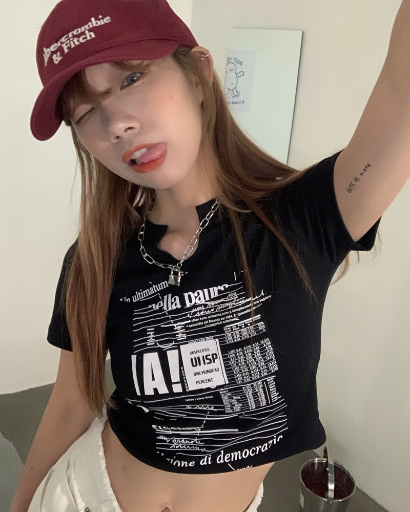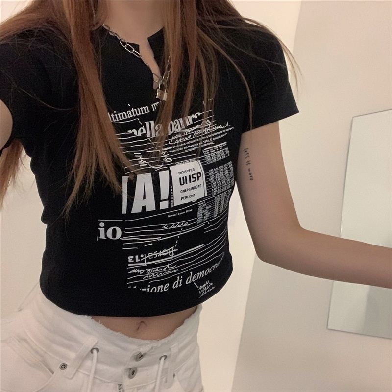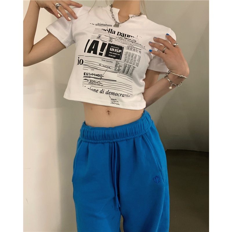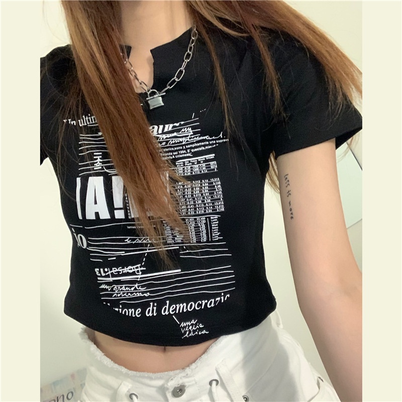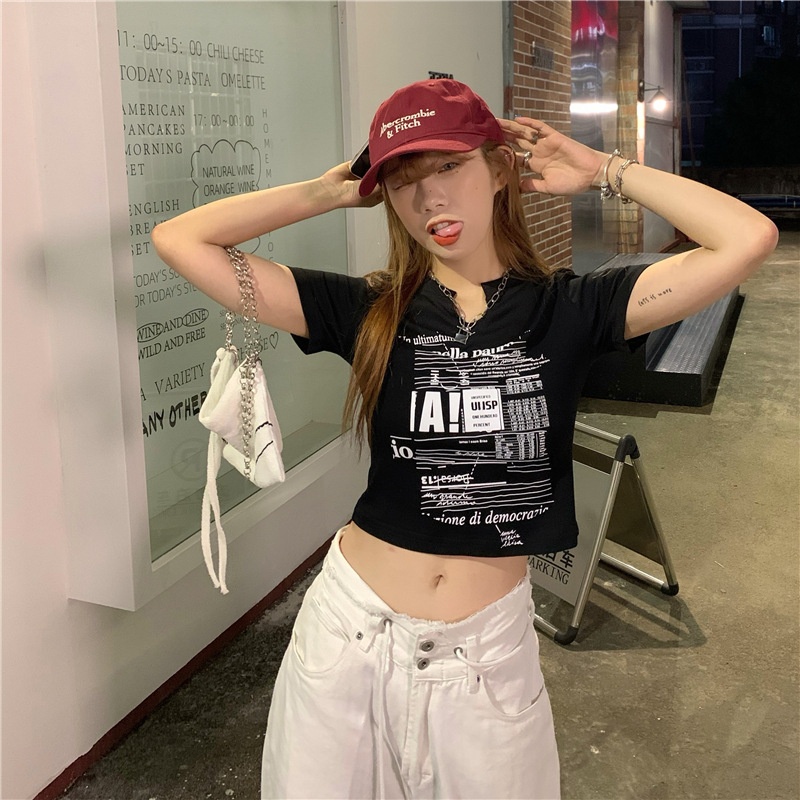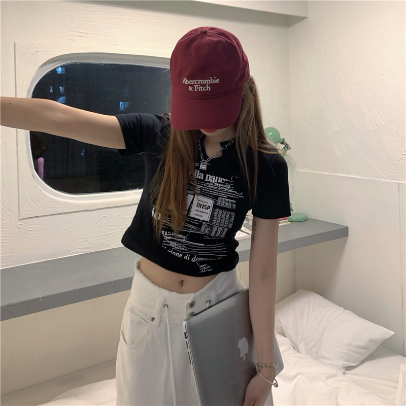 白色V领短袖T恤女2025夏季新款韩版修身短款辣妹露脐学生上衣ins