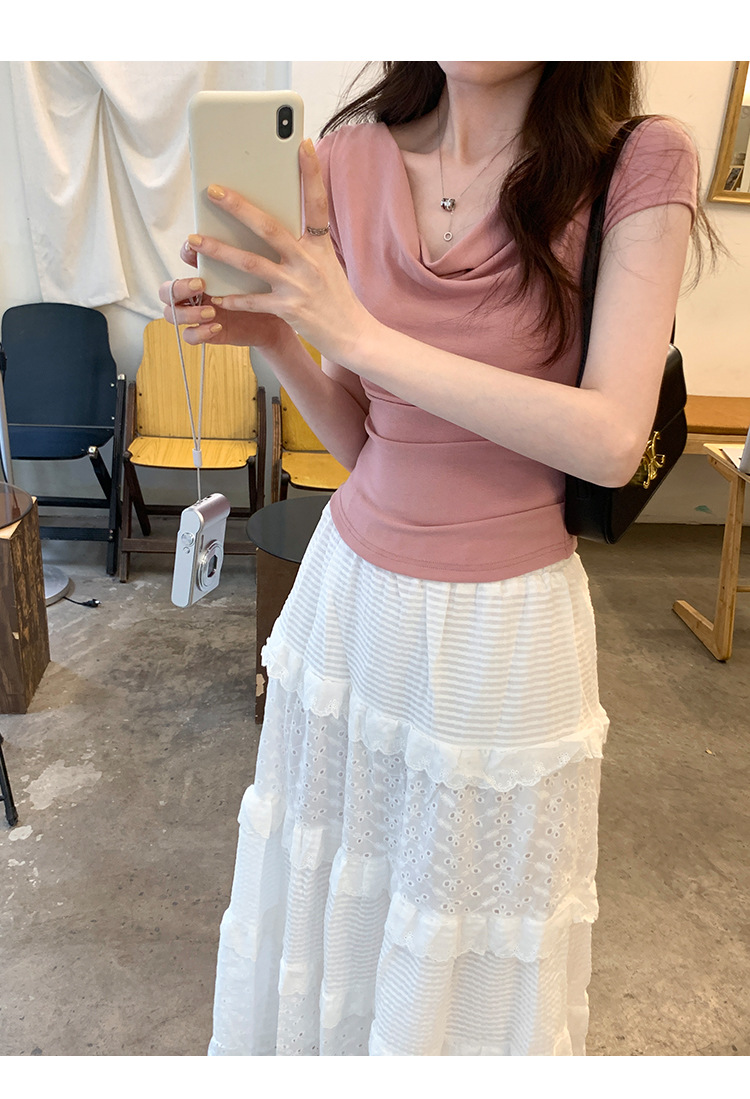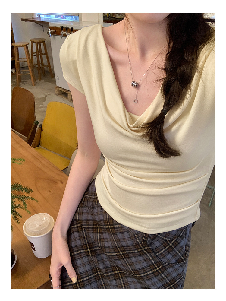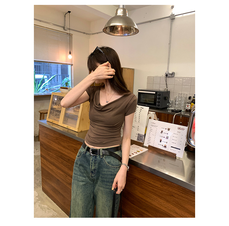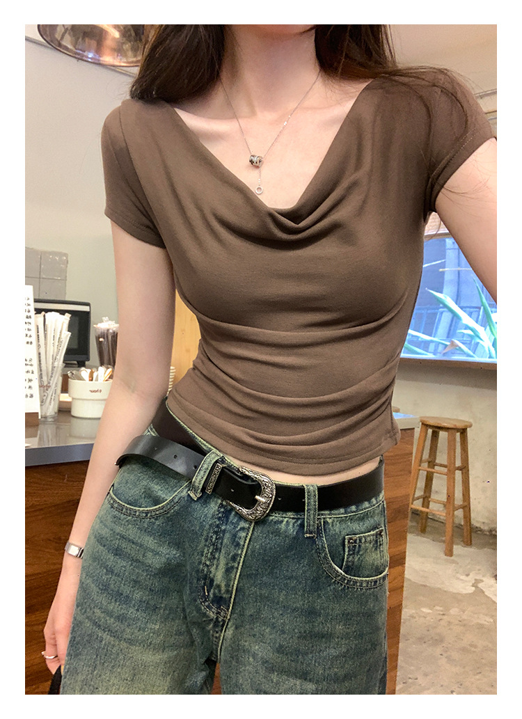 设计感荡领一字肩短袖T恤女2025夏季修身辣妹修身露肩短款上衣潮