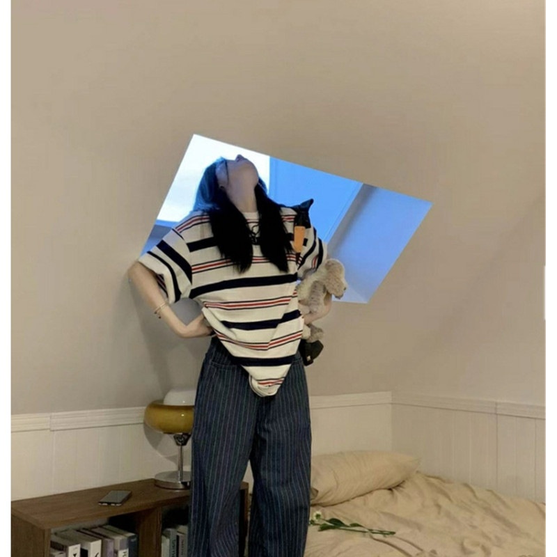 条纹短袖t恤女2024新款爆款夏季宽松慵懒风半袖独特别致上衣