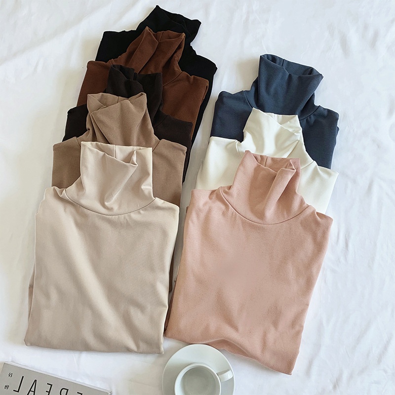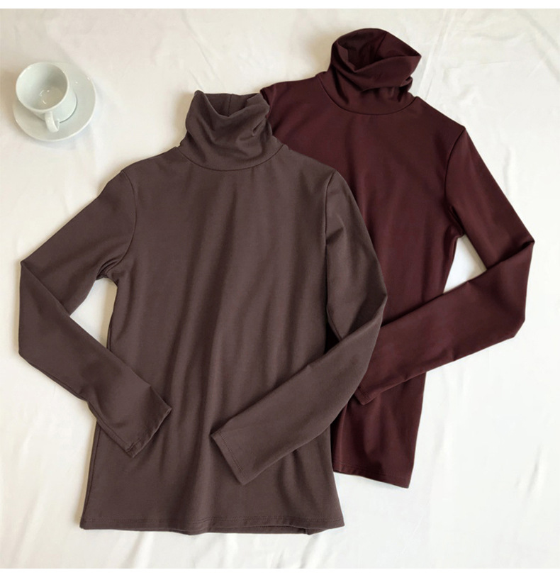 高领双面德绒打底衫女2025秋冬时尚洋气修身显瘦学生长袖T恤女潮
