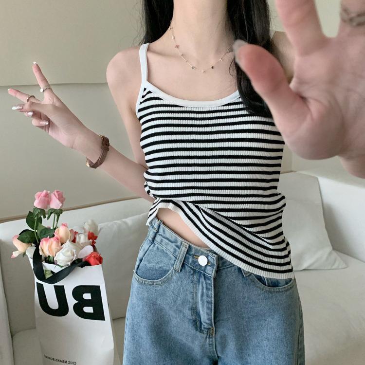条纹针织小吊带女夏季慵懒风设计感露背修身显瘦外穿打底上衣背心
