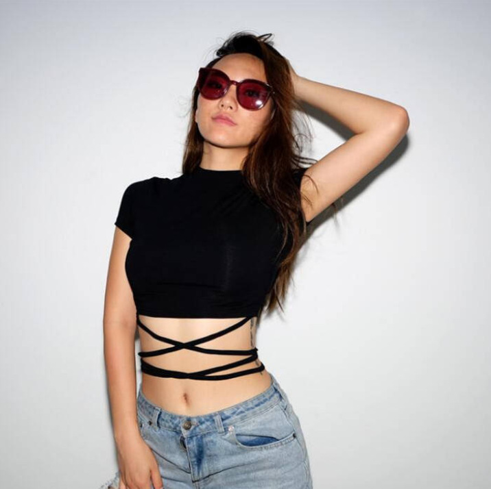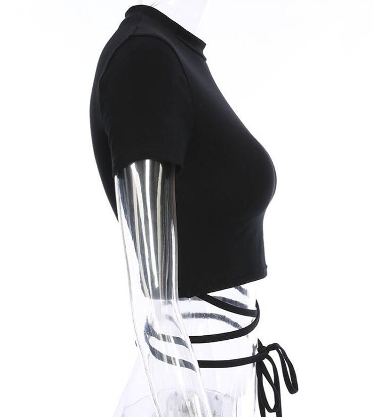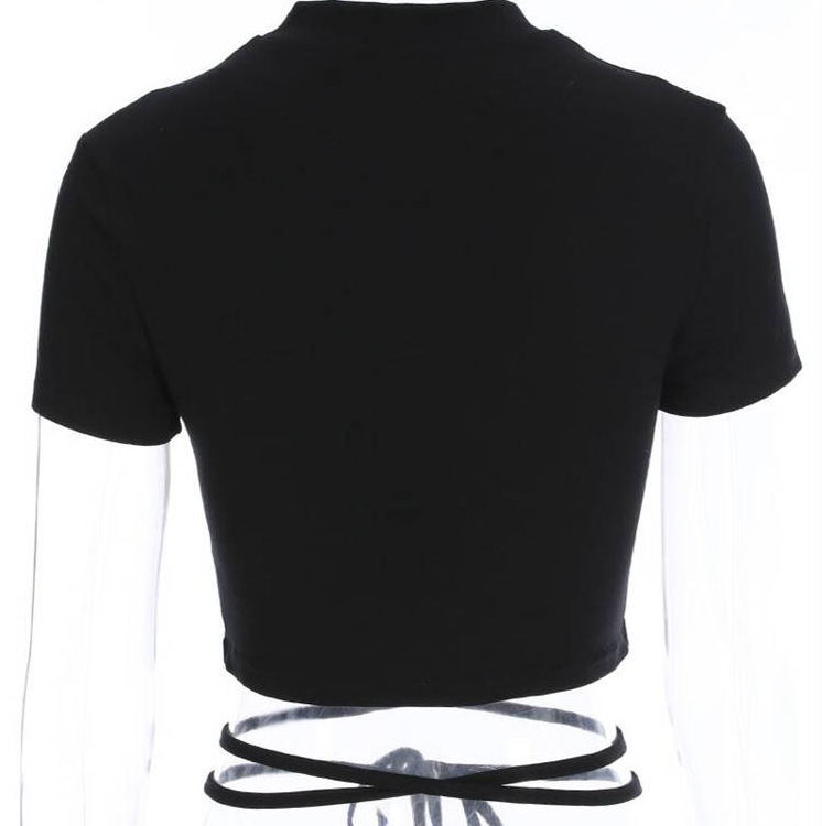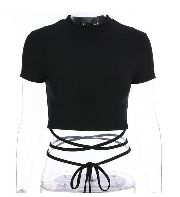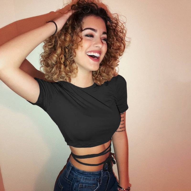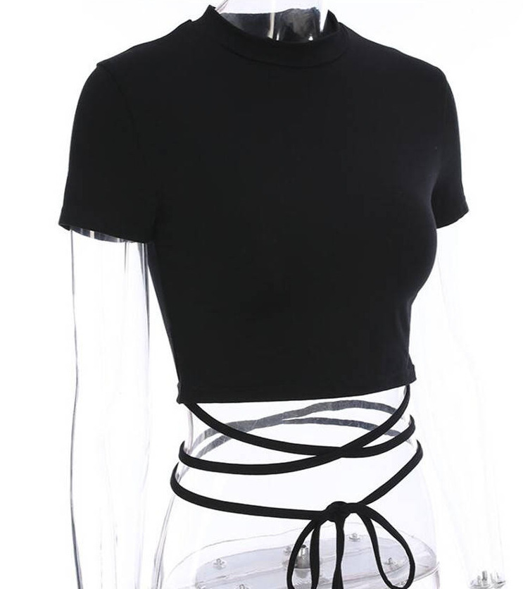 纯色短款露脐交叉绑带短袖T恤女夏季百搭紧身显瘦高腰小心机上衣