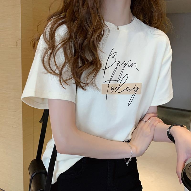 2025夏季新款新款时尚洋气印花圆领短袖T恤女宽松半袖体恤打底衫