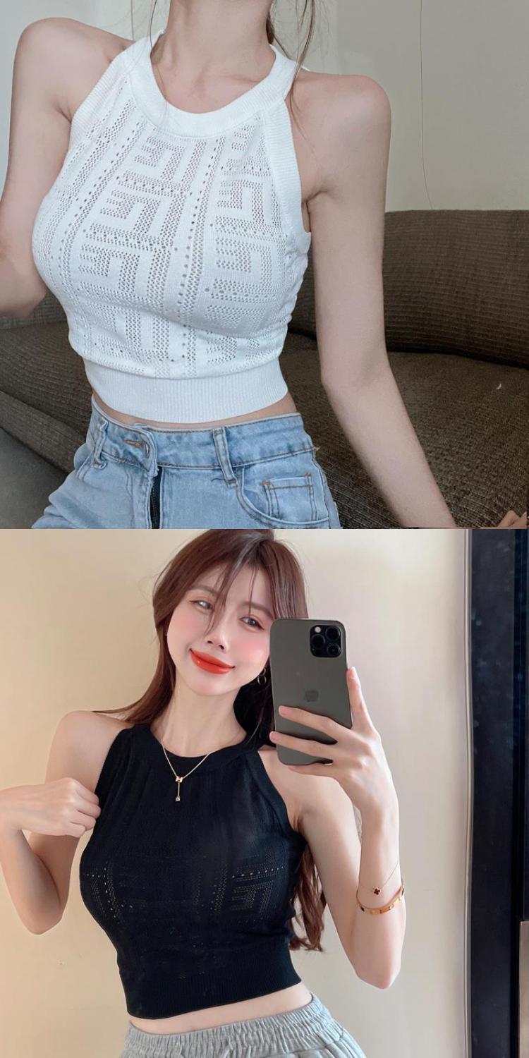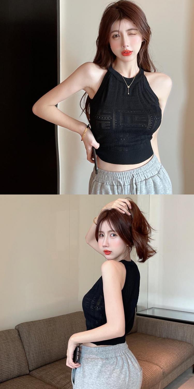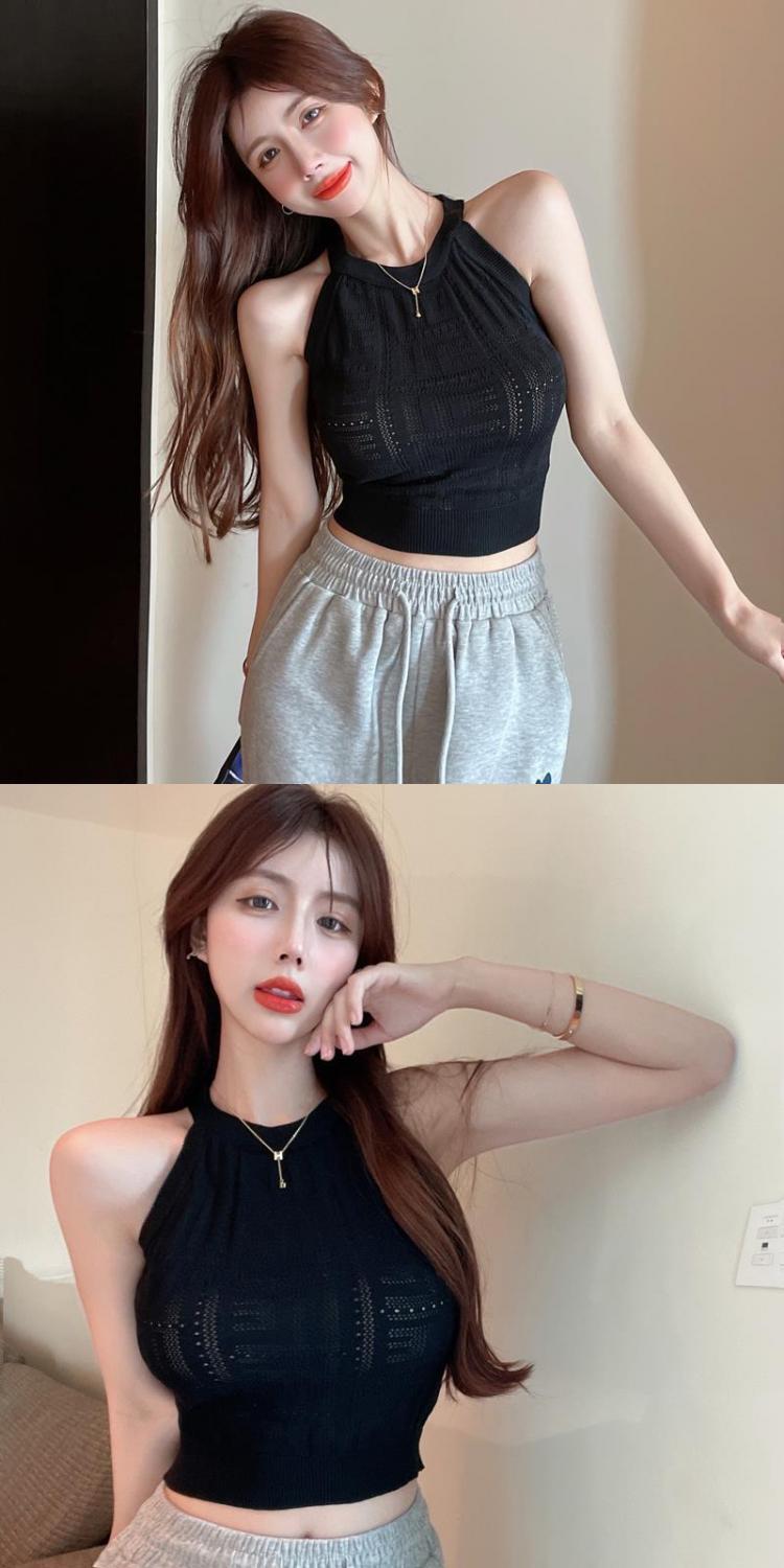 镂空针织挂脖背心女夏季设计感修身短款辣妹风气质减龄抹胸小吊带
