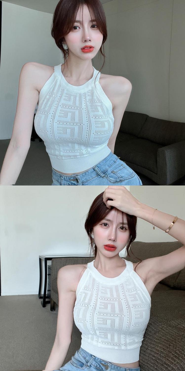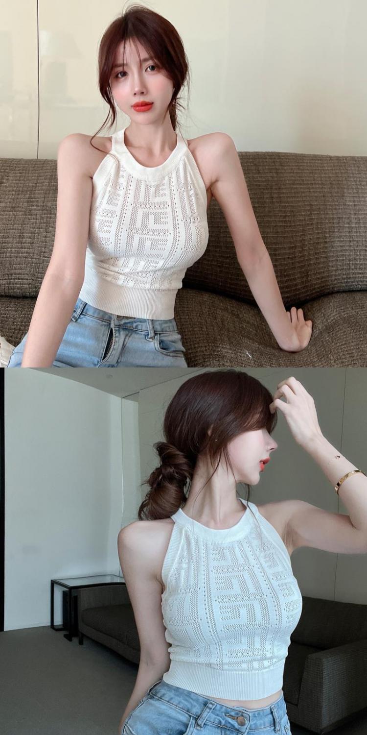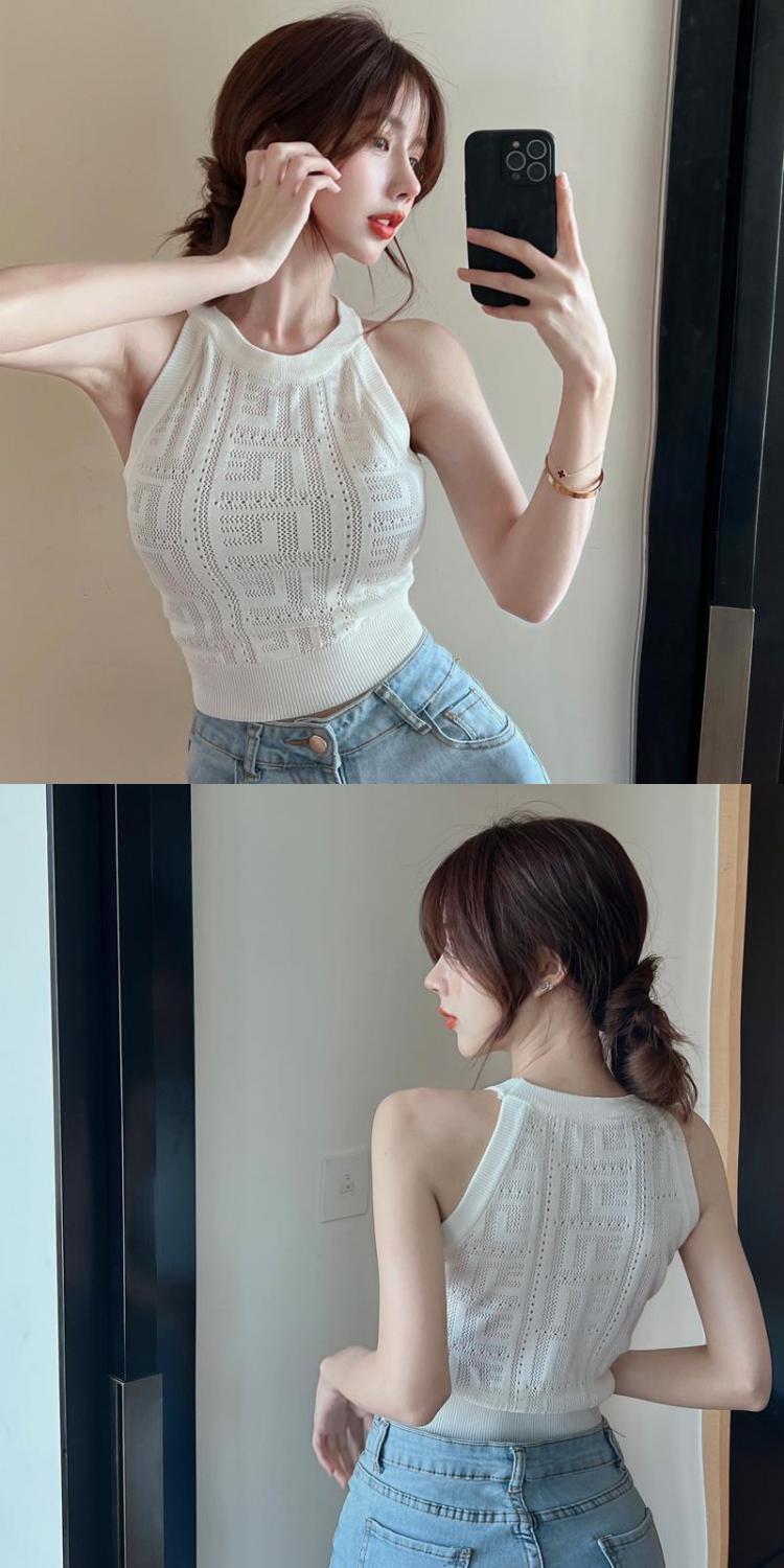 镂空针织挂脖背心女夏季设计感修身短款辣妹风气质减龄抹胸小吊带