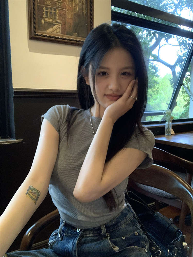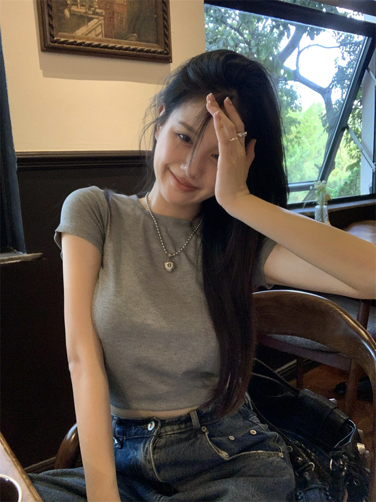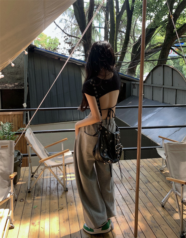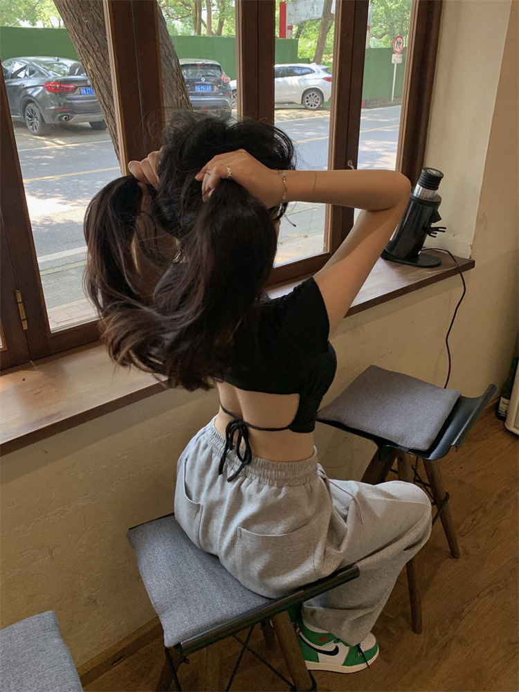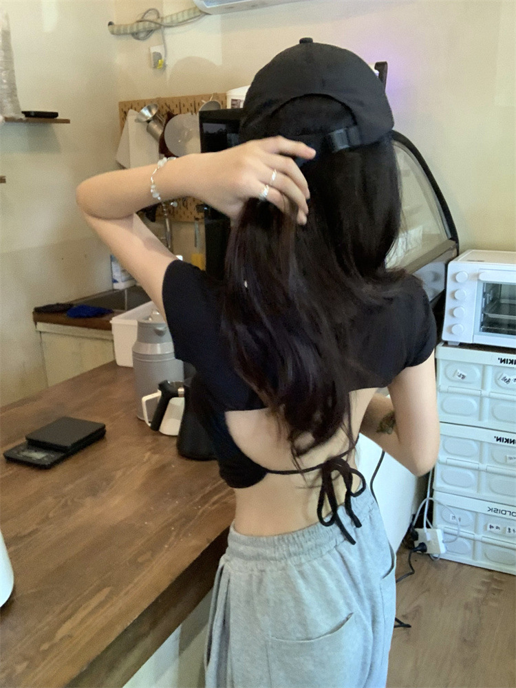 设计感系带露背短袖T恤女夏季2025新款修身短款辣妹休闲学生上衣