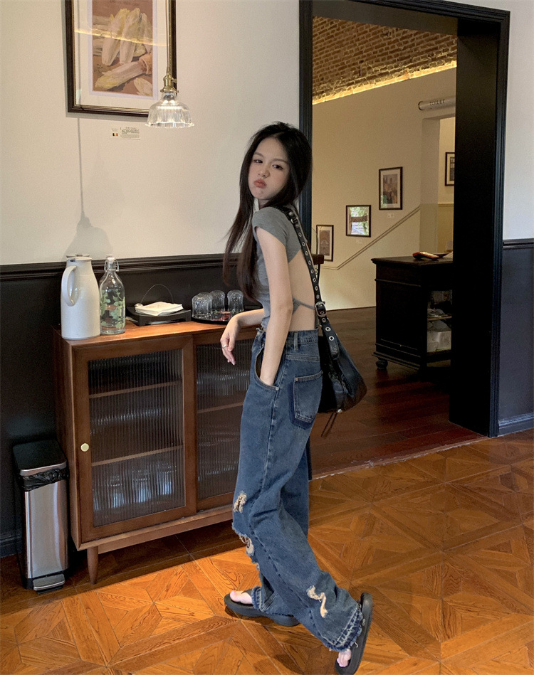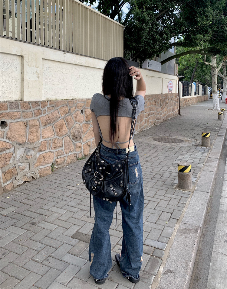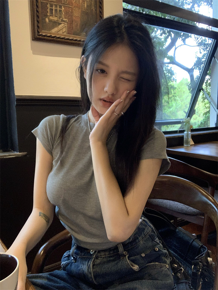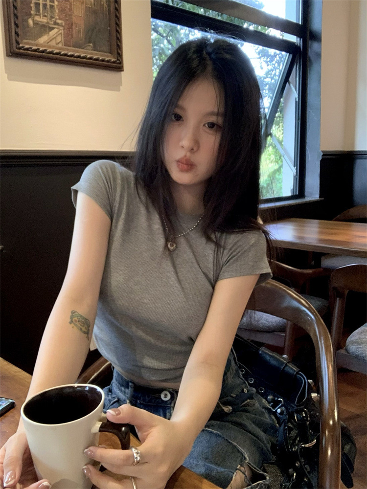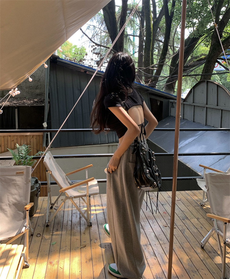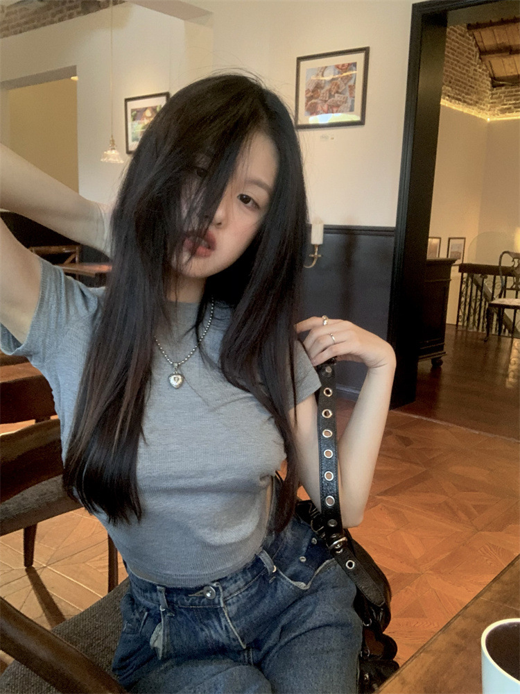 设计感系带露背短袖T恤女夏季2025新款修身短款辣妹休闲学生上衣
