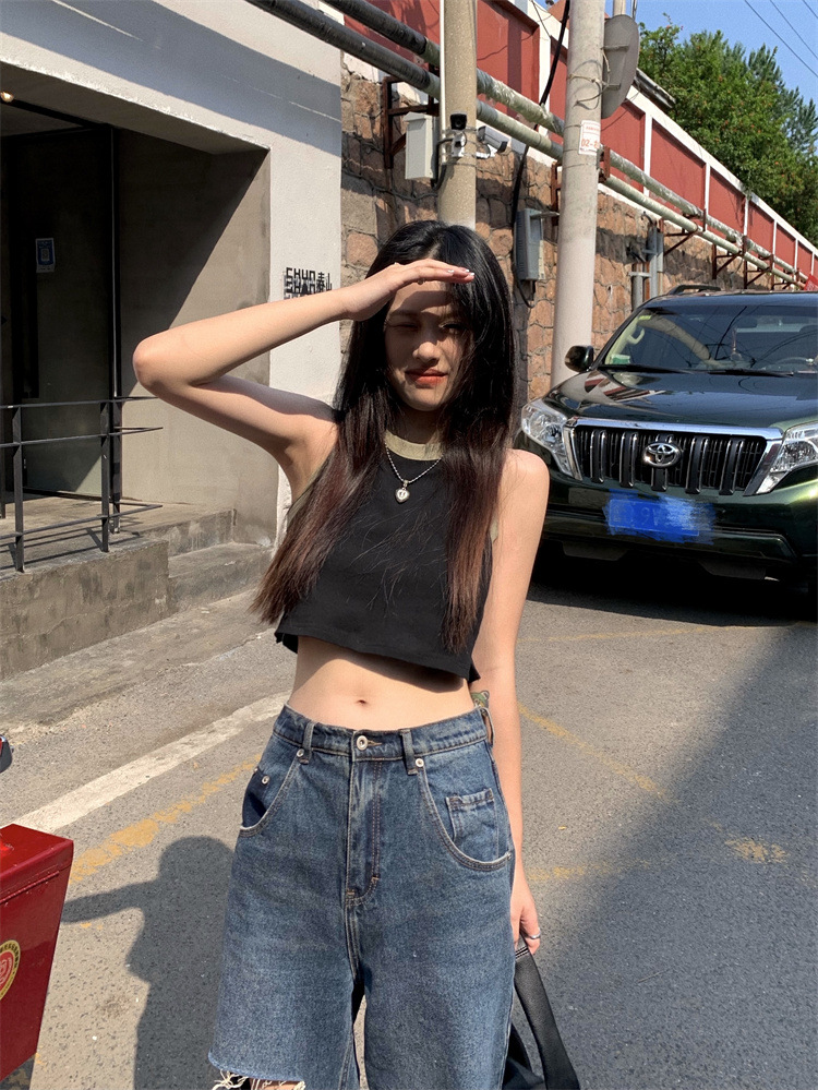 无袖挂脖内搭外穿美背性感辣妹穿搭上衣短款bm吊带针织背心女夏潮