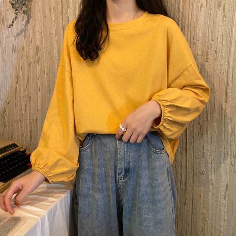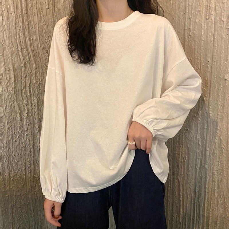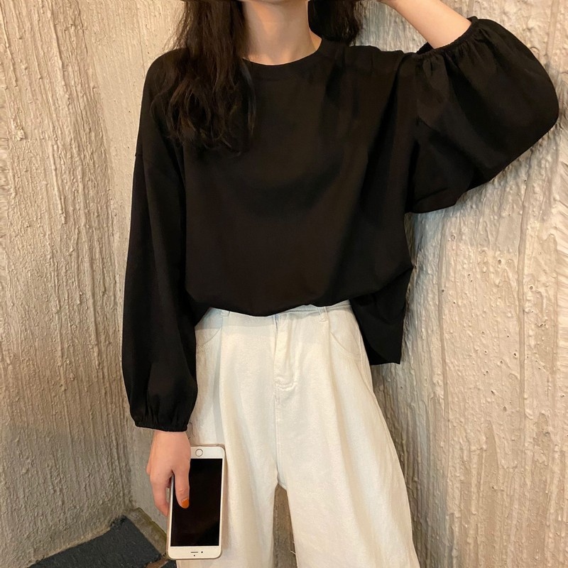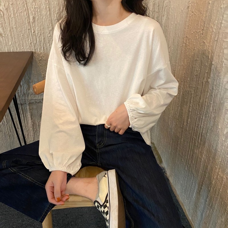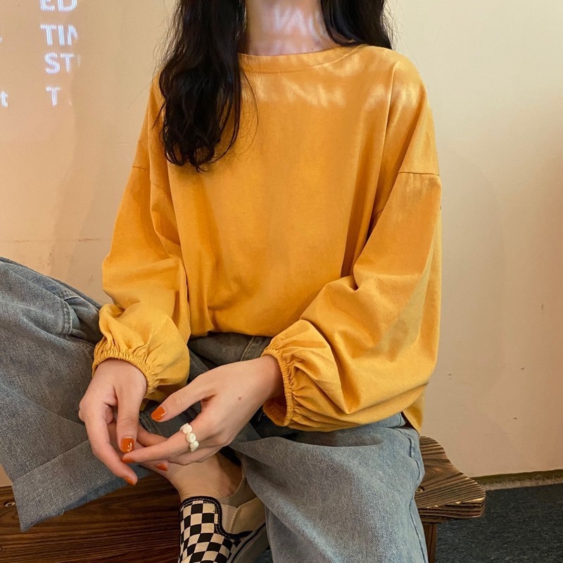 女装2025新款秋季韩版宽松套头学生灯笼袖长袖T恤女纯色打底衫潮