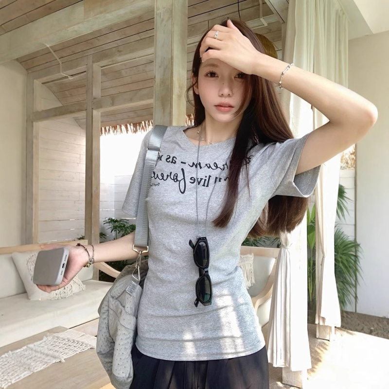 别致收腰显瘦字母印花短袖T恤女2025夏季新款休闲百搭学生上衣潮
