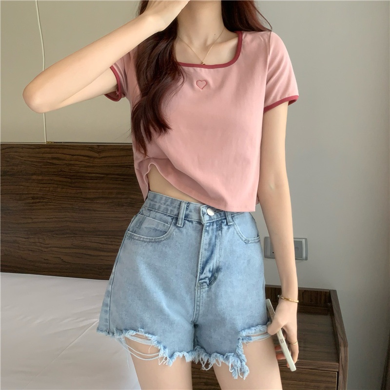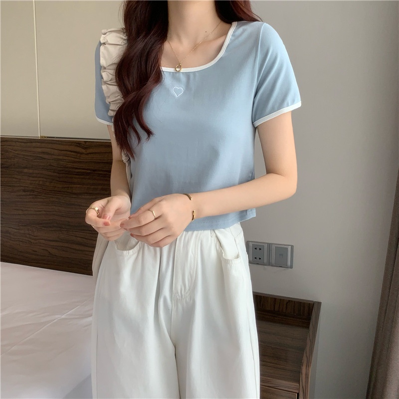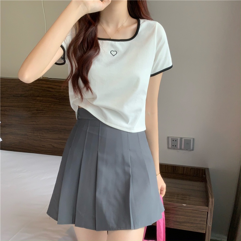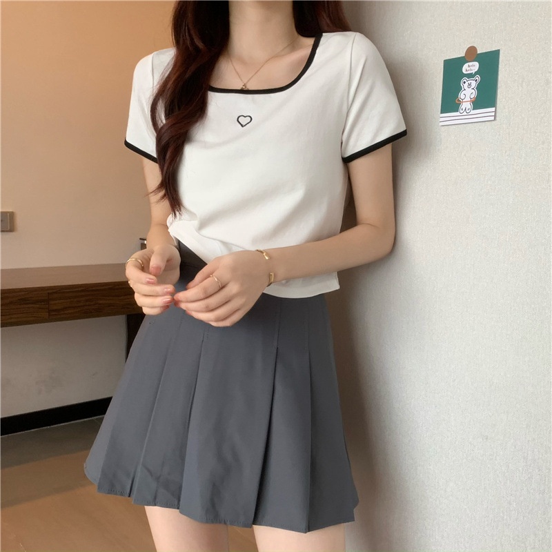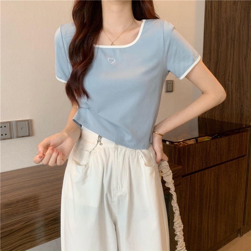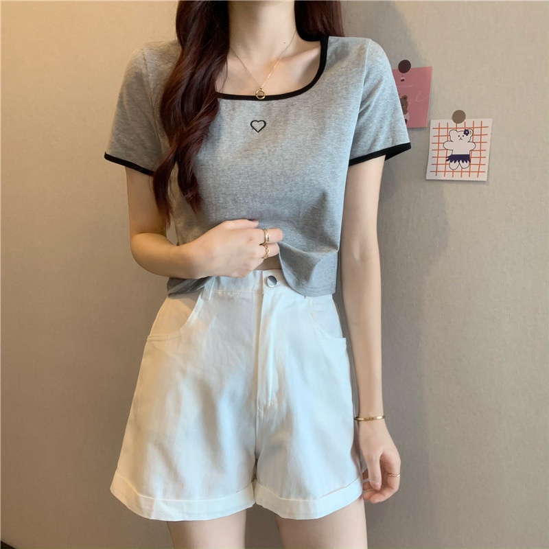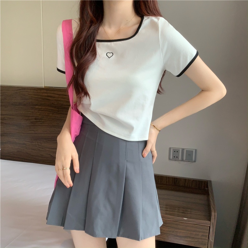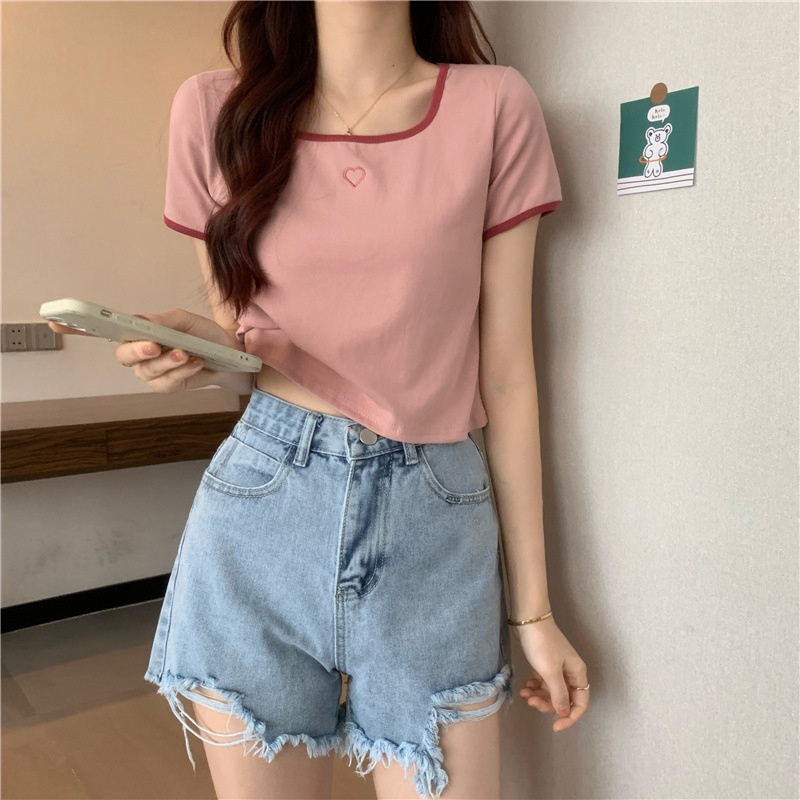 爱心刺绣T恤女ins潮短款辣妹修身纯欲风修身短袖上衣2025夏季新款