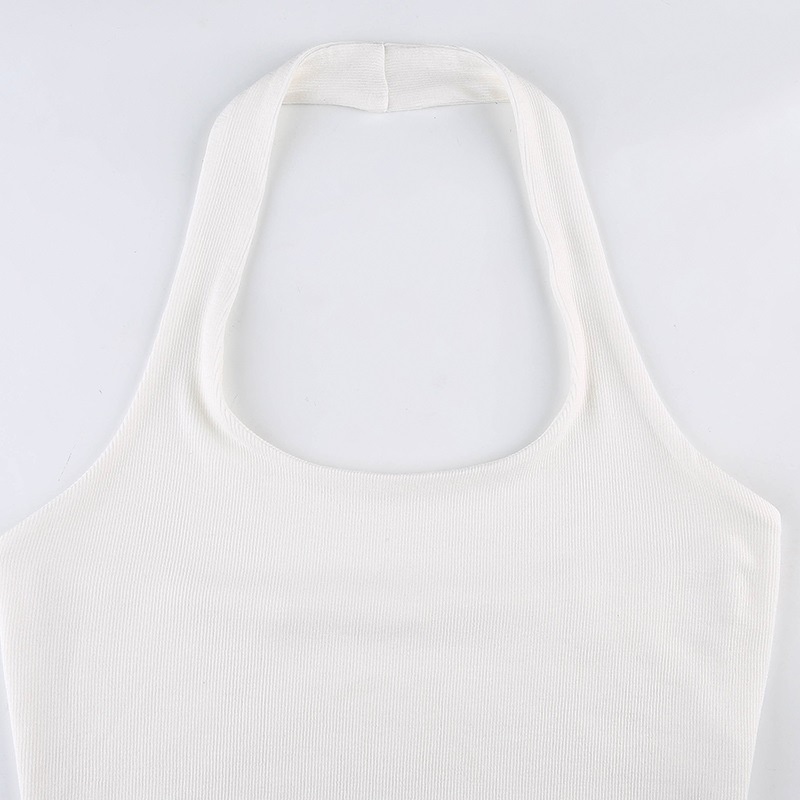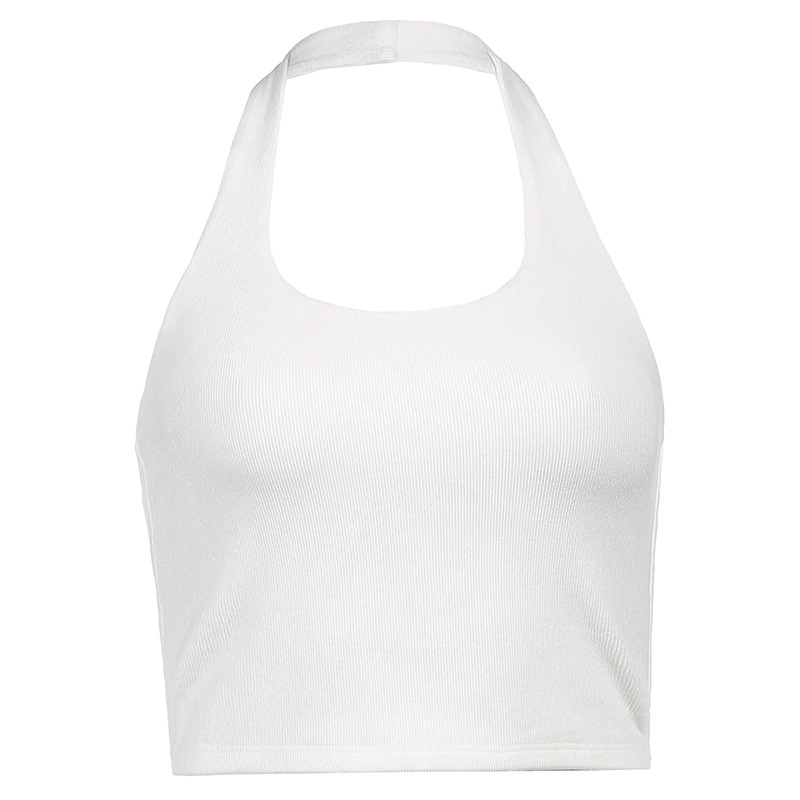 欧美辣妹性感U领针织挂脖式吊带背心女短款修身露背百搭打底上衣