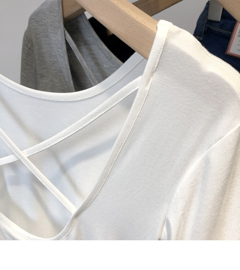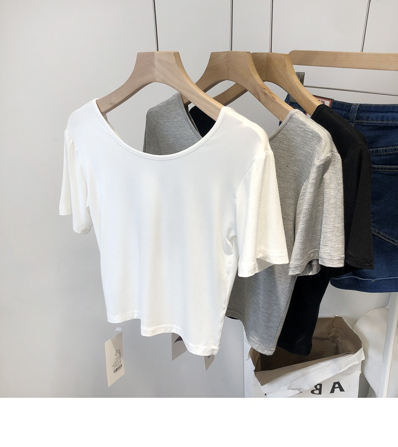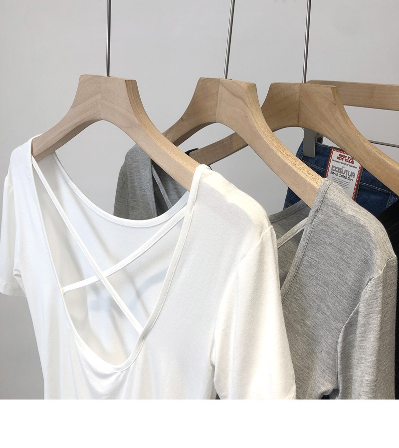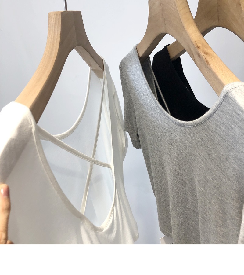 6828#夏季韩版修身显瘦小心机交叉美背短款打底短袖T恤上衣女