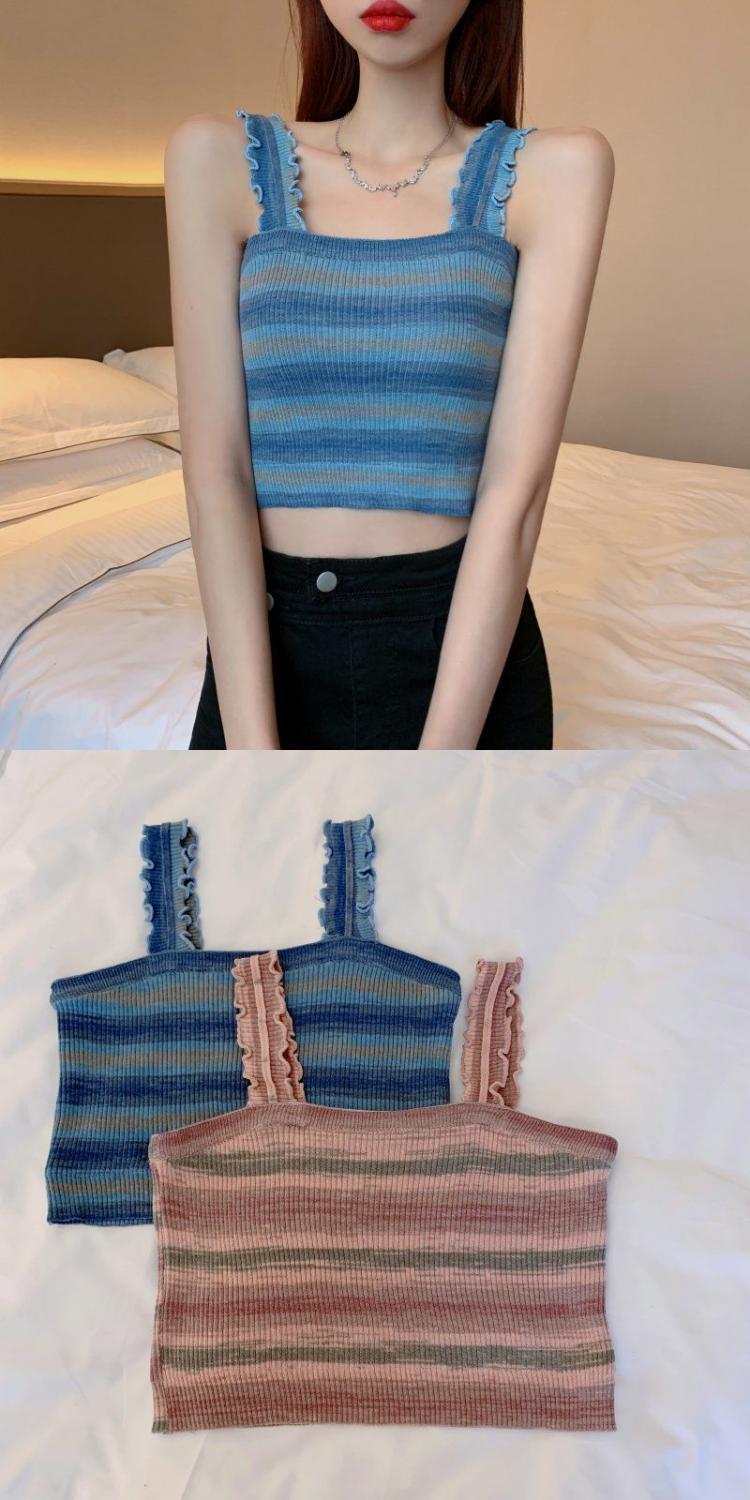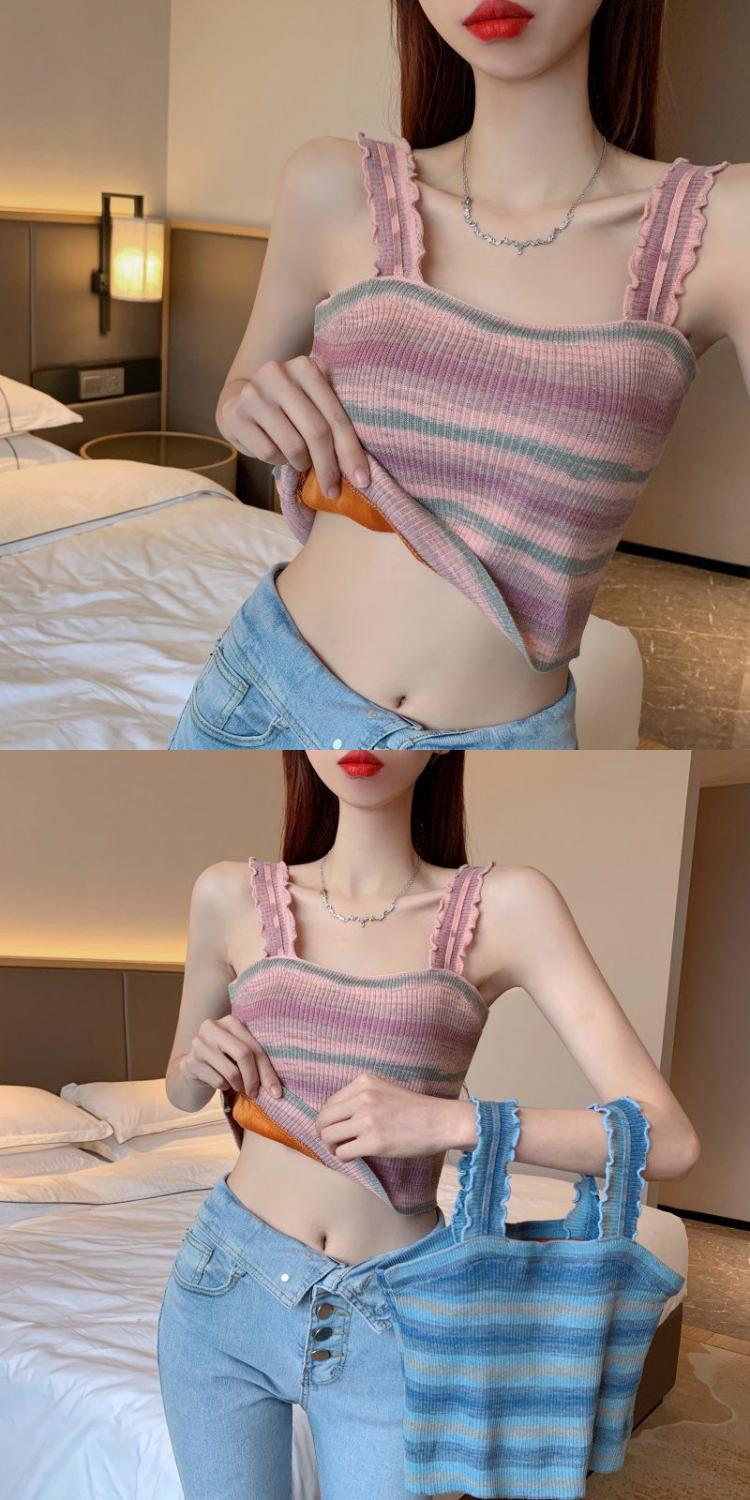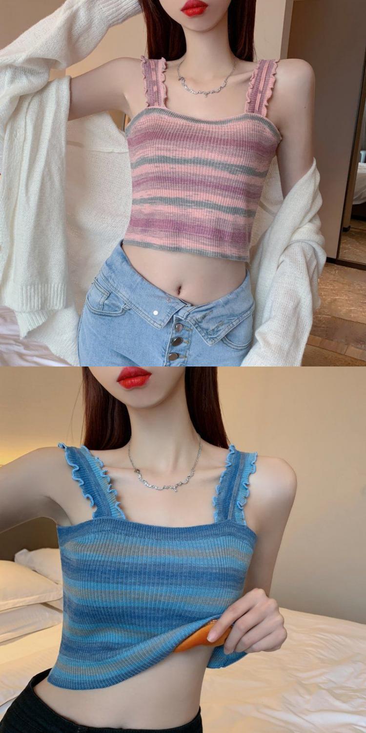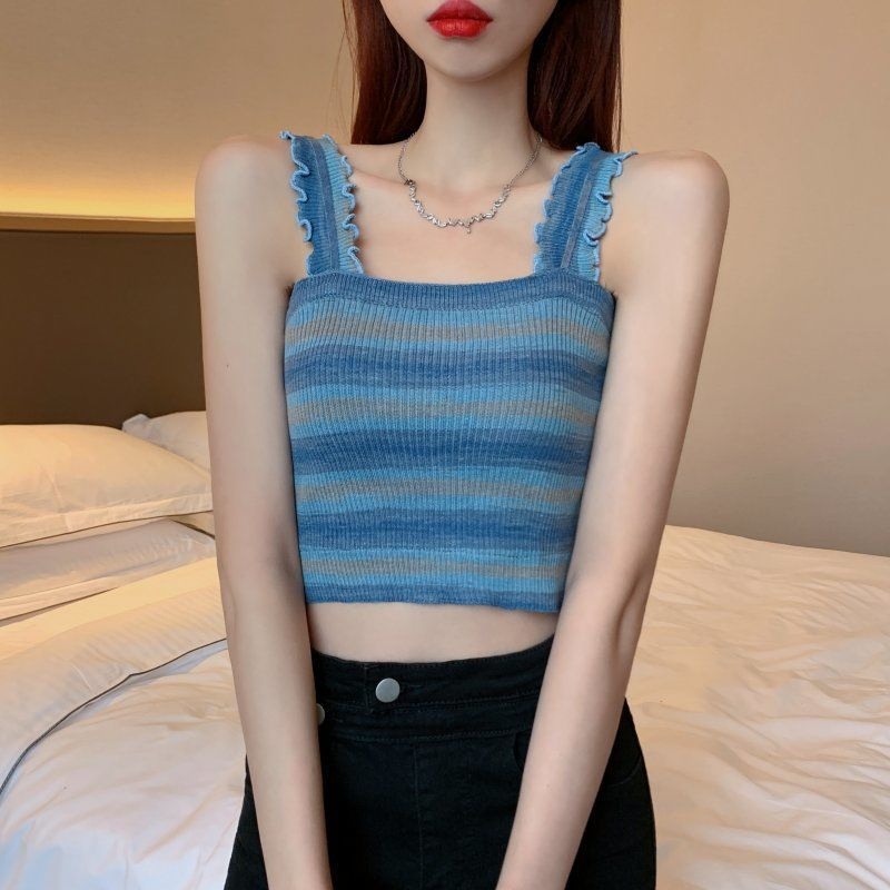 2022夏季韩版木耳边挂脖可调节ins女潮纯色百搭闺蜜装打底小吊带