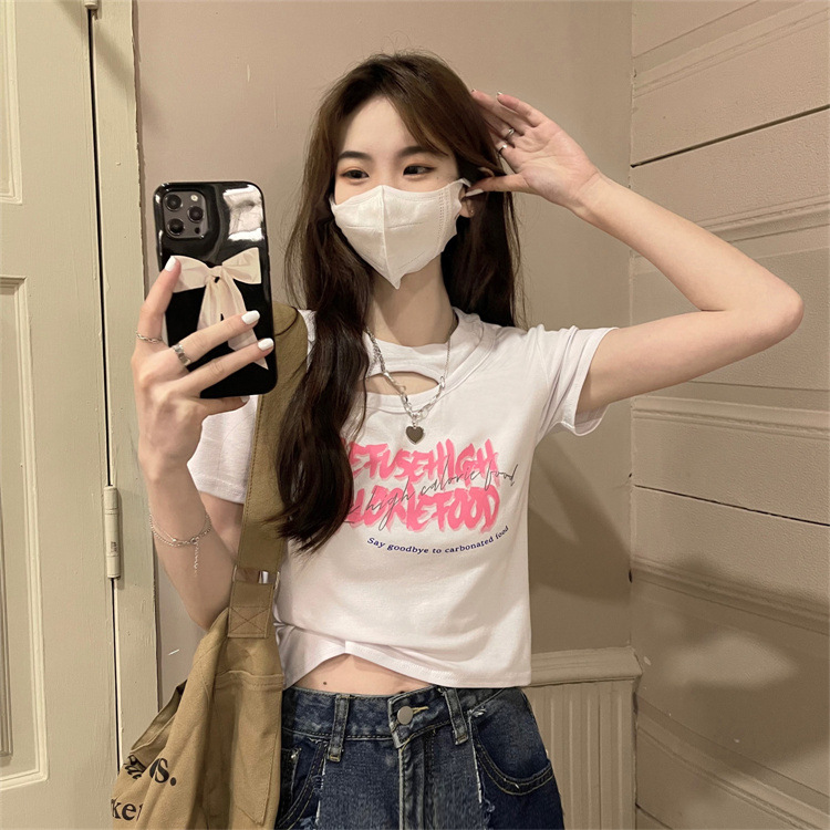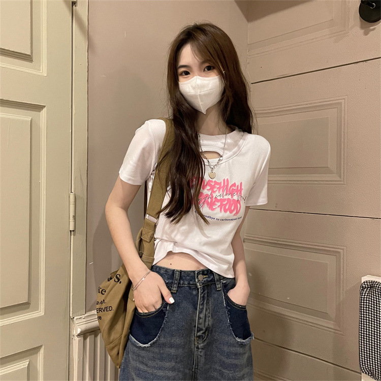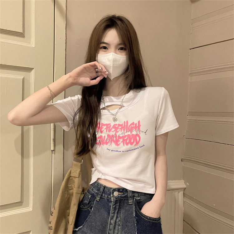 美式辣妹镂空短款T恤女夏季2025新款设计感修身显瘦短袖学生上衣