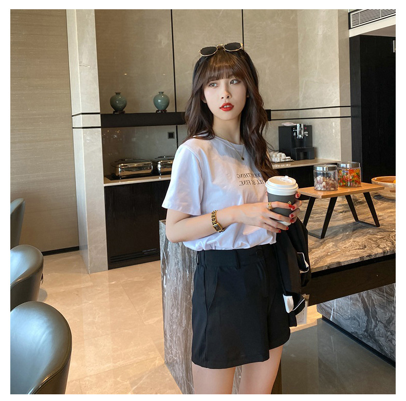 短袖T恤女装夏季2023年新款打底圆领上衣服印花宽松印花体恤T恤女