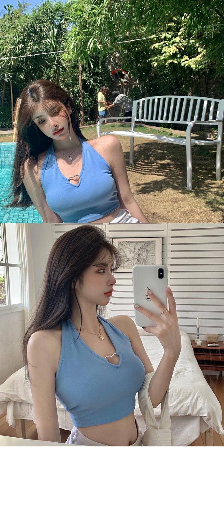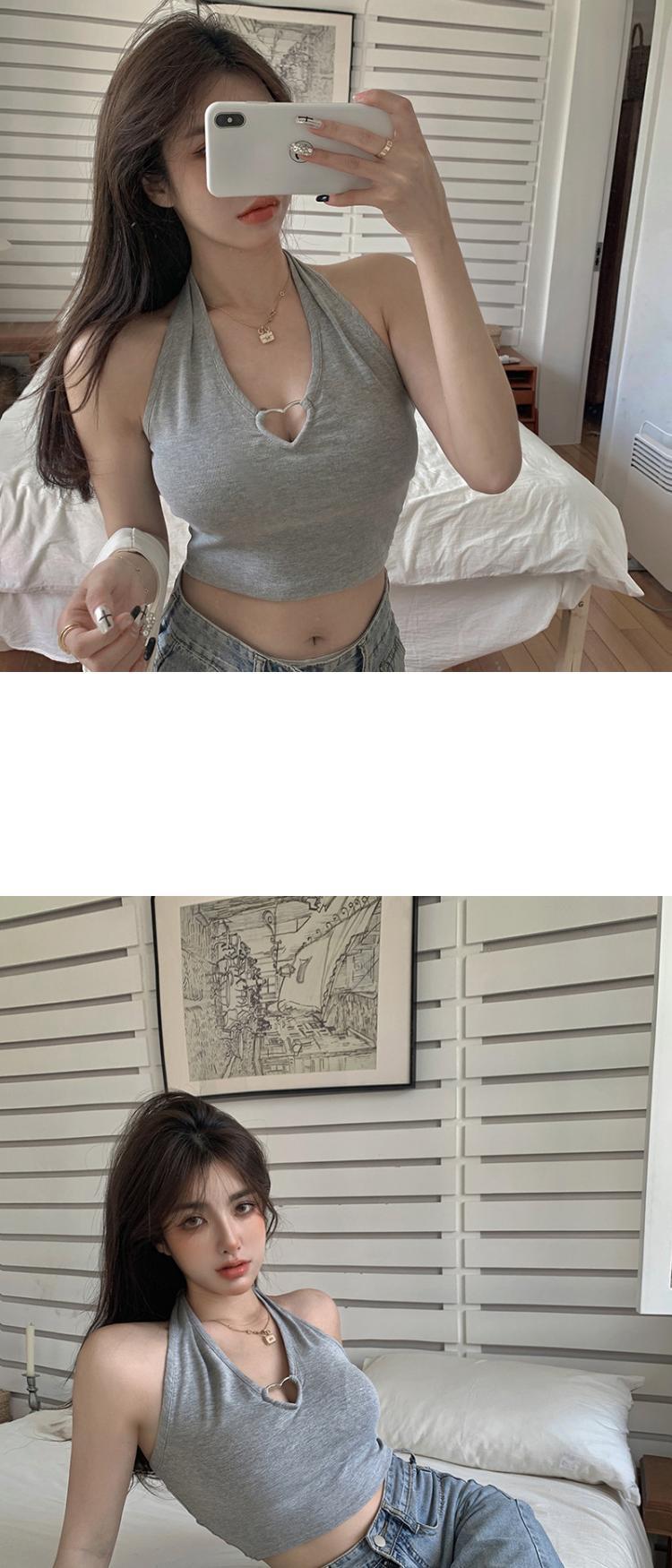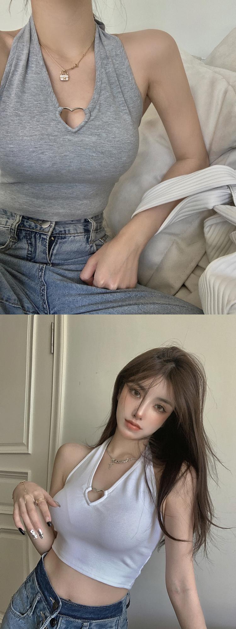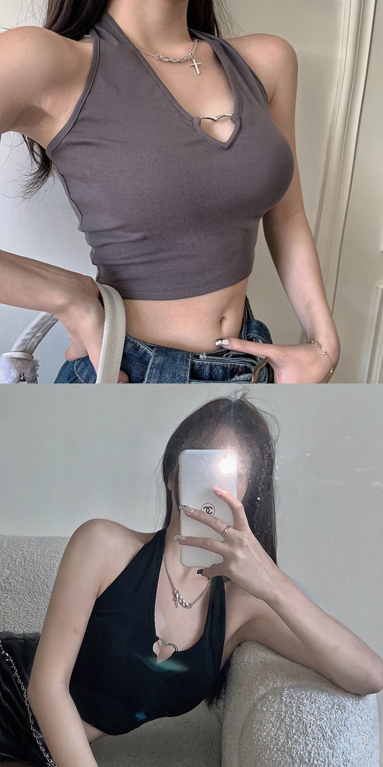 爱心挂脖吊带背心女通勤性感辣妹上衣通勤内搭系带漏脐欧美风女装