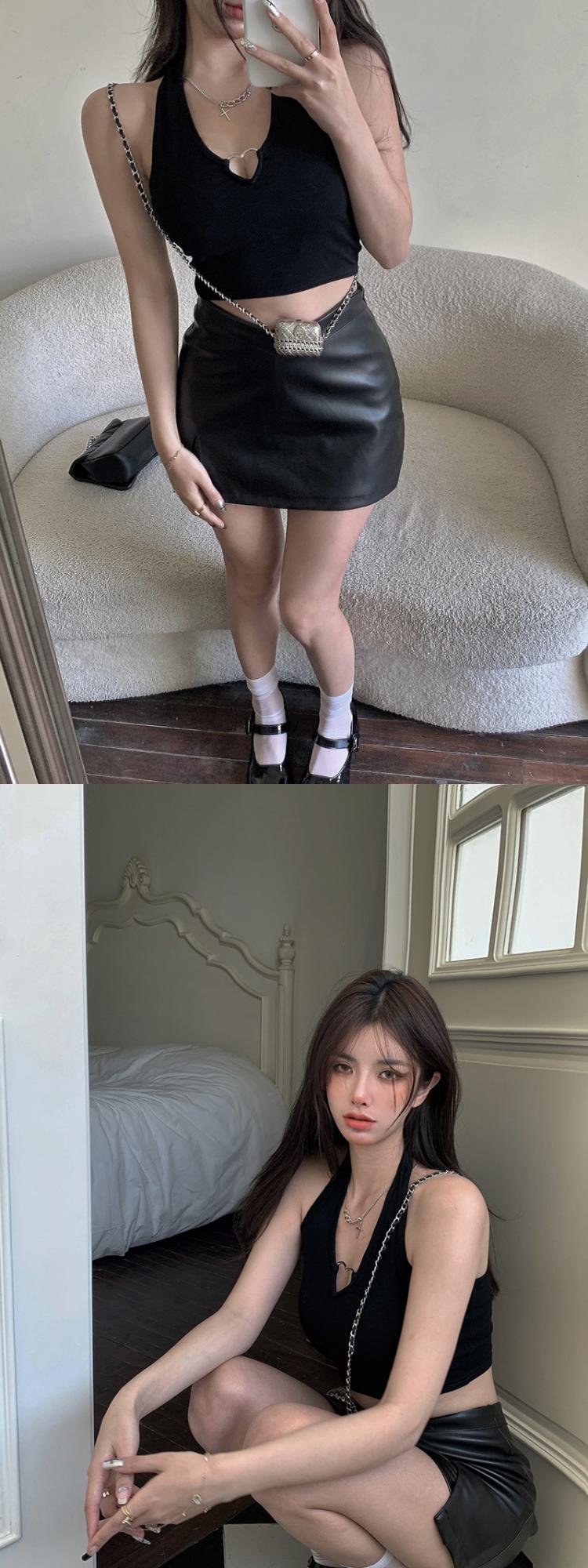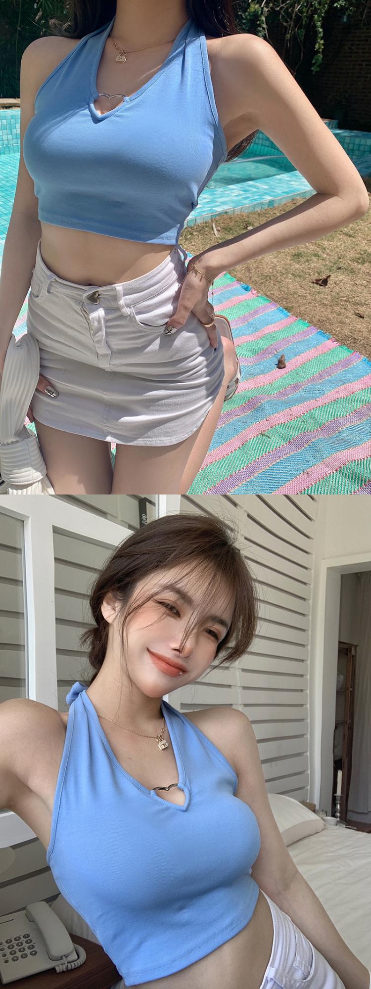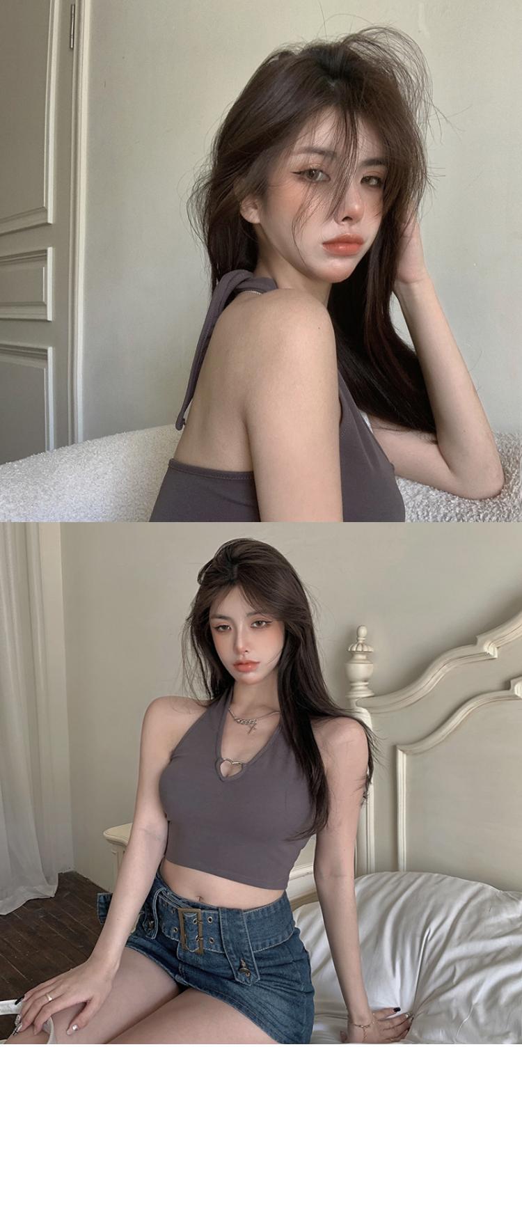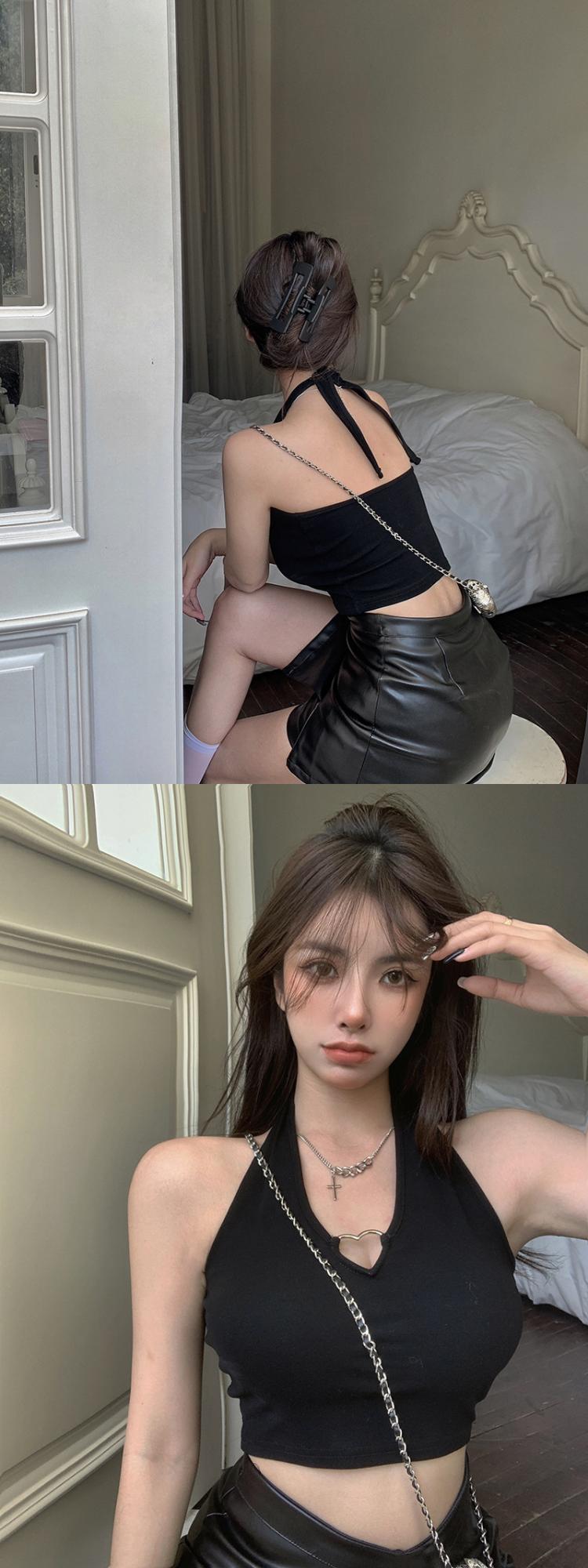 爱心挂脖吊带背心女通勤性感辣妹上衣通勤内搭系带漏脐欧美风女装