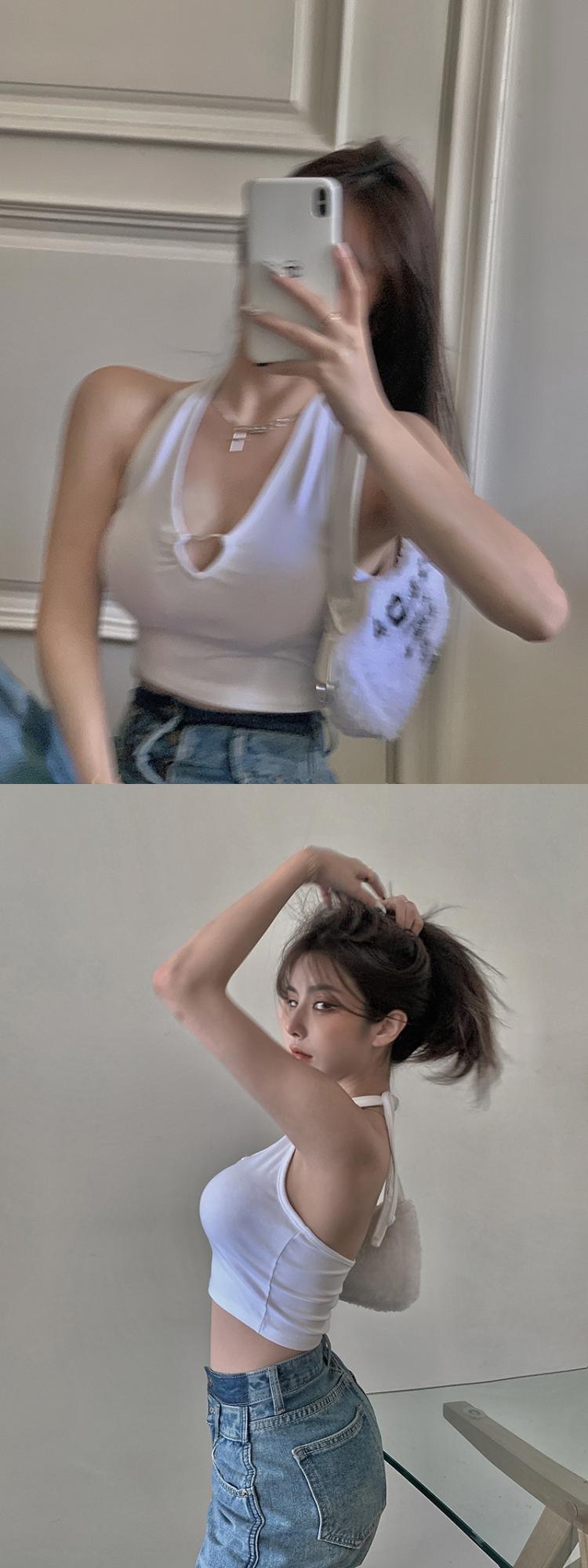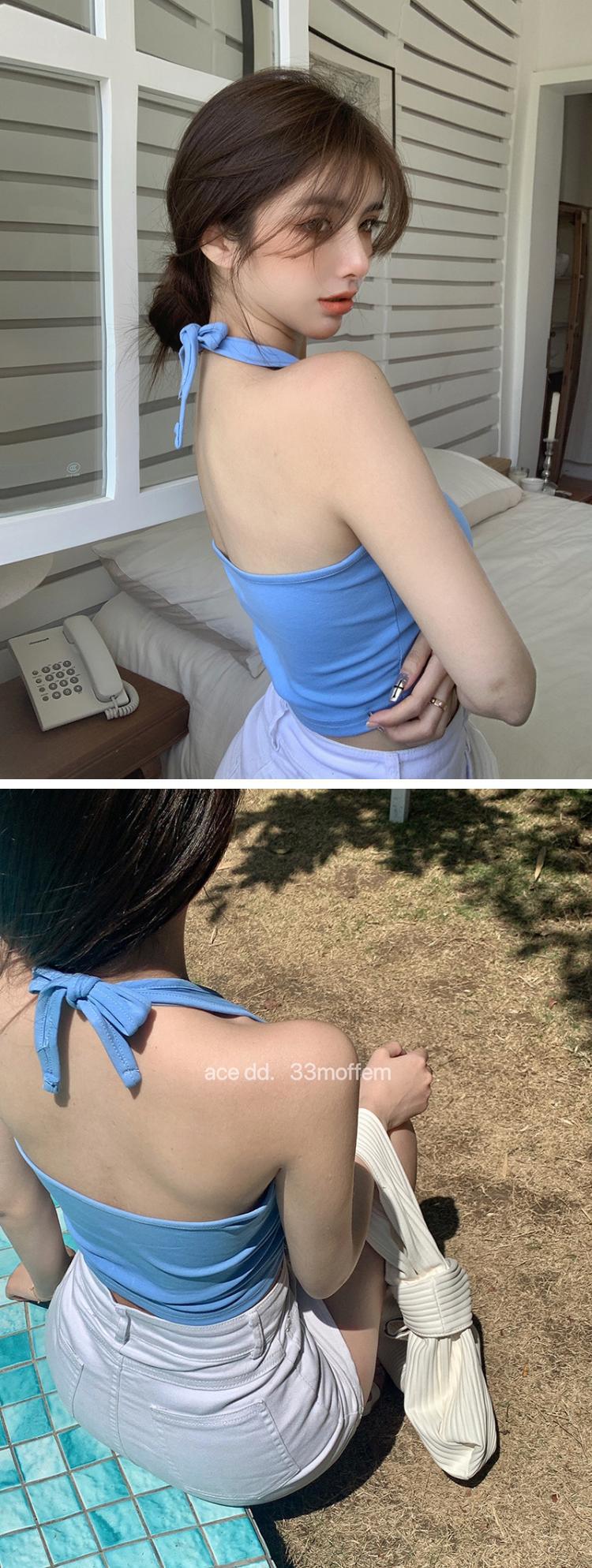 夏季短款纯色法式针织薄款挂脖吊带性感辣妹外穿露背加工定制上衣