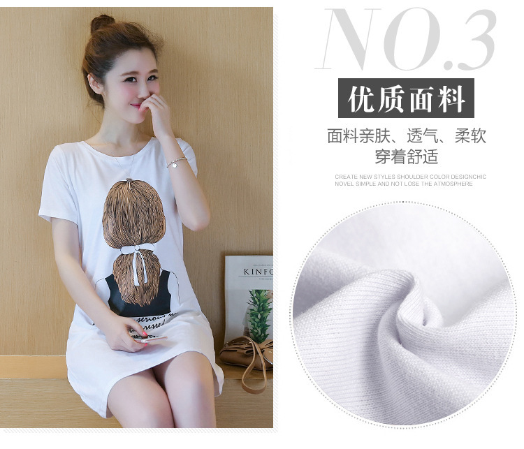 2025夏季新款女装韩版连衣裙印花女中长款短袖t恤女学生上衣打底