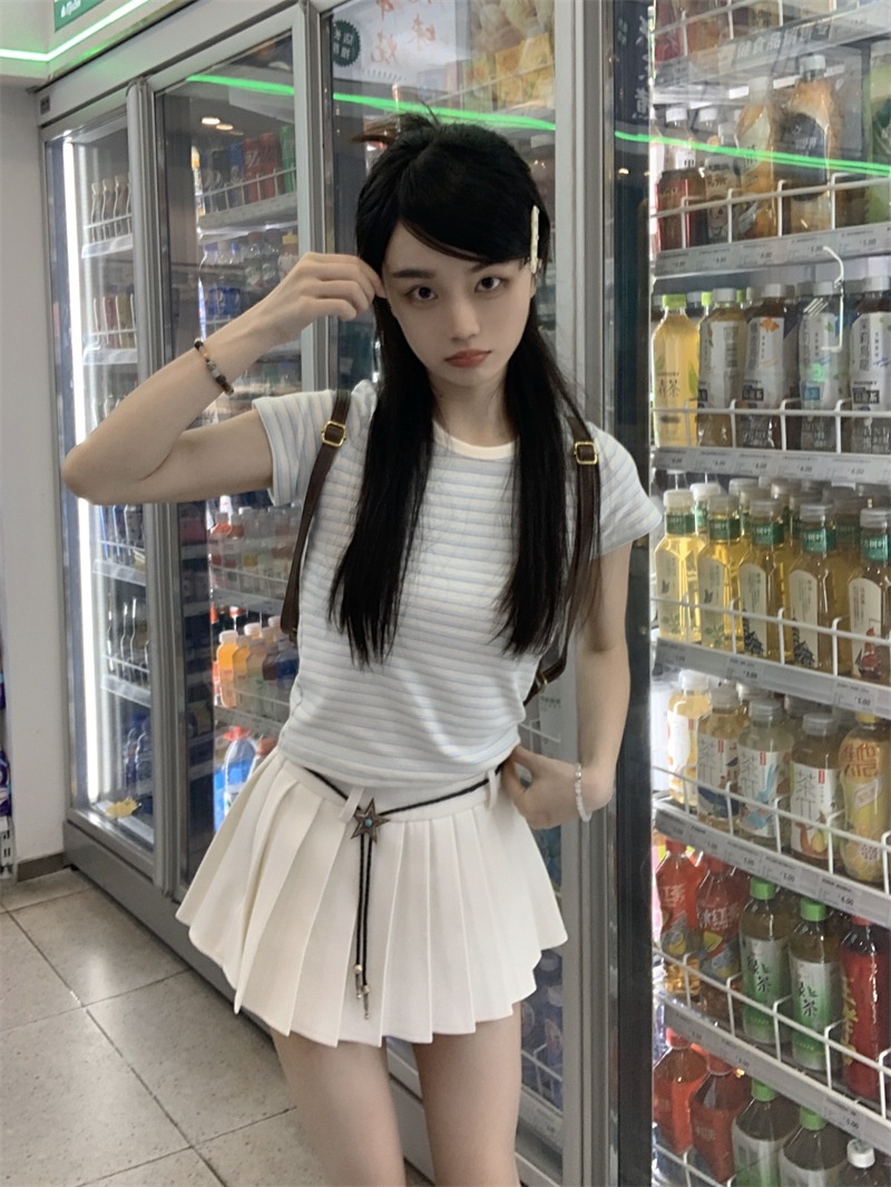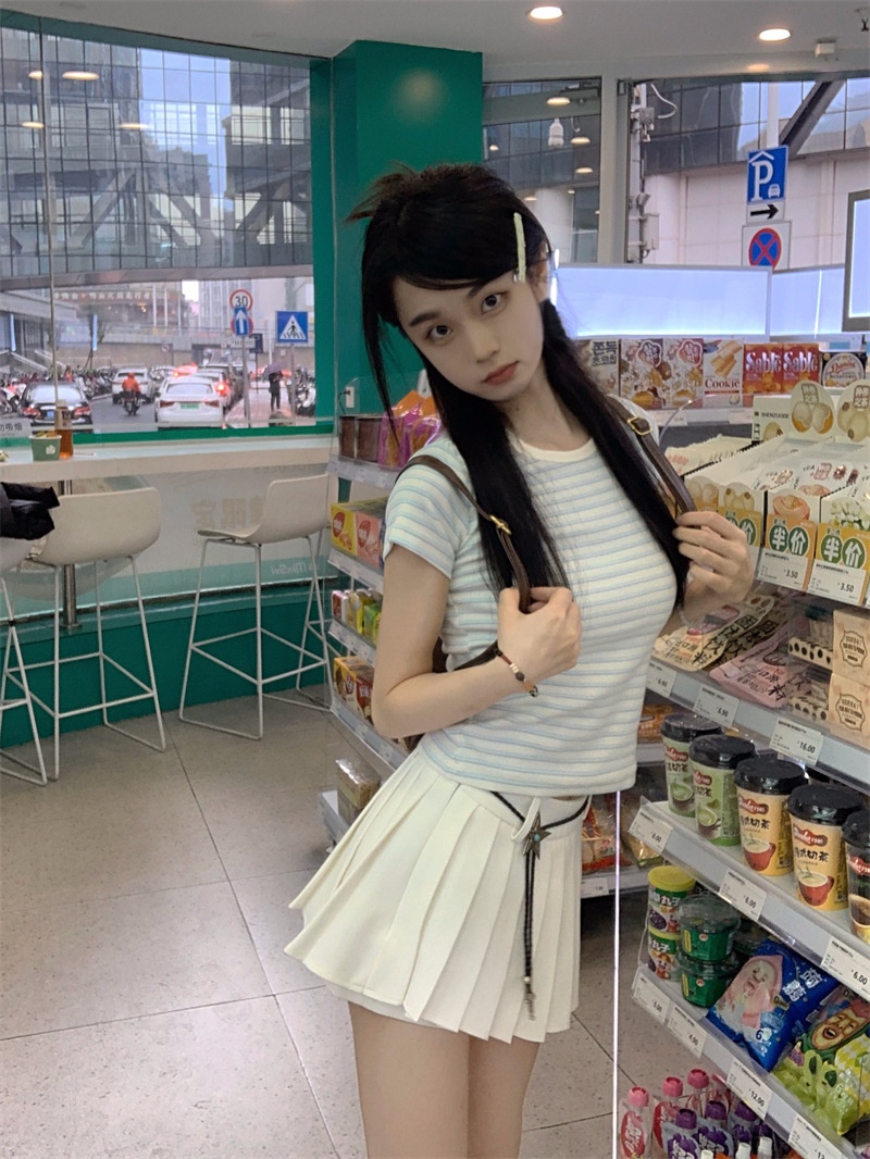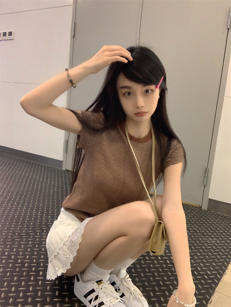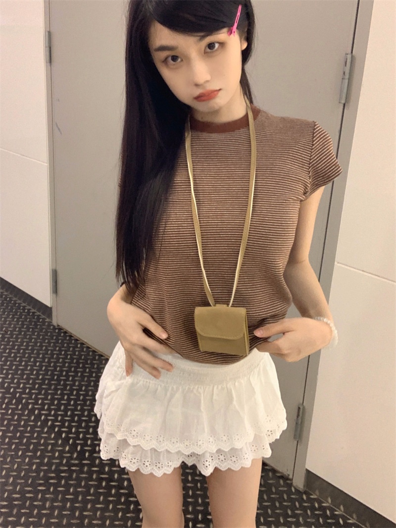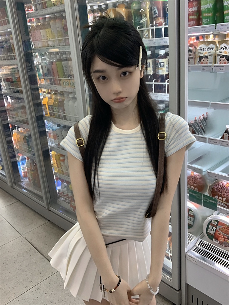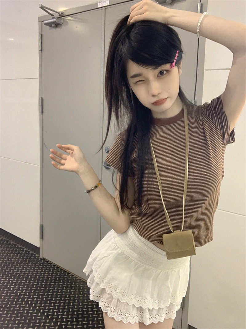 复古短袖条纹T恤女2025夏季辣妹修身显瘦打底衫百搭学生短款上衣