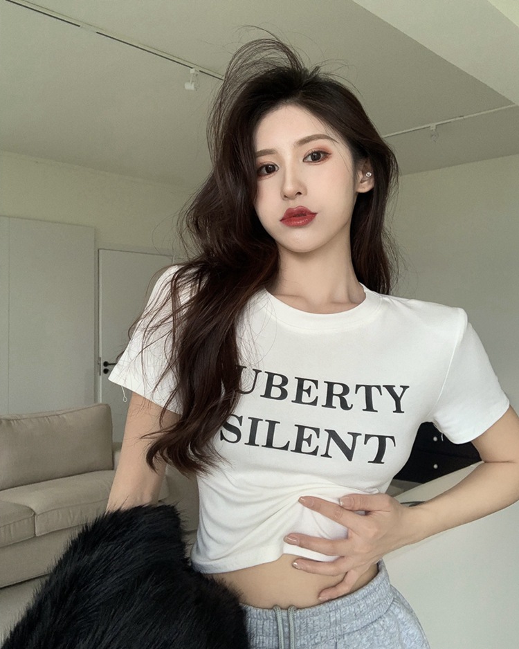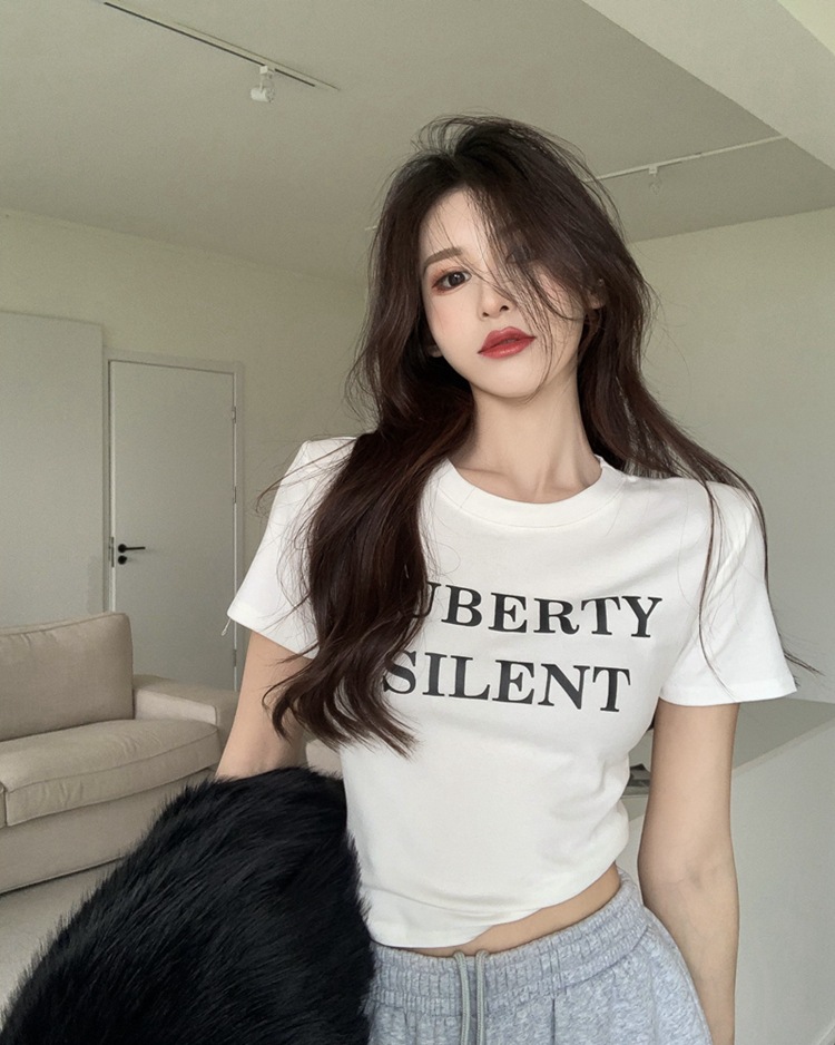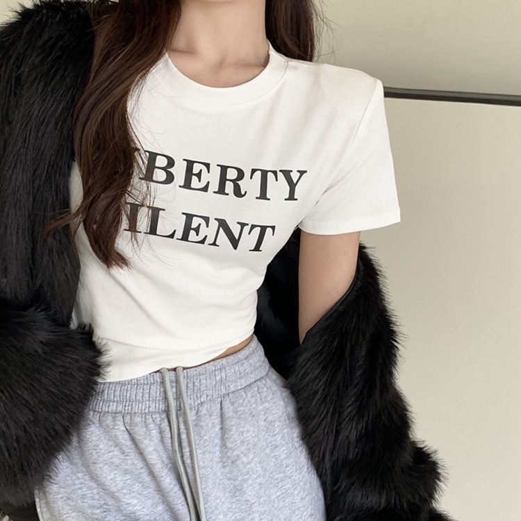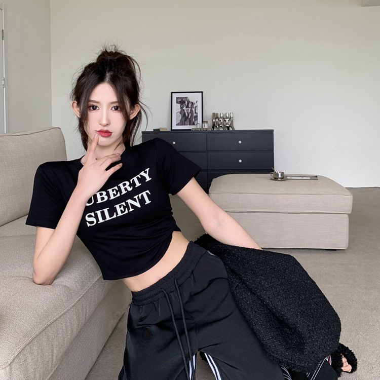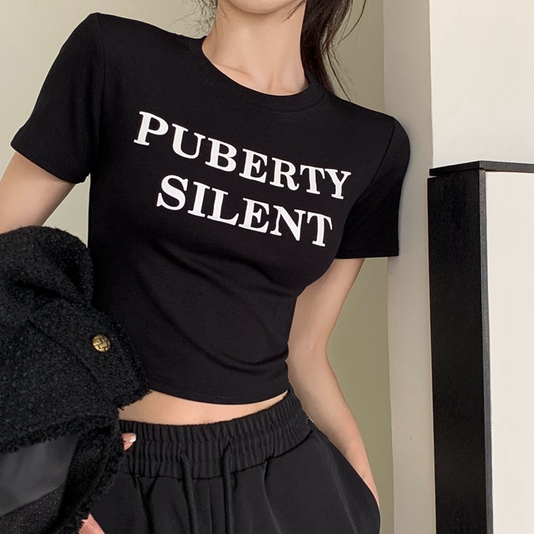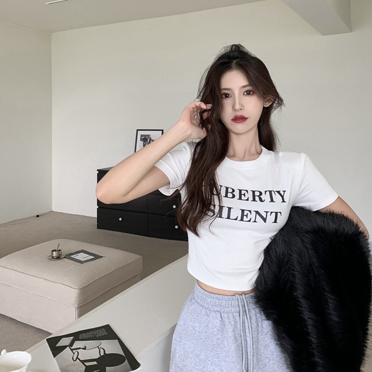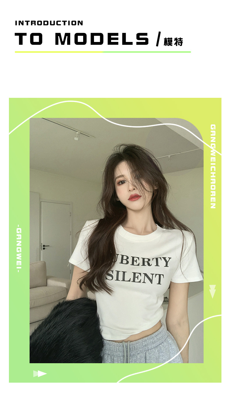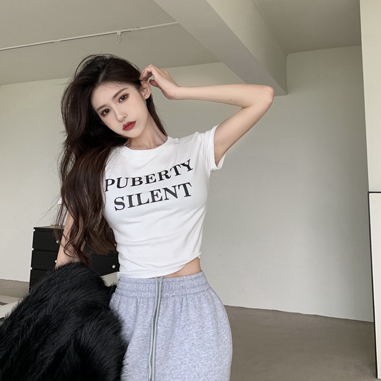 短袖T恤女内搭短款打底衫2025春夏显瘦修身欧美字母白色学生上衣