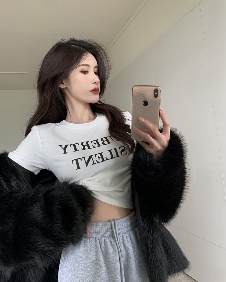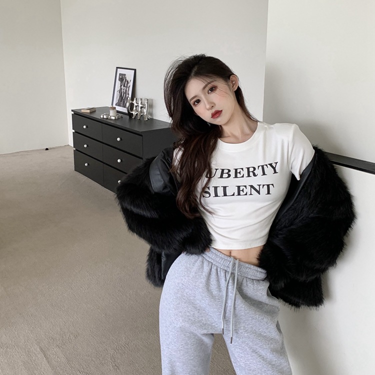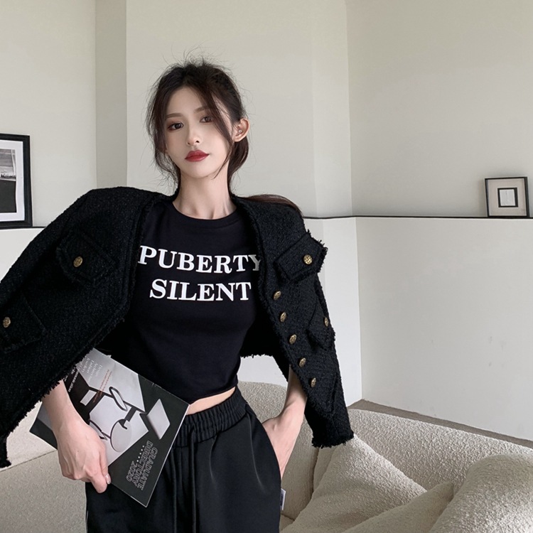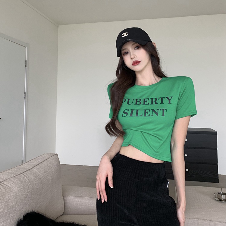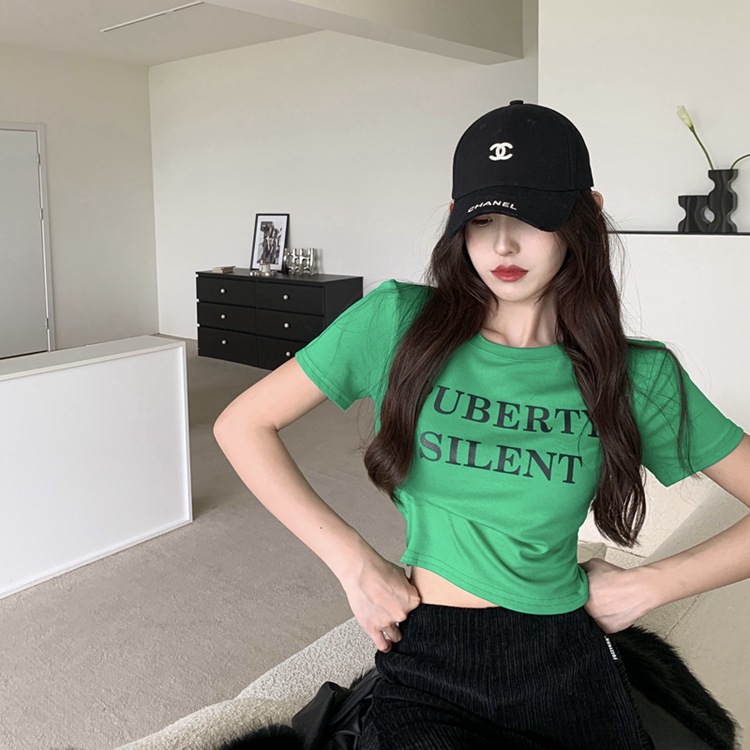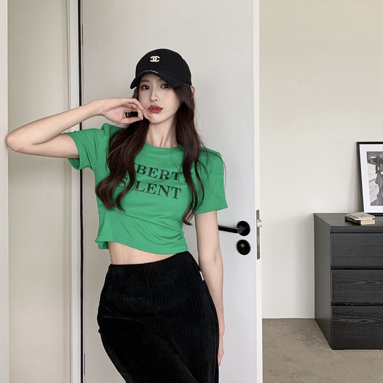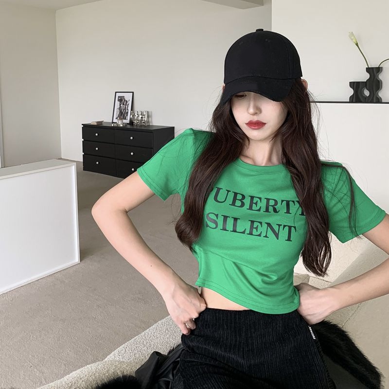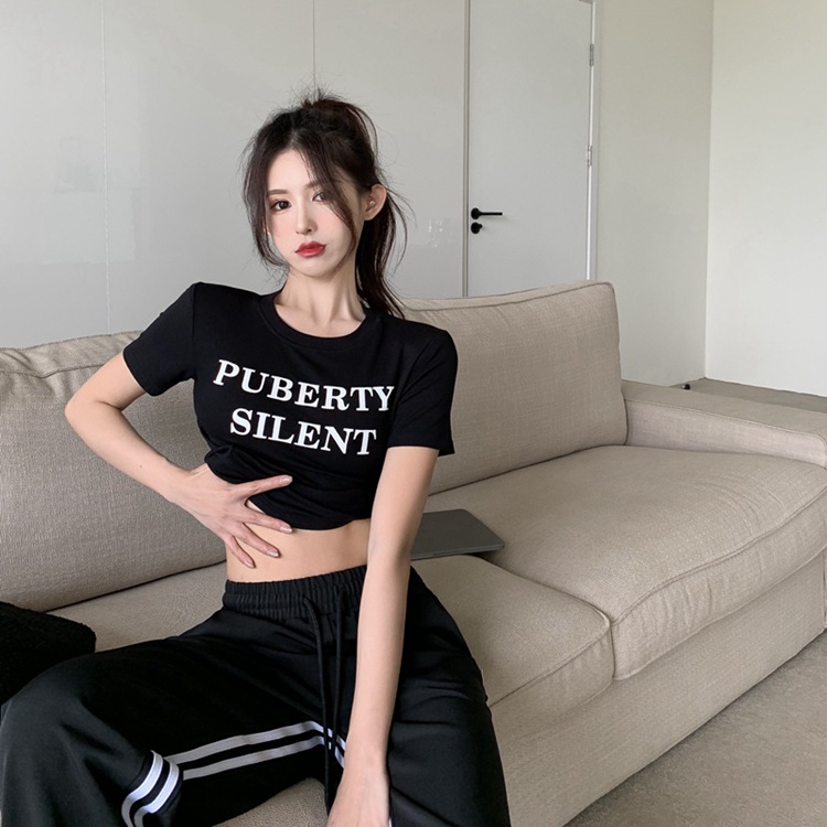 短袖T恤女内搭短款打底衫2025春夏显瘦修身欧美字母白色学生上衣