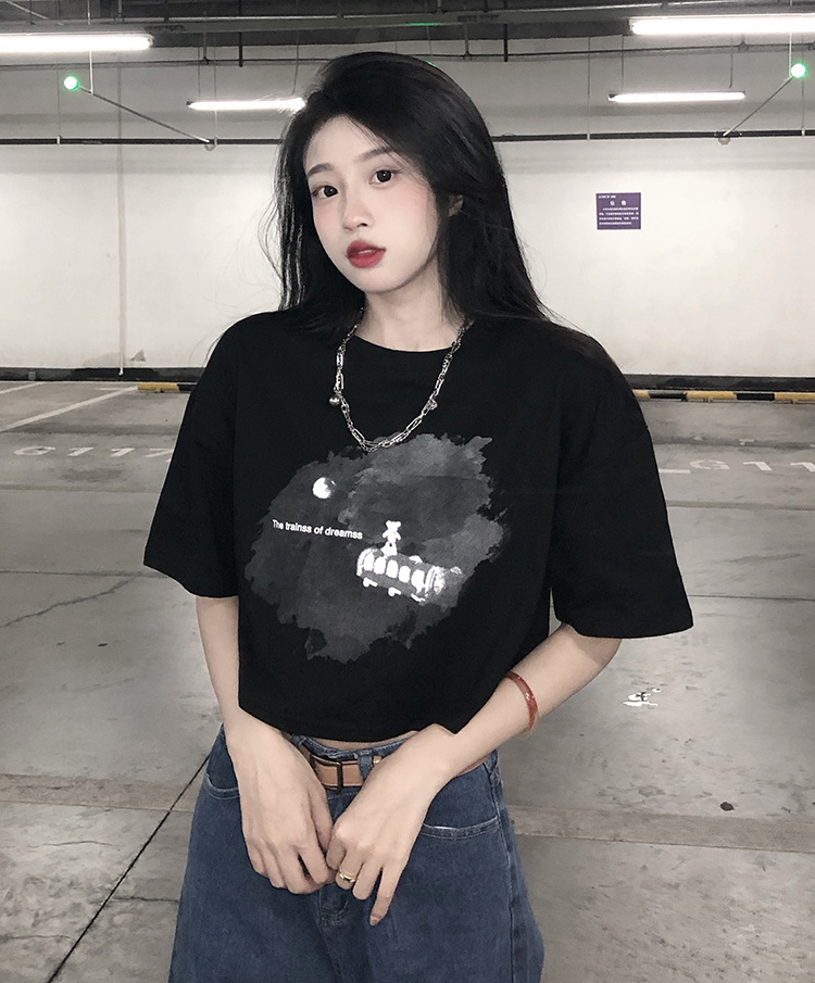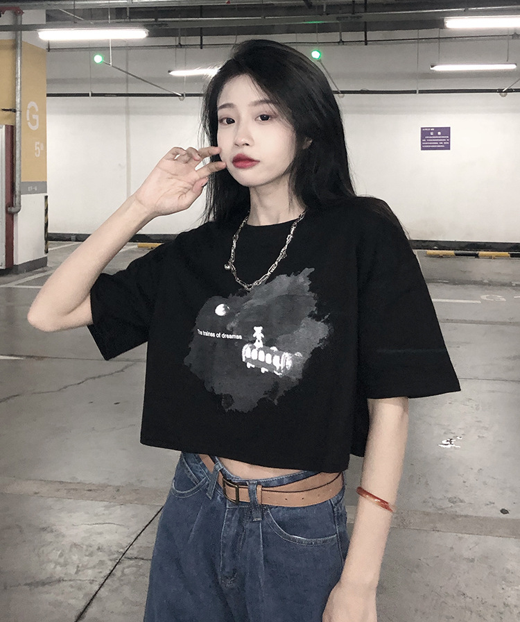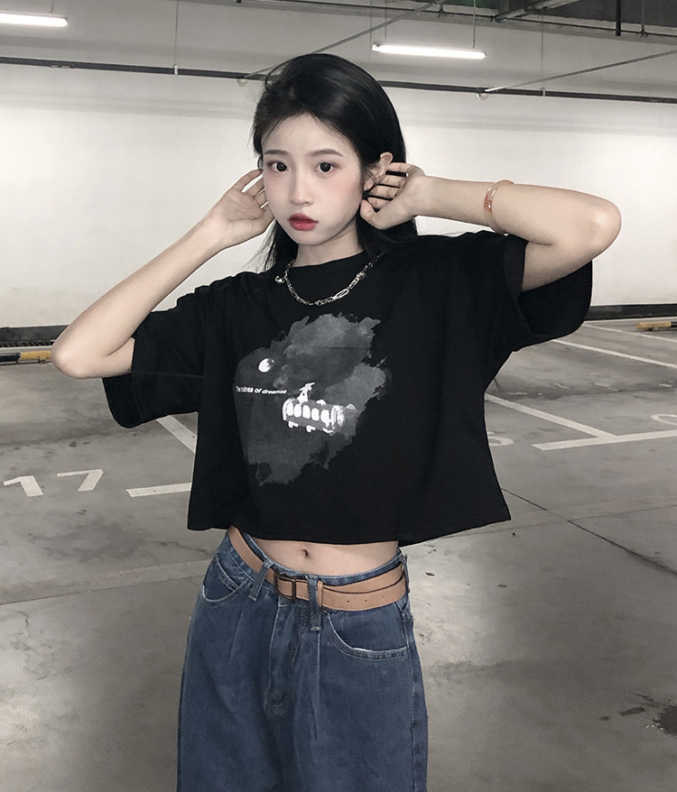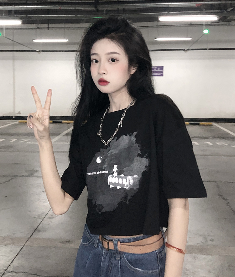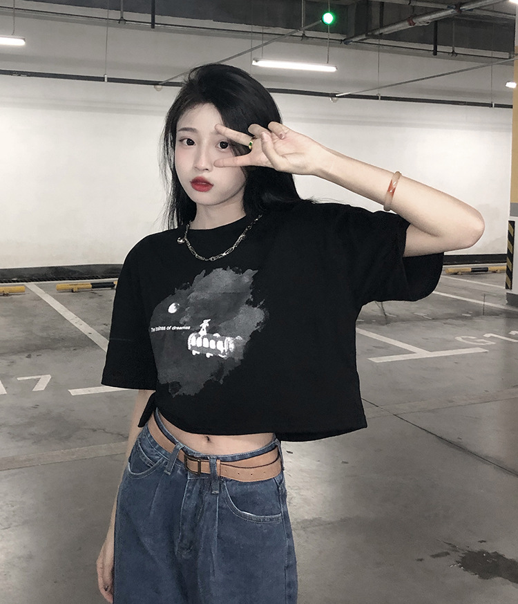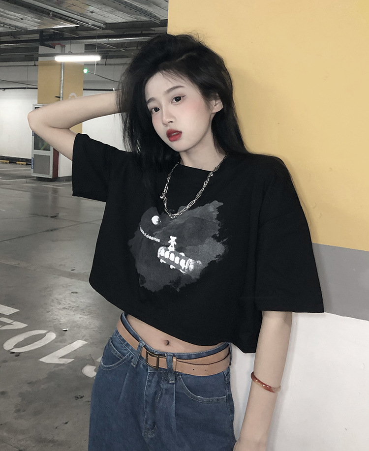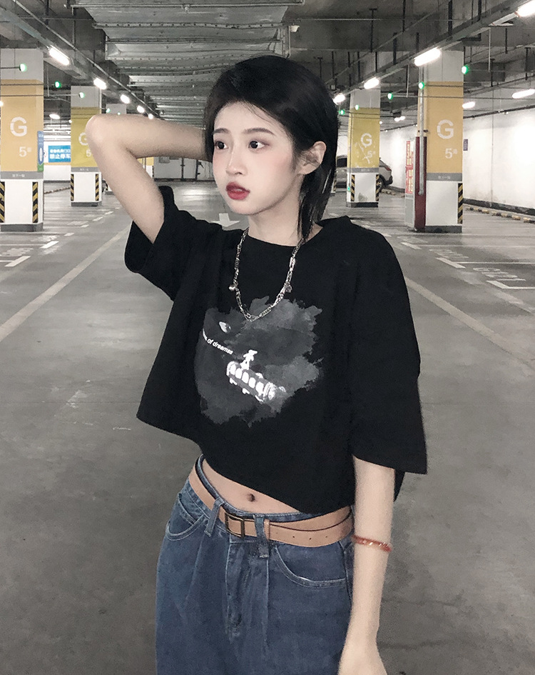 辣妹风学生上衣2025夏季新款时尚chic短款露脐短袖黑色打底T恤女