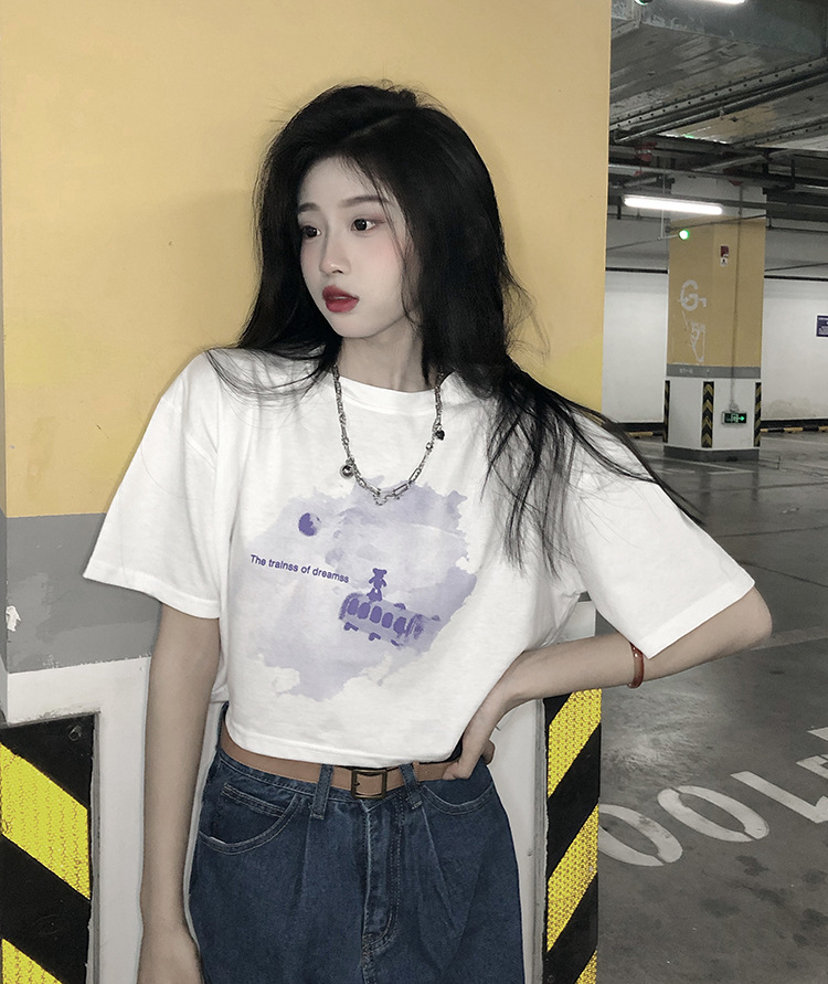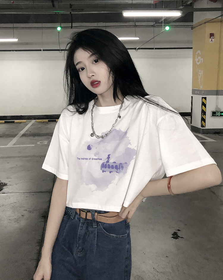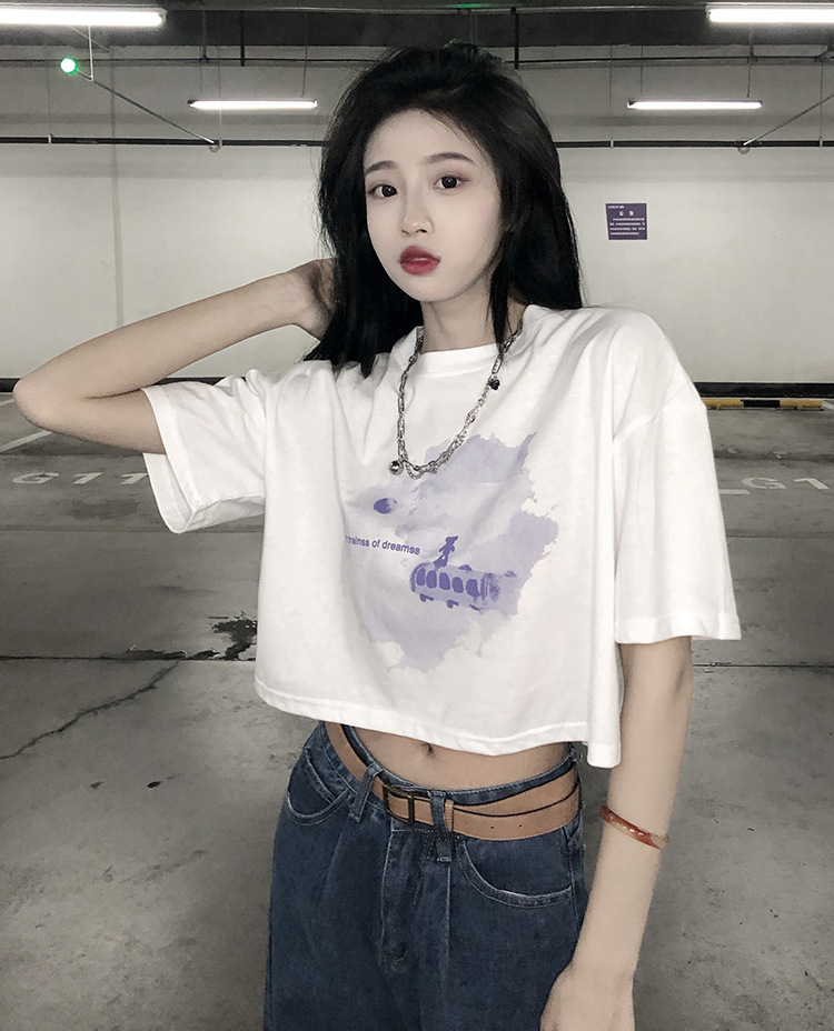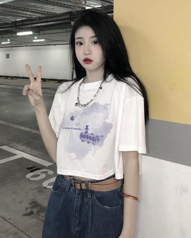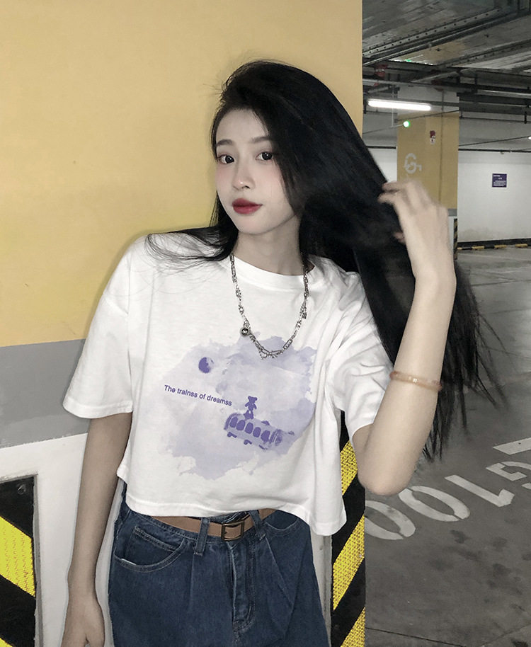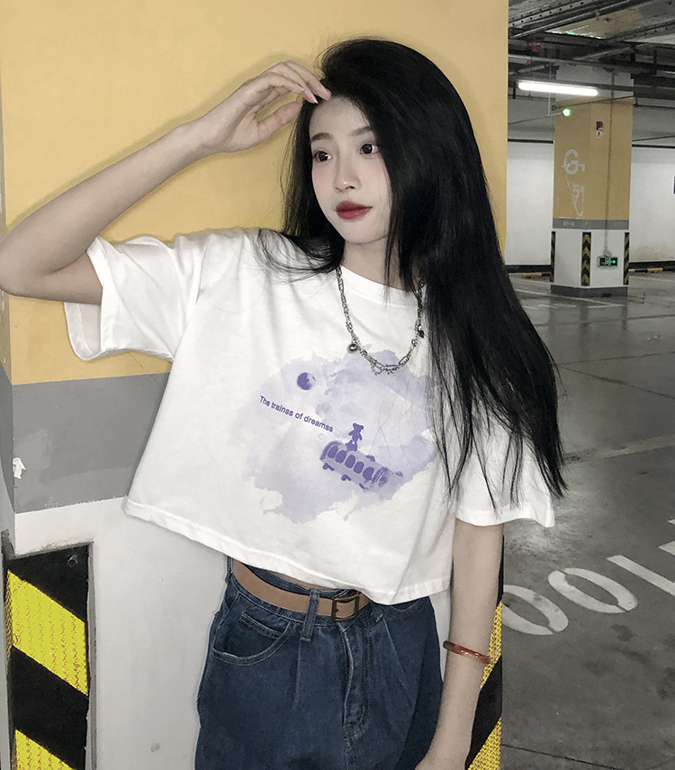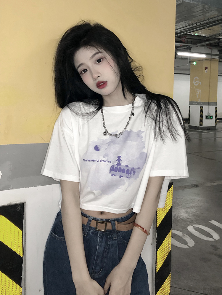 辣妹风学生上衣2025夏季新款时尚chic短款露脐短袖黑色打底T恤女