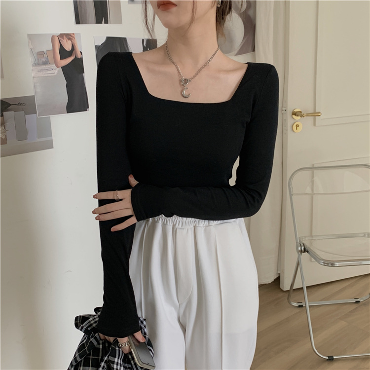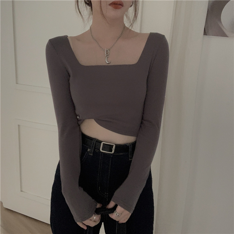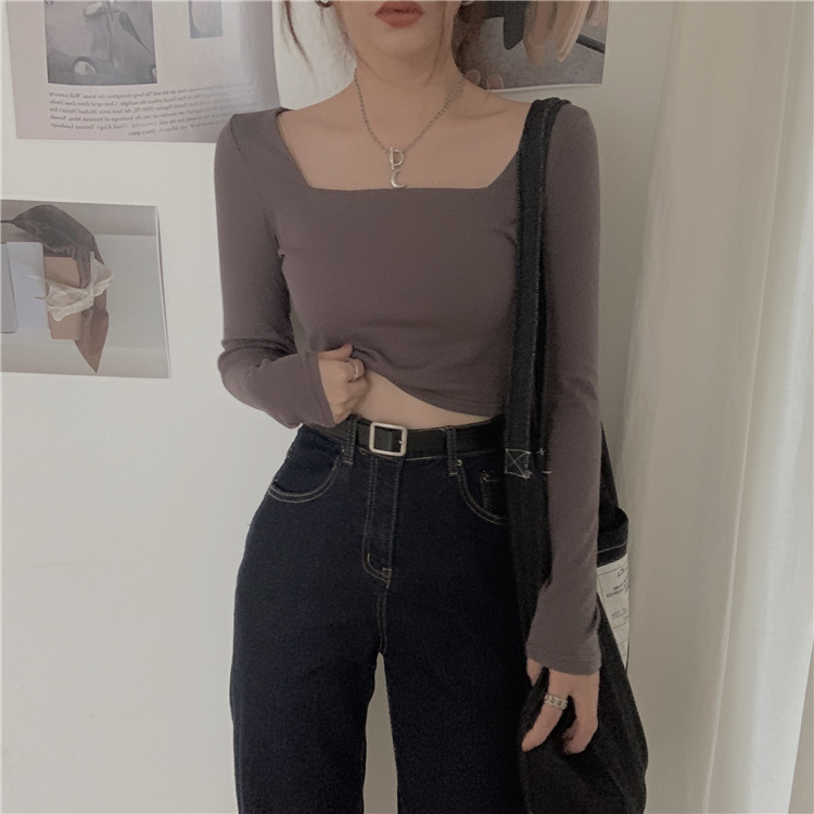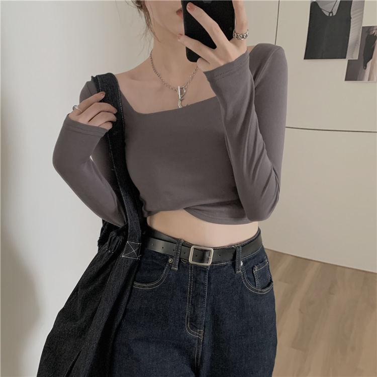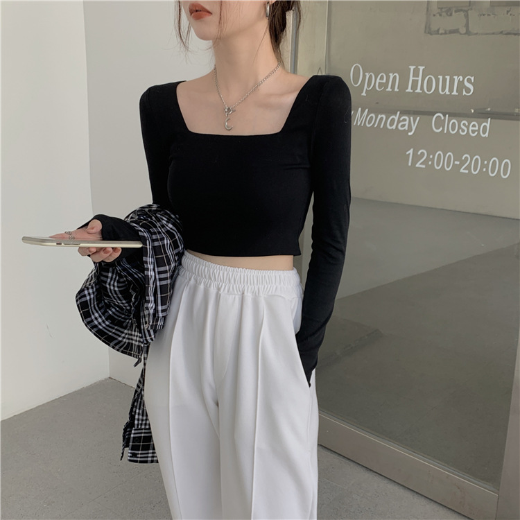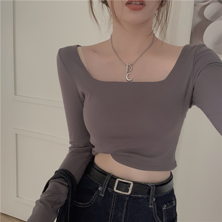 早秋辣妹方领短款上衣女秋装2025年新款修身内搭打底衫长袖T恤女
