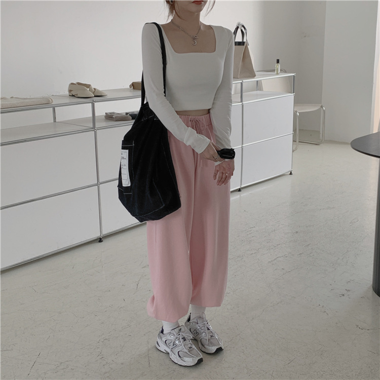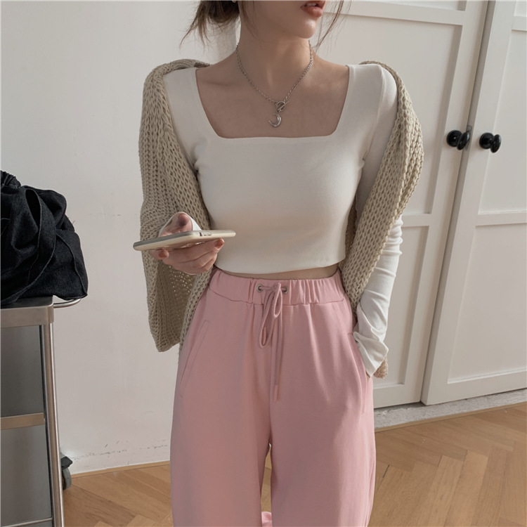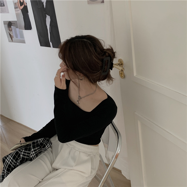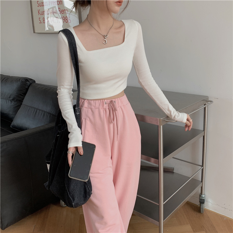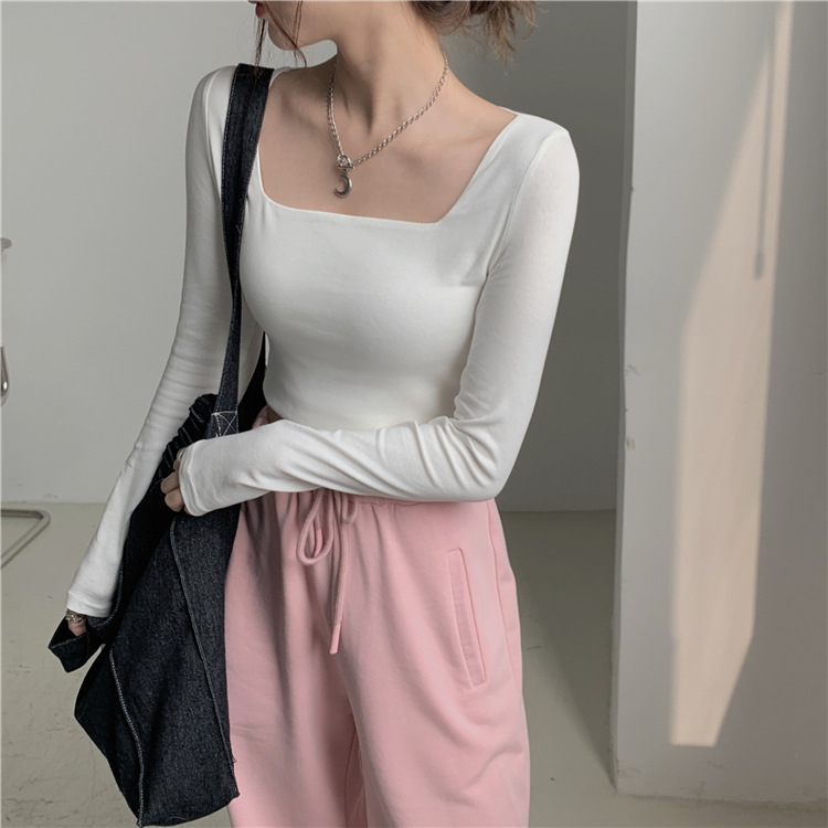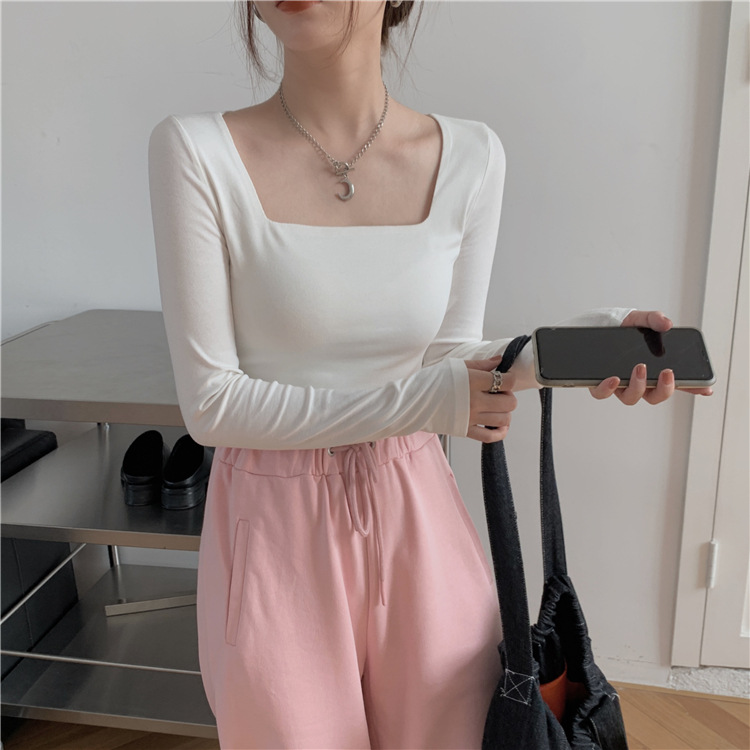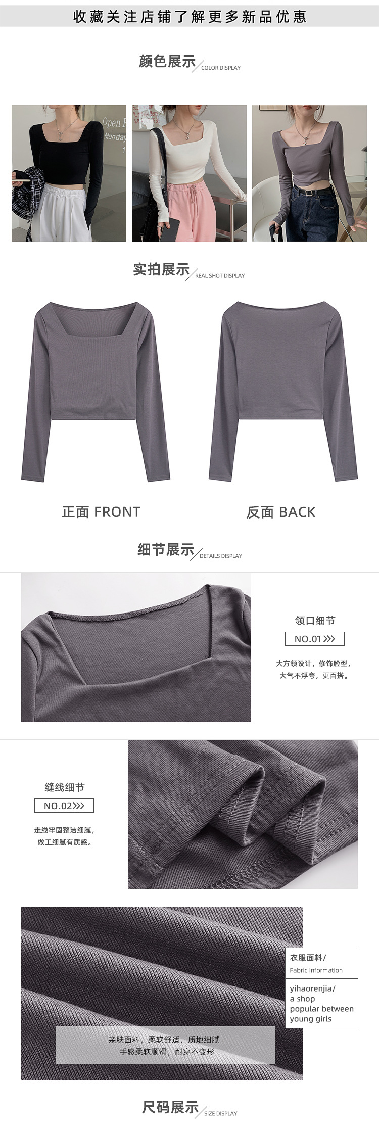 早秋辣妹方领短款上衣女秋装2025年新款修身内搭打底衫长袖T恤女