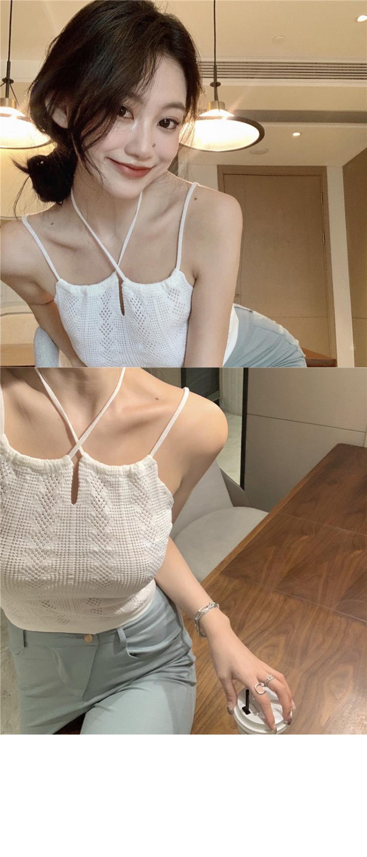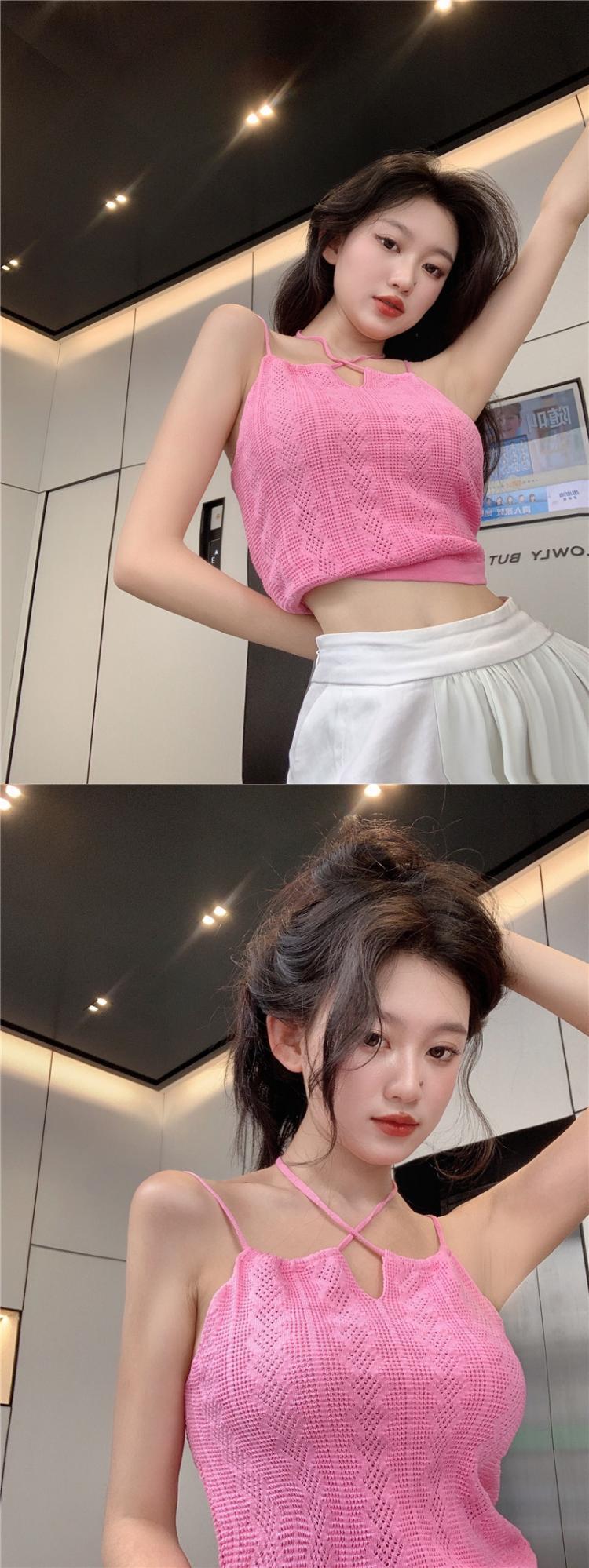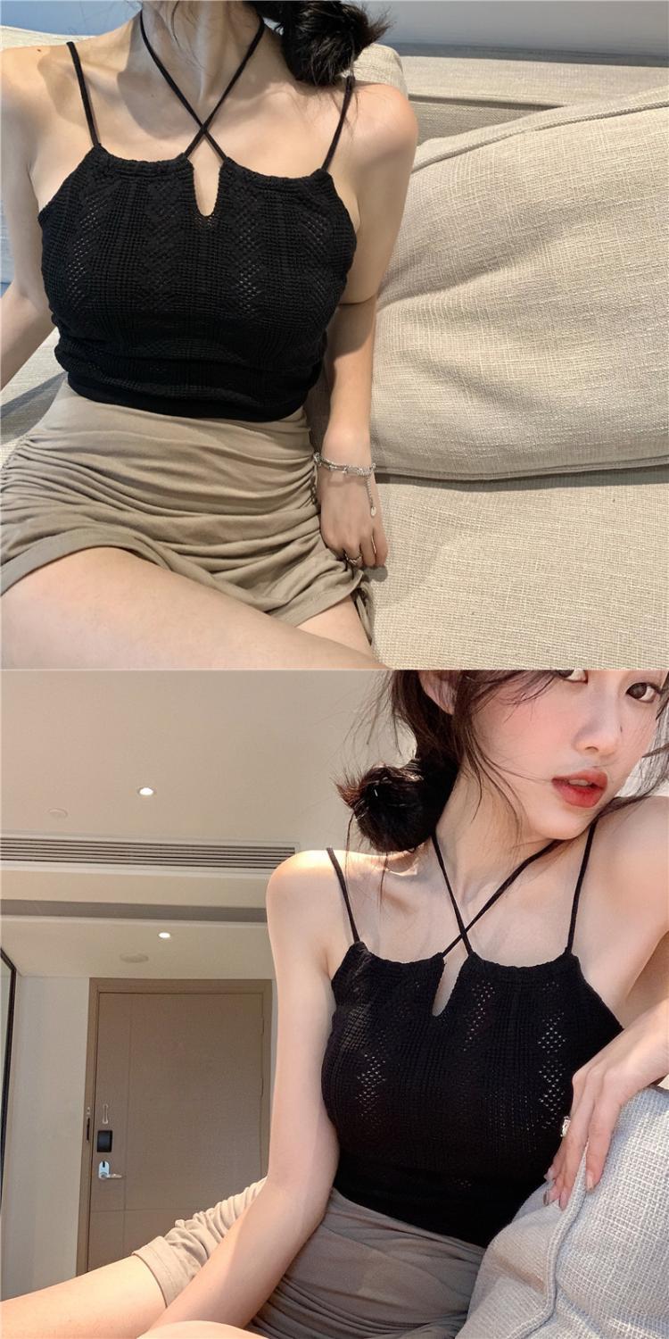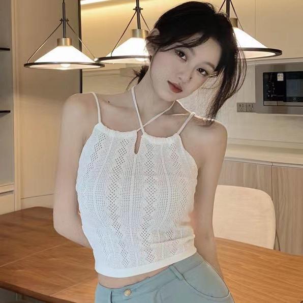 夏季新款针织吊带背心短款上衣镂空无袖设计感衫辣妹性感外穿内搭