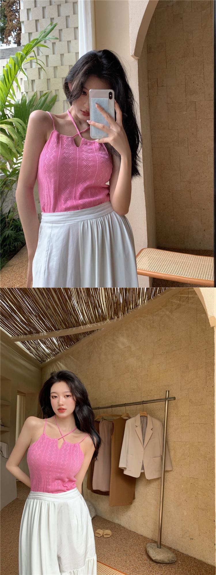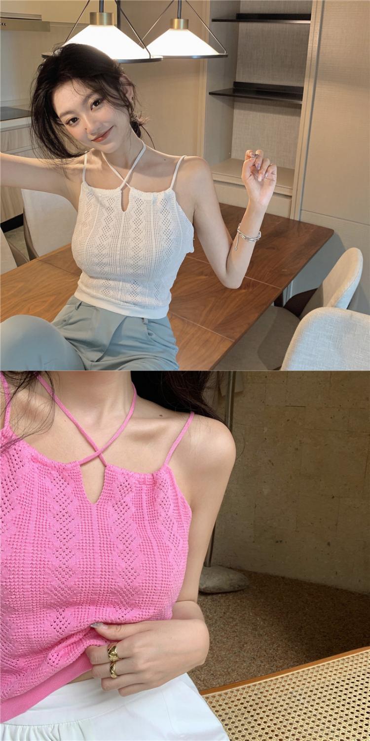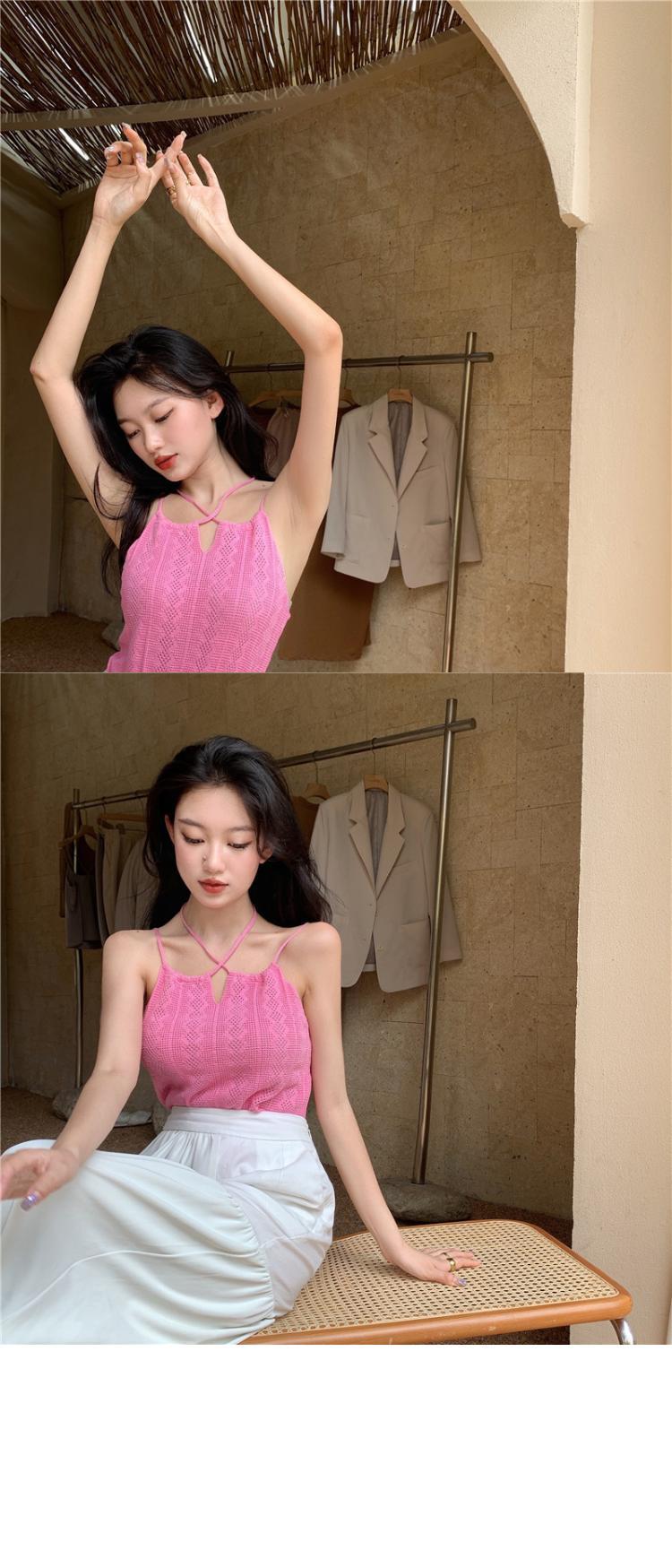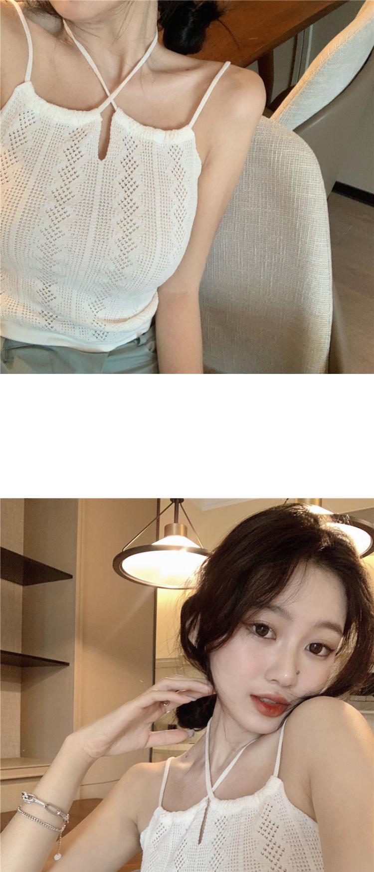 夏季新款针织吊带背心短款上衣镂空无袖设计感衫辣妹性感外穿内搭