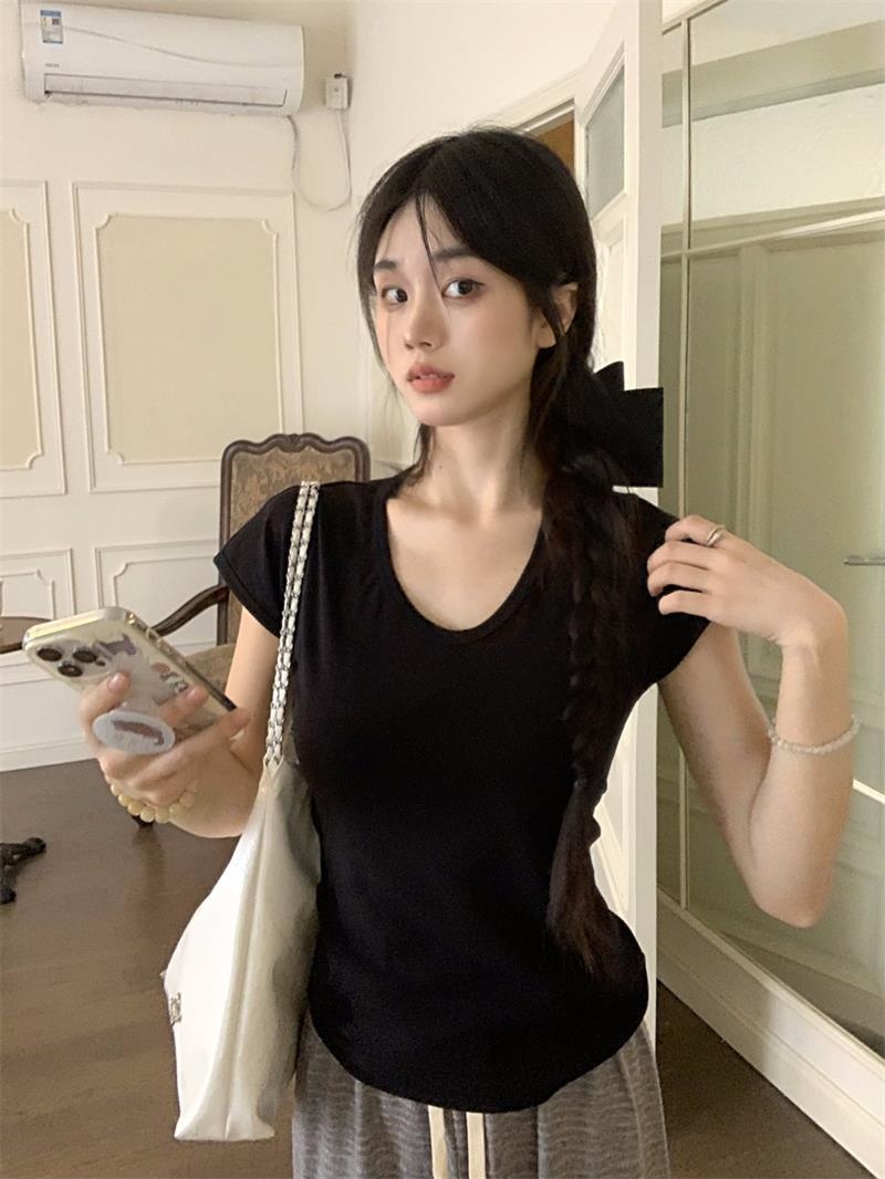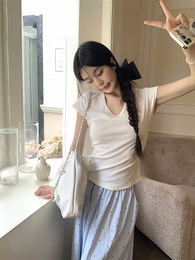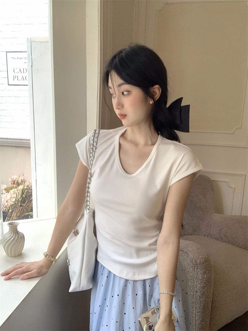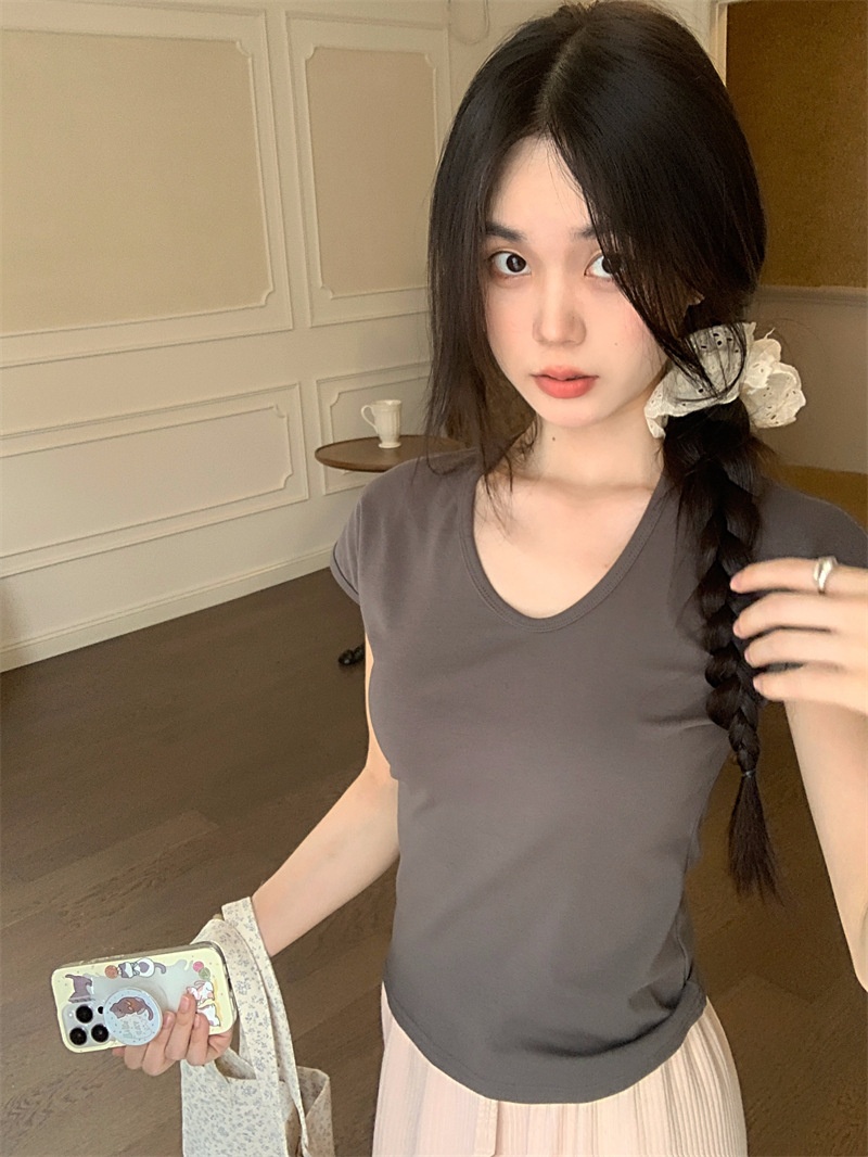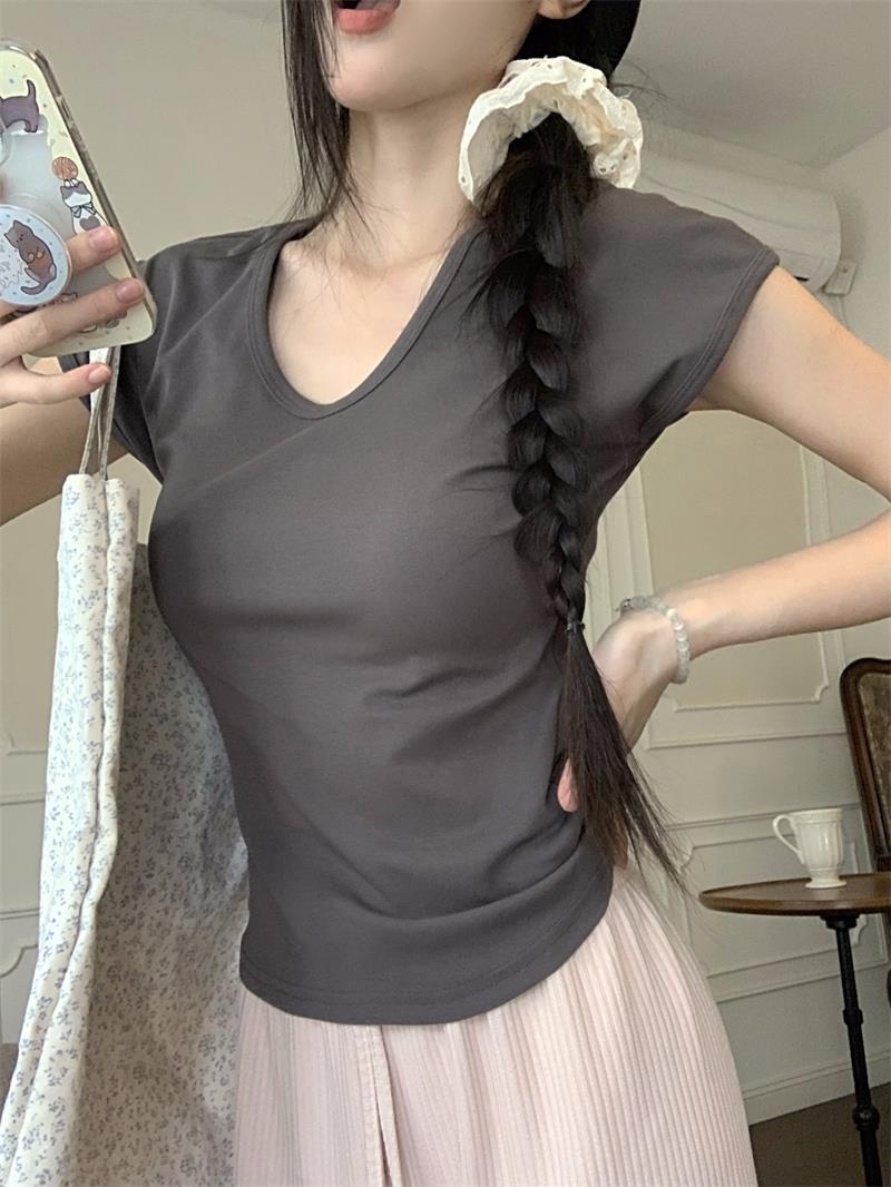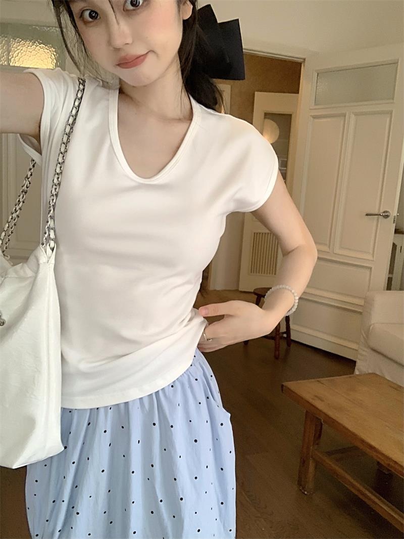 设计感V领短袖T恤女装2025夏季新款不规则短款学生修身上衣ins潮