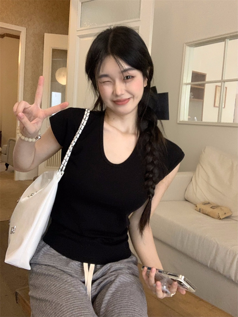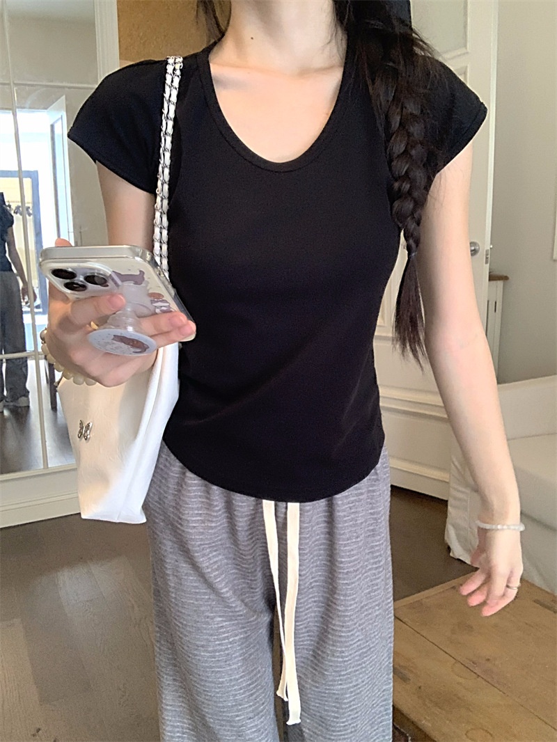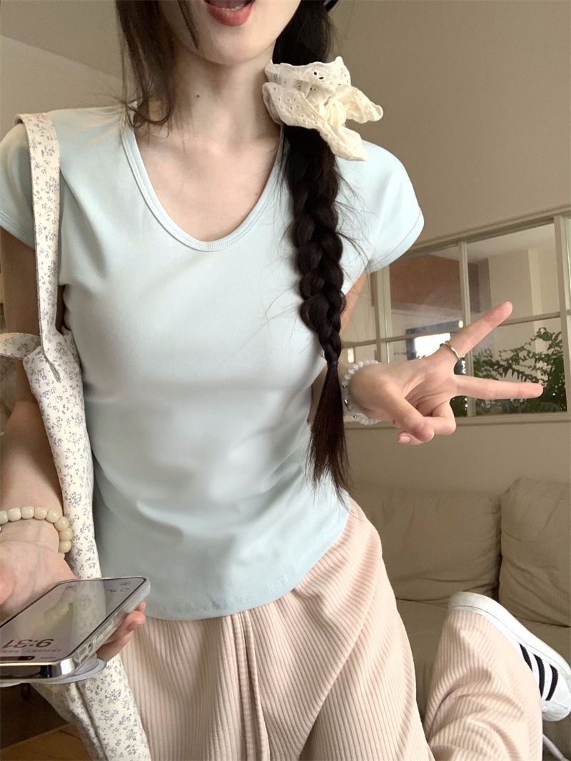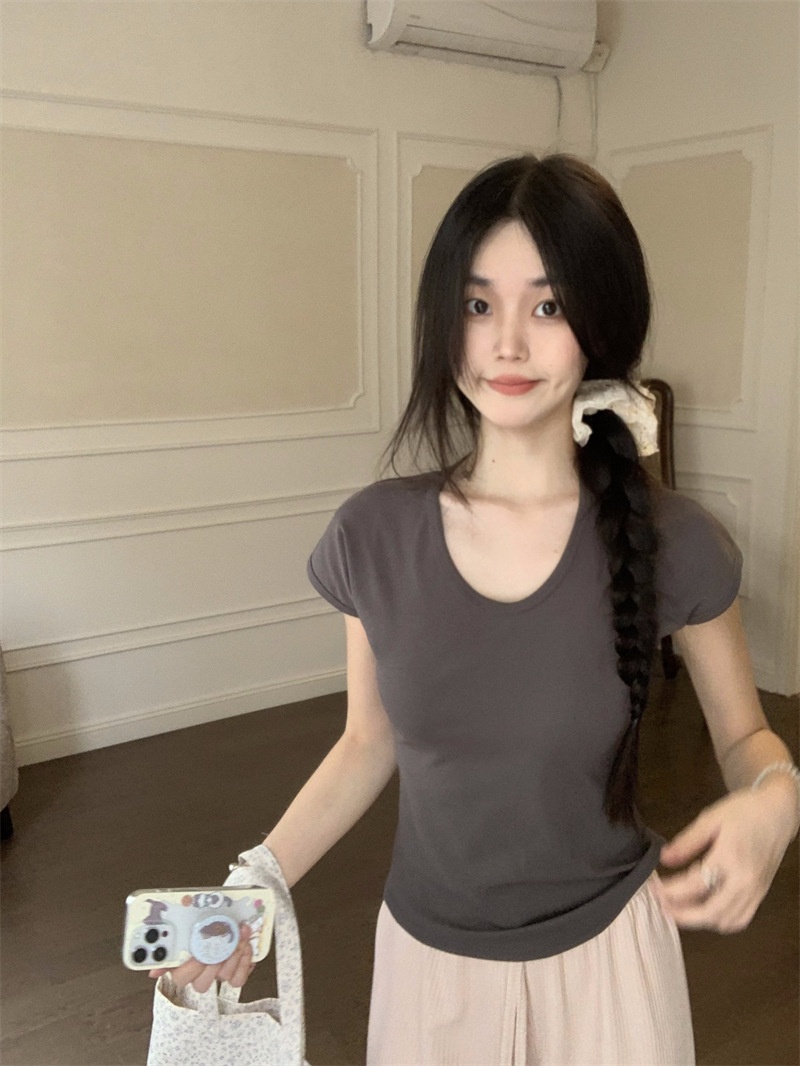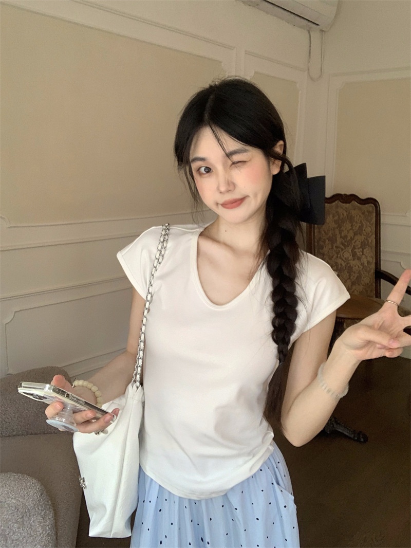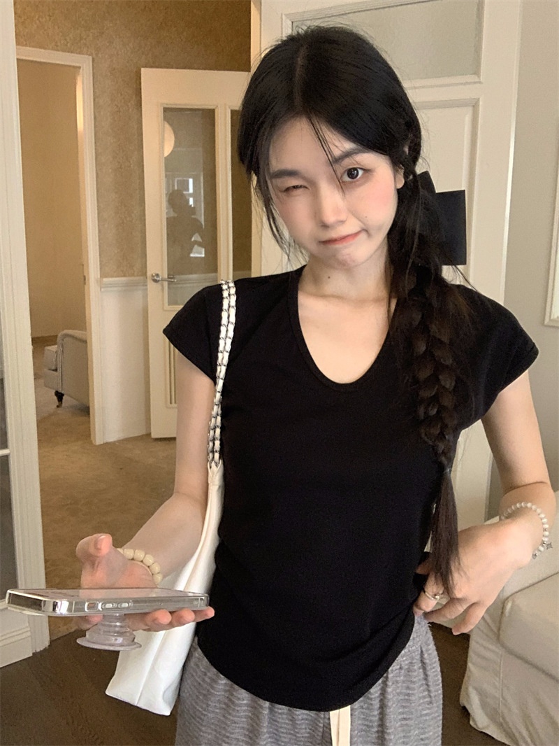 设计感V领短袖T恤女装2025夏季新款不规则短款学生修身上衣ins潮