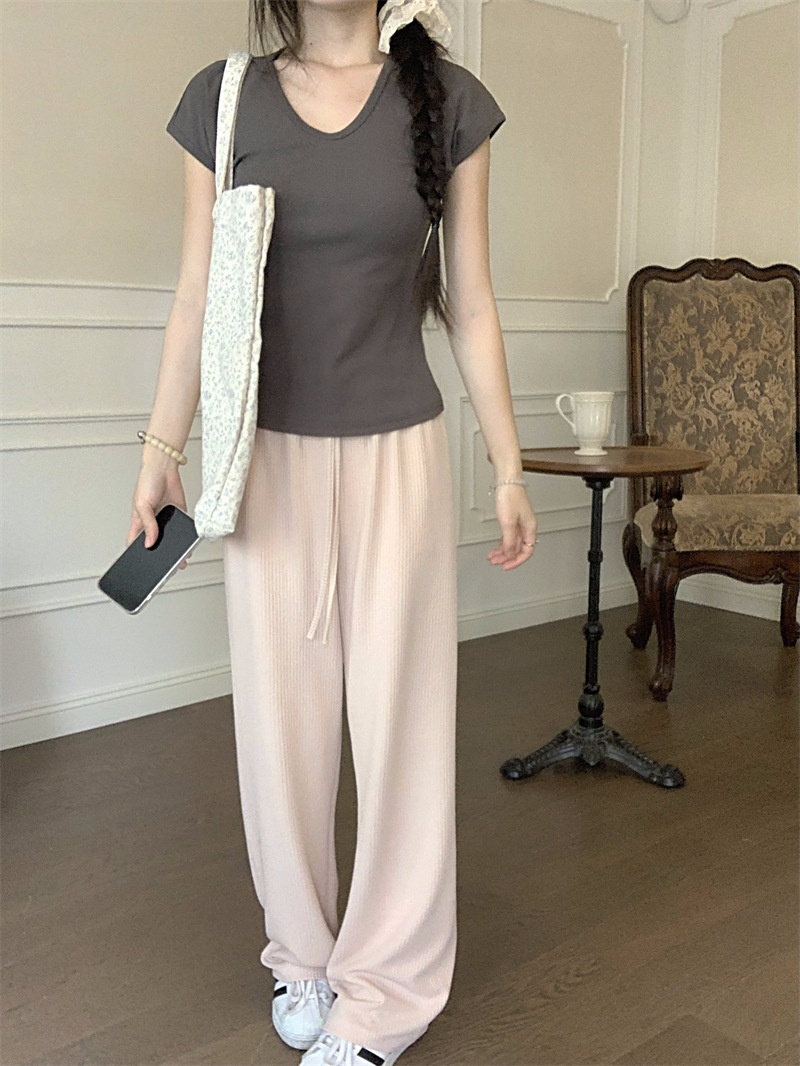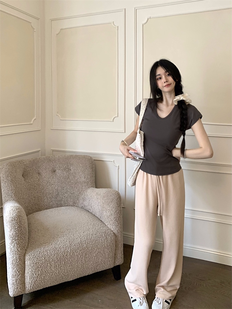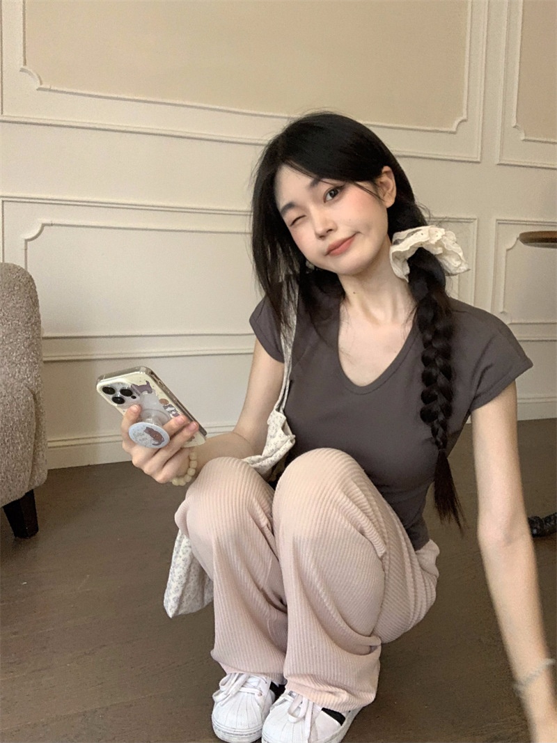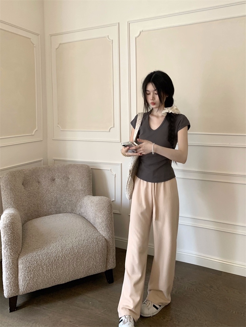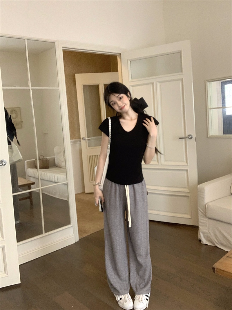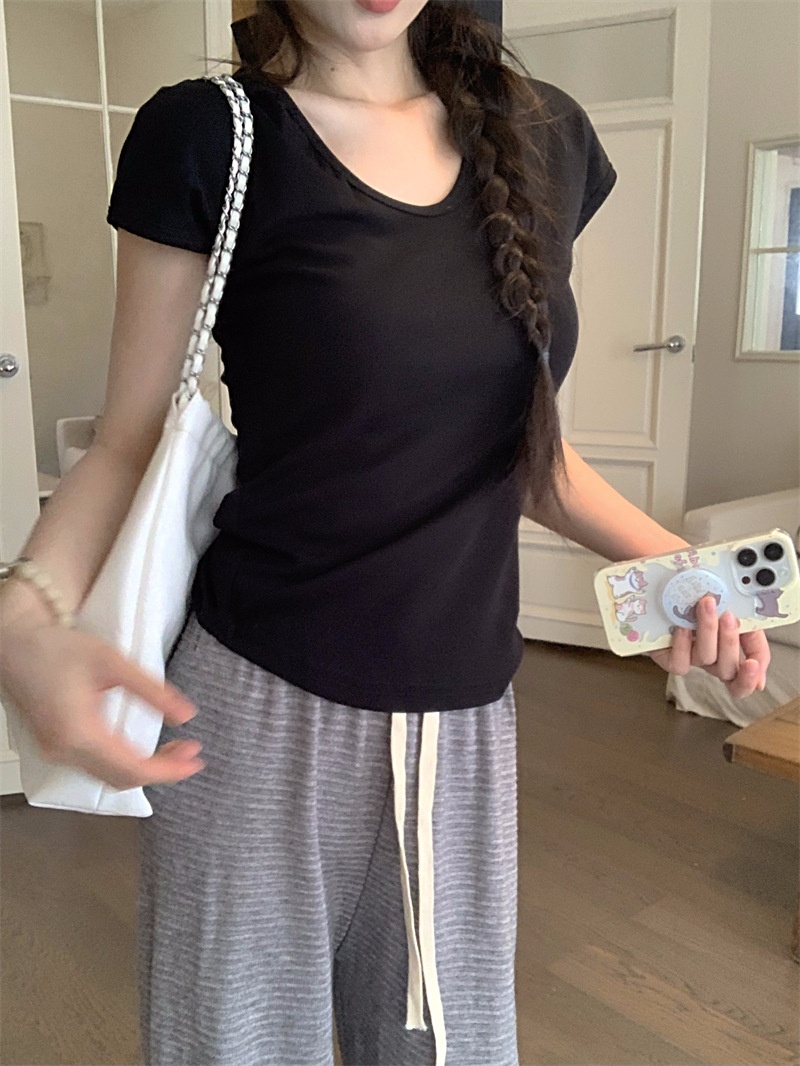 设计感V领短袖T恤女装2025夏季新款不规则短款学生修身上衣ins潮