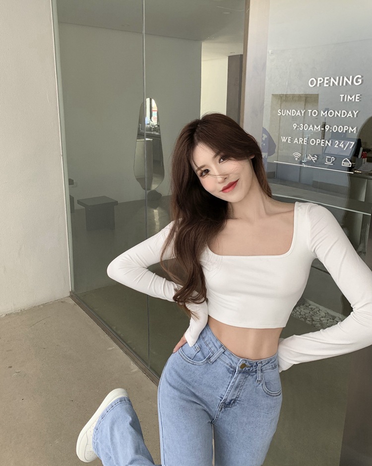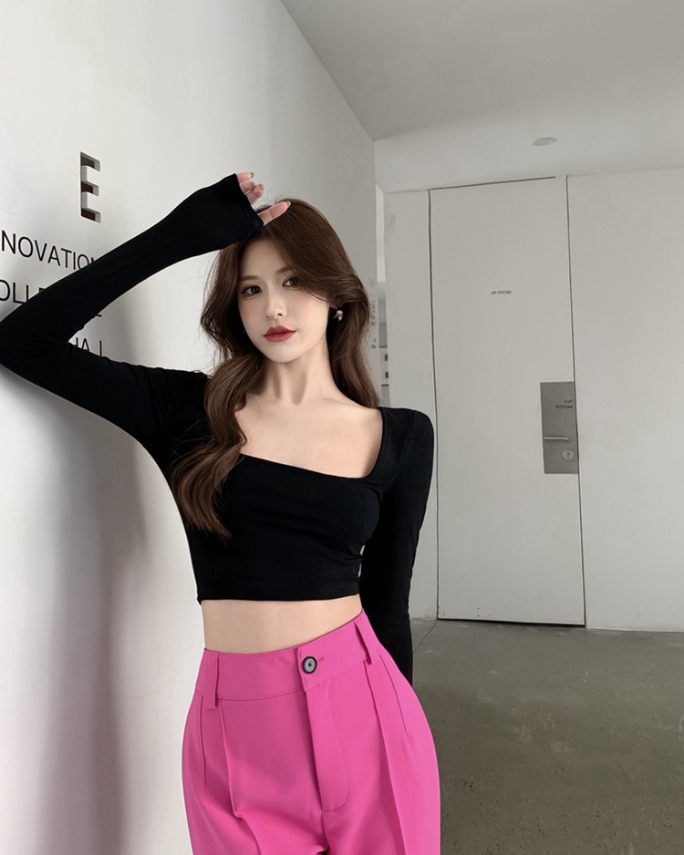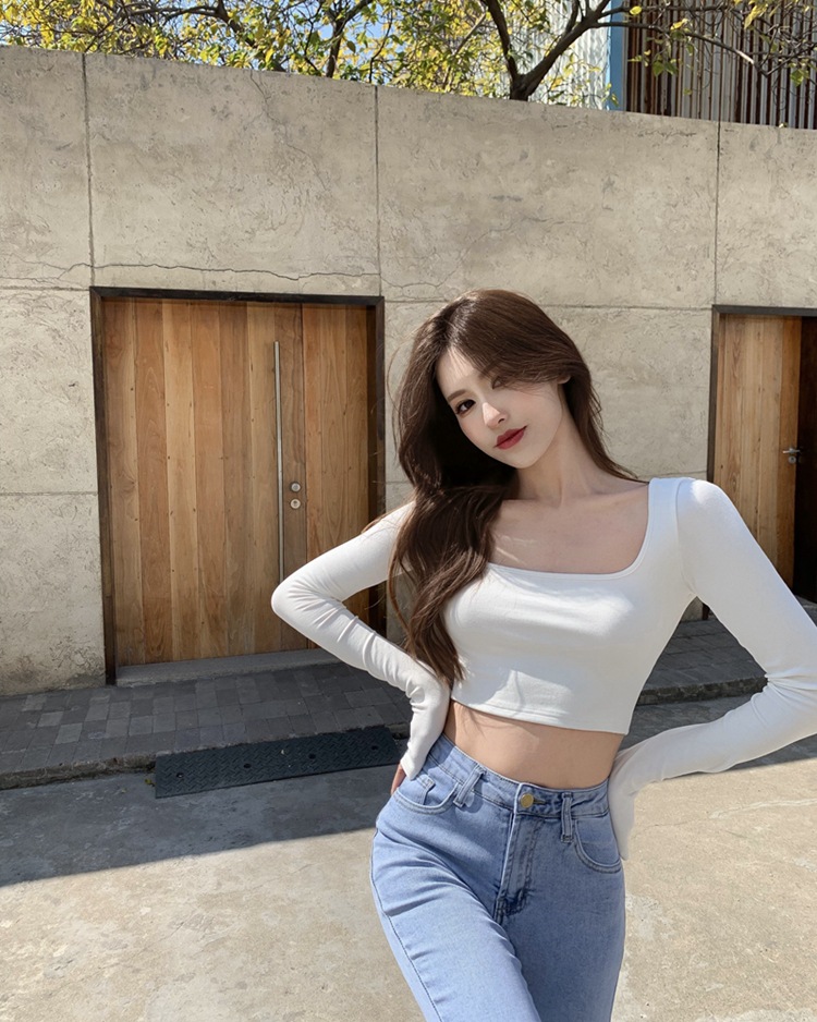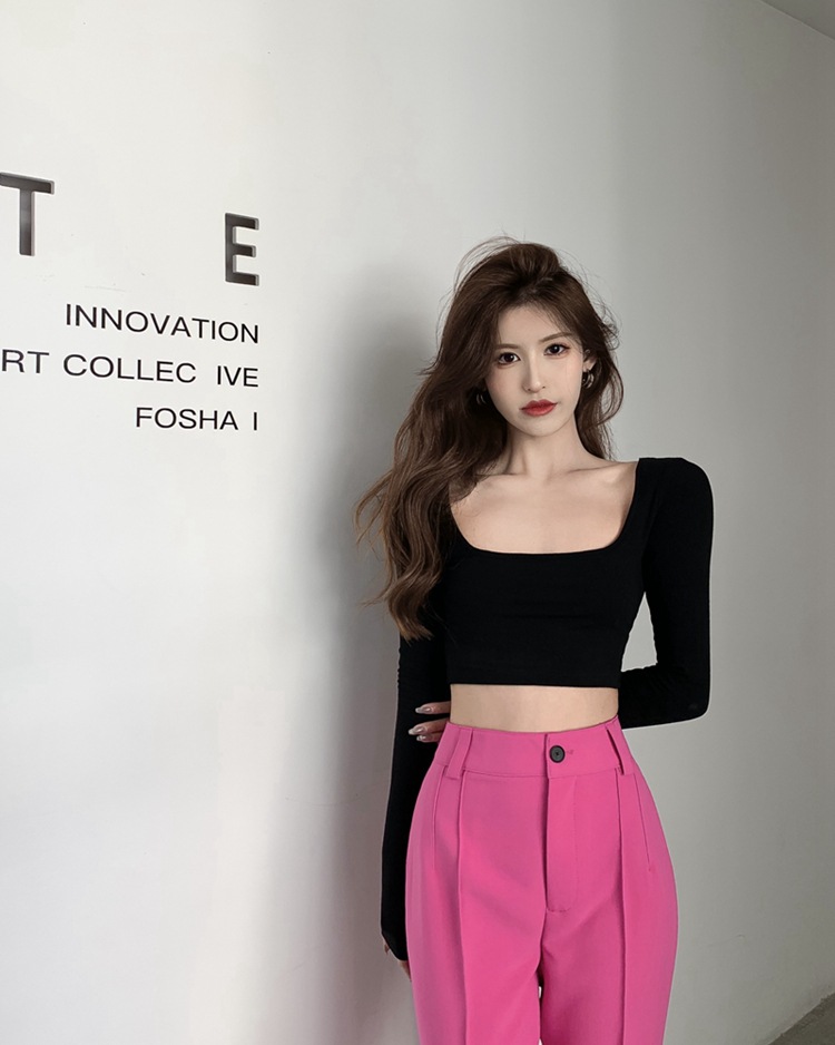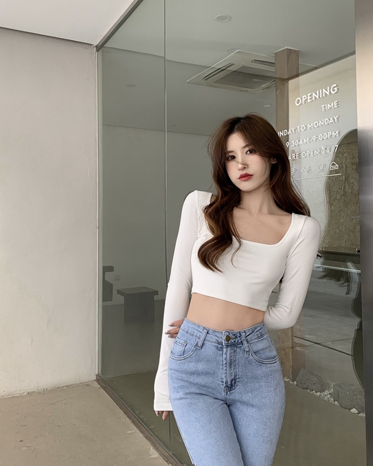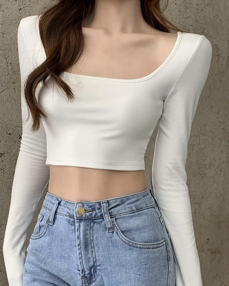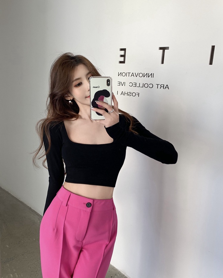 辣妹方领长袖T恤女2025秋季新款白色绑带短款露背修身打底衫上衣