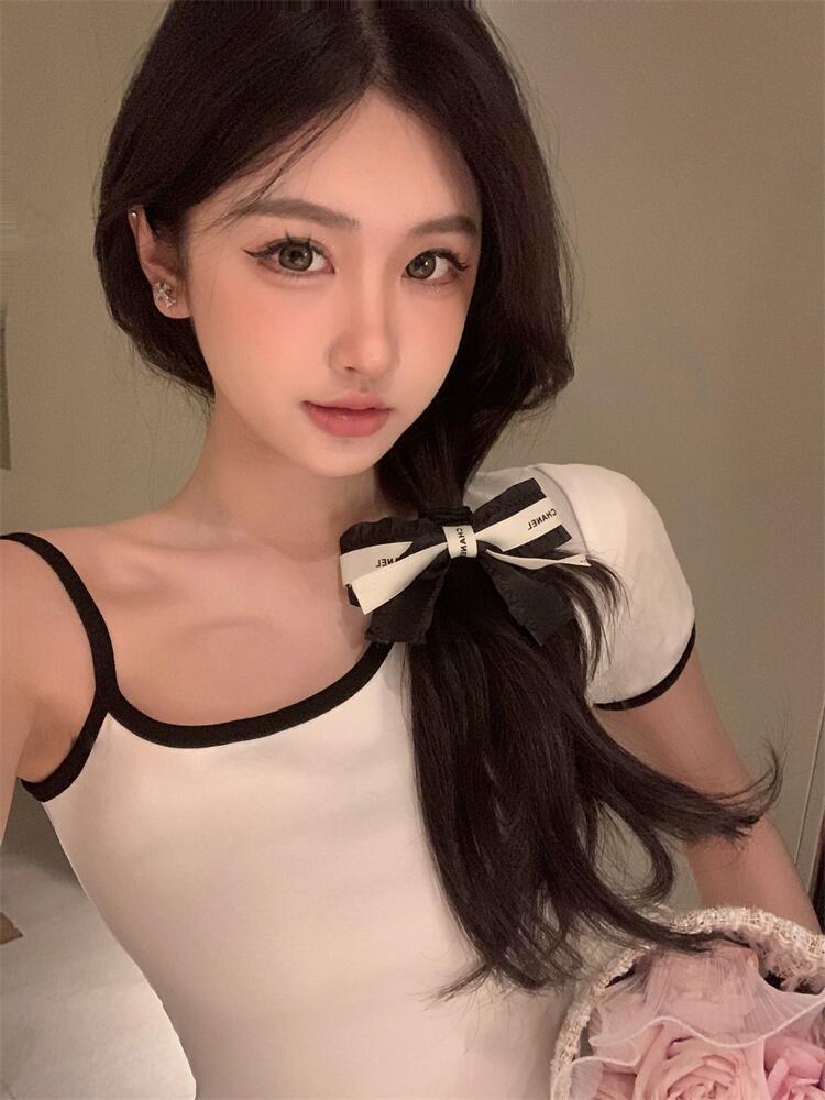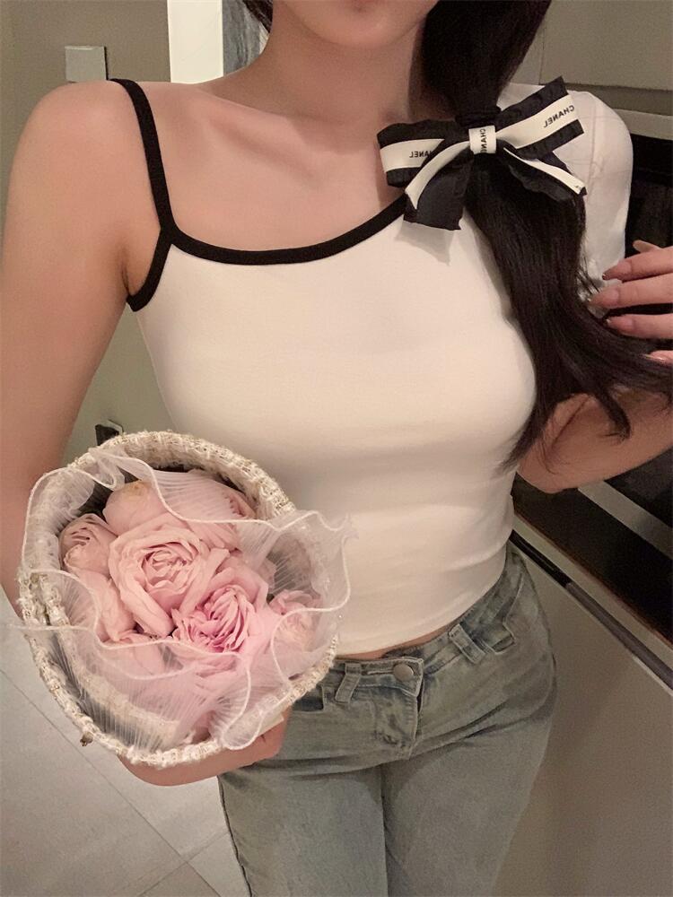 夏季新款设计感薄款蝴蝶结短款内搭外穿上衣辣妹针织bm吊带背心女