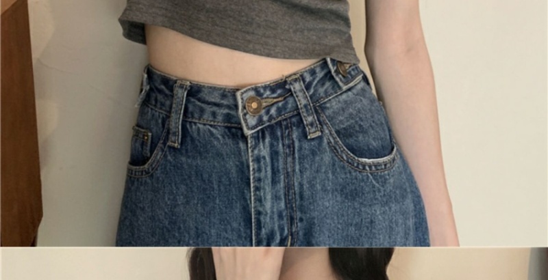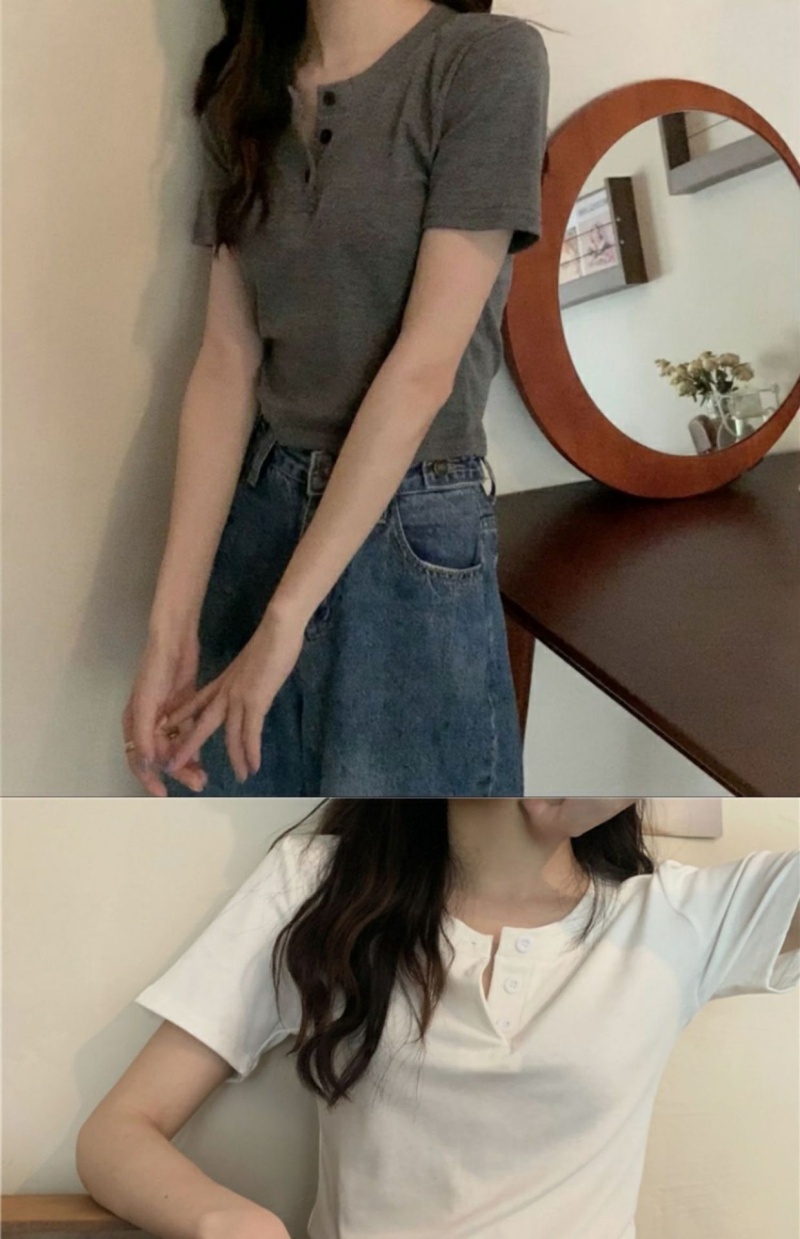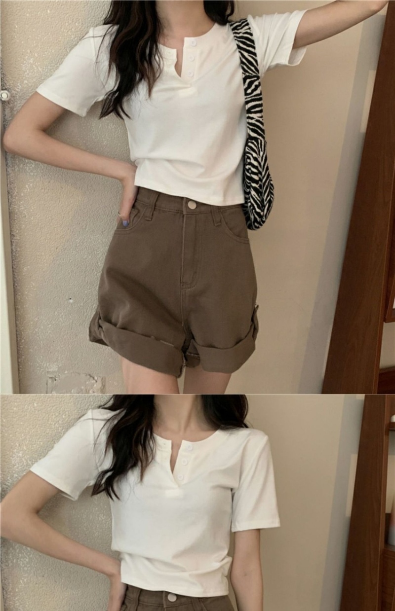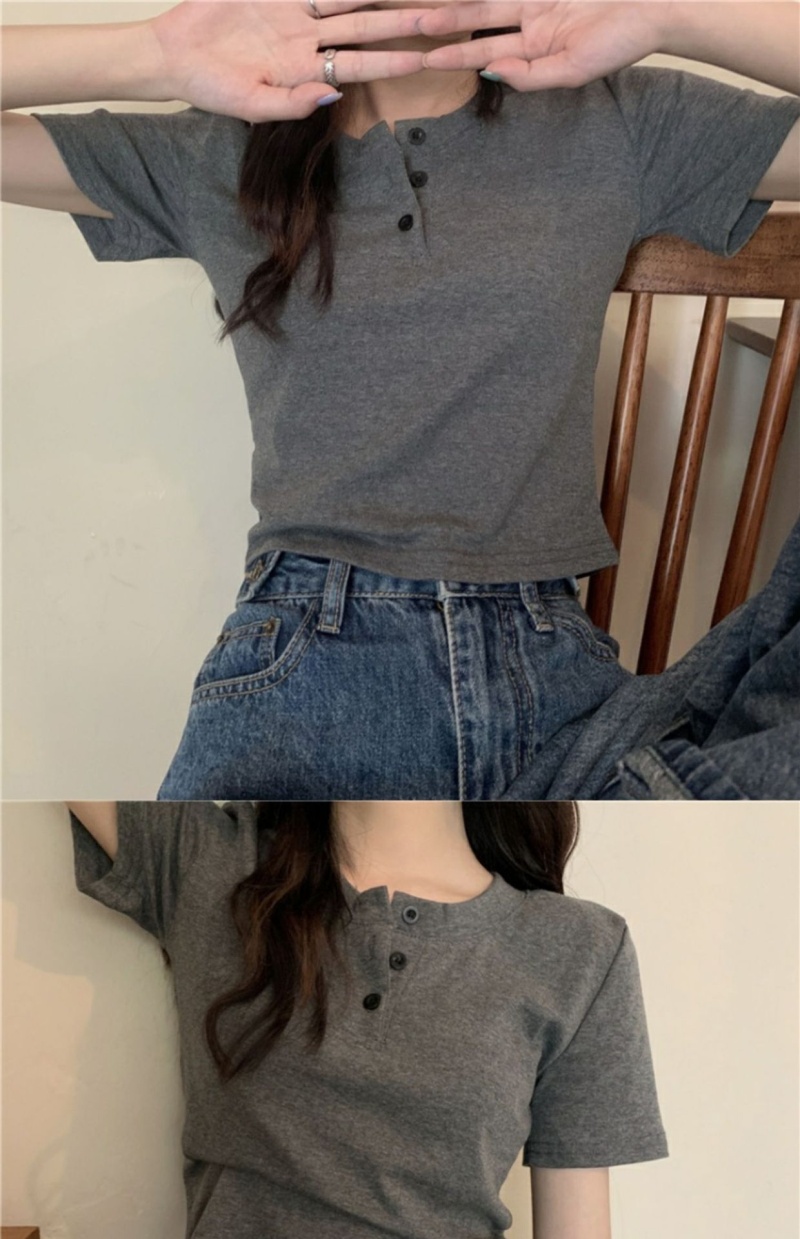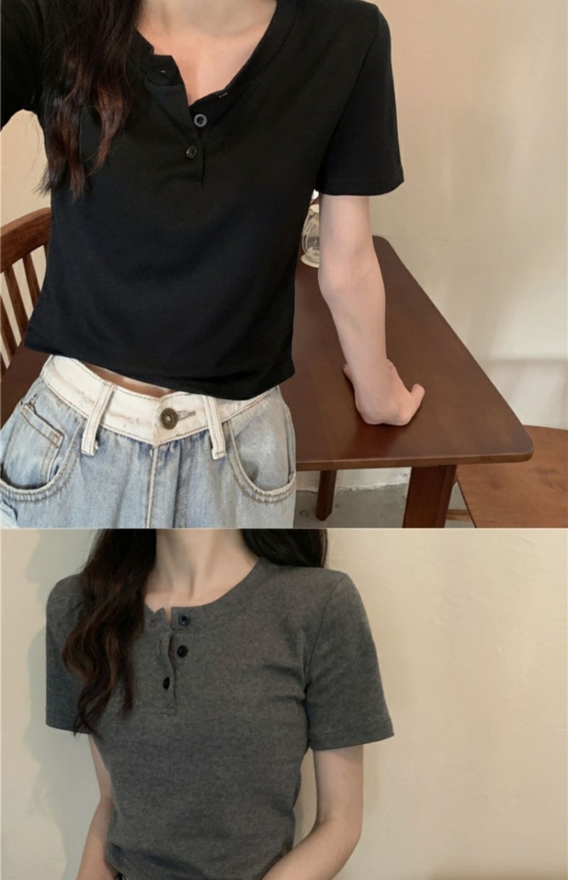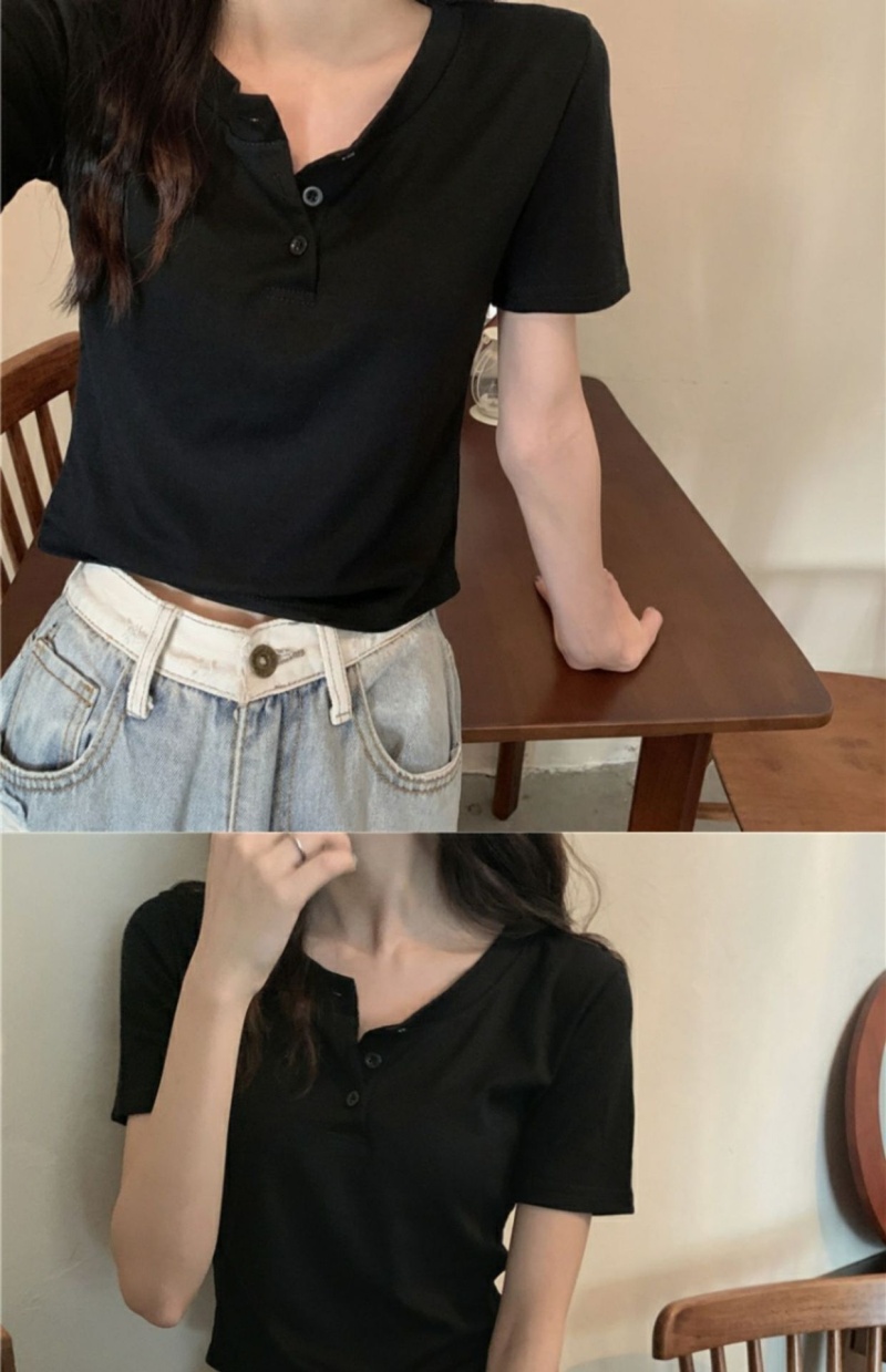 409#6535 超火设计感小众纽扣短袖T恤短款高腰修身甜酷上衣服