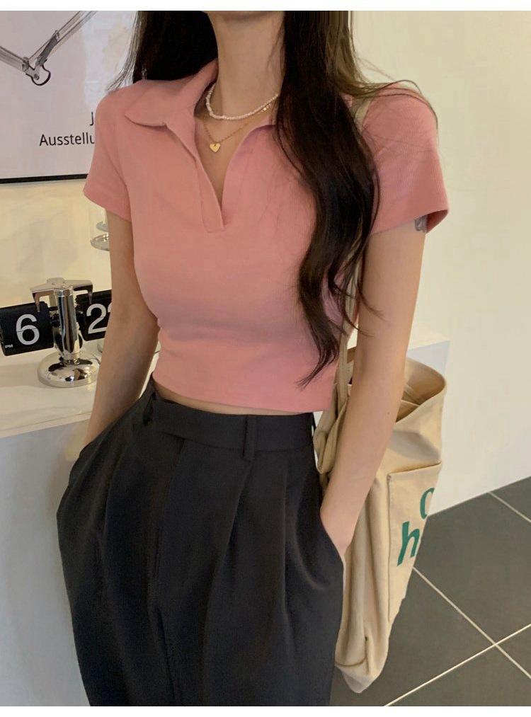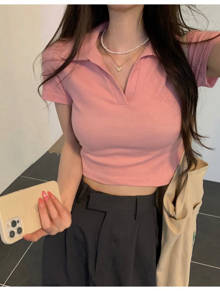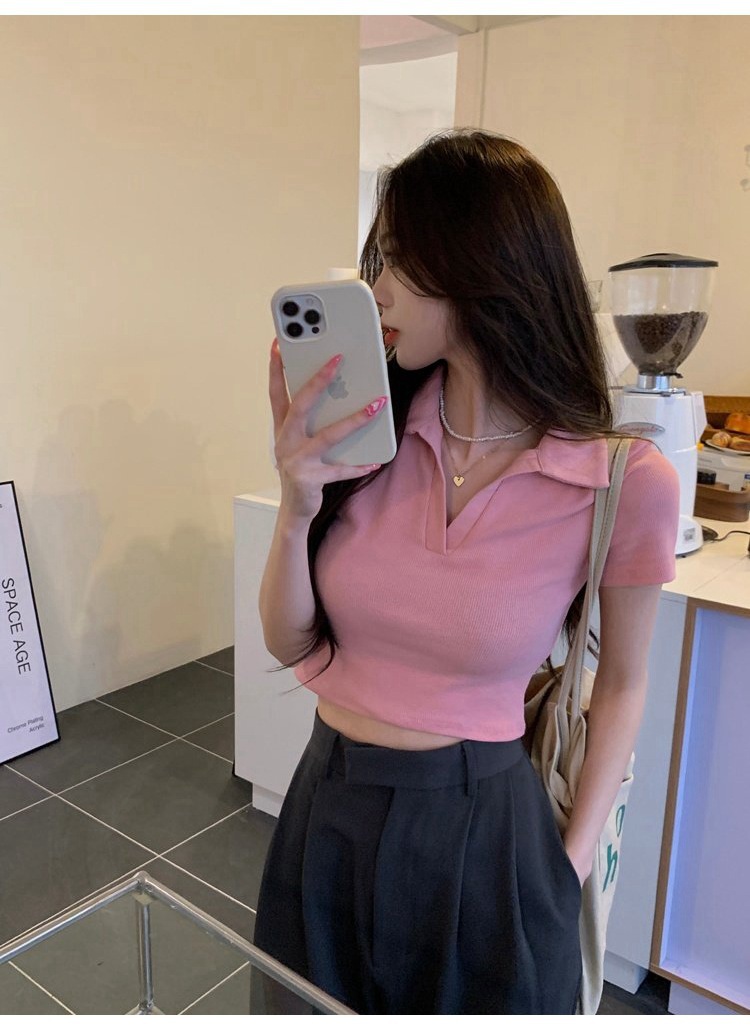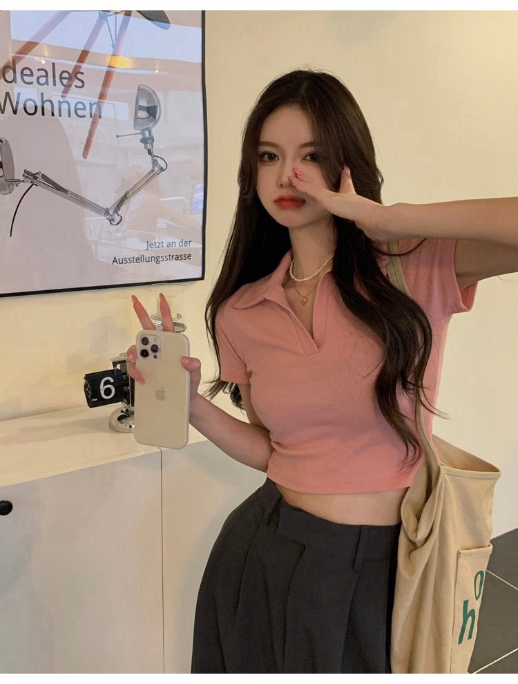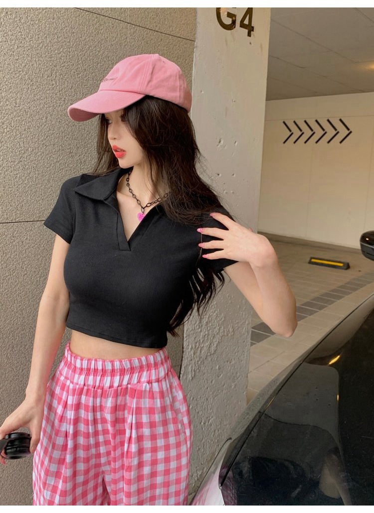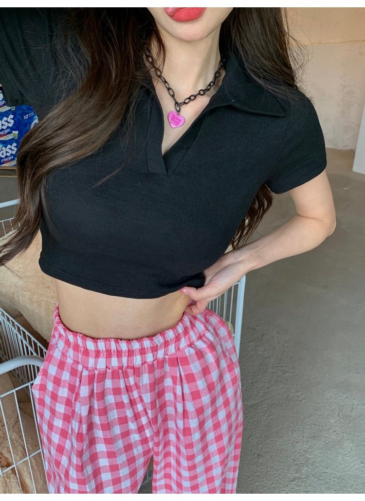 纯欲甜辣妹短款设计感学生罗纹上衣2022夏季修身Polo短袖T恤女潮